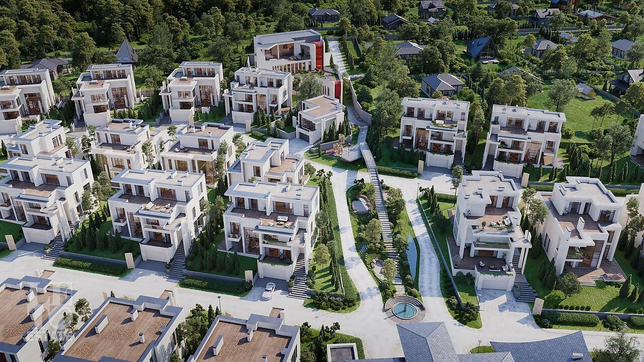 На территории расположены 48 резиденций площадью от 450 до 790 кв. м на участках от 6,5 до 14 соток. Все дома построены и готовы к заселению — будущие владельцы избавлены от шума и неудобств, связанных со строительными работами. Резиденции выполнены в минималистичном стиле с панорамным остеклением и эксплуатируемыми кровлями, которые гармонично вписаны в ландшафт. Дома продаются без внутренней отделки, что позволяет реализовать индивидуальные дизайнерские решения.