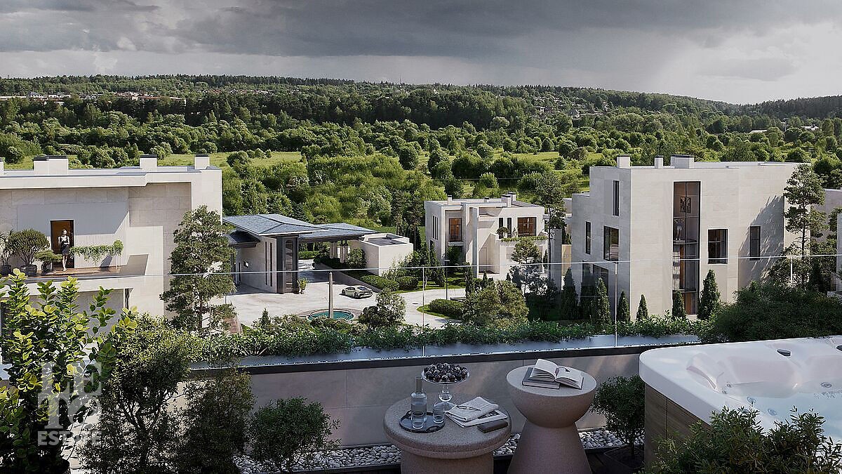 На территории расположены 48 резиденций площадью от 450 до 790 кв. м на участках от 6,5 до 14 соток. Все дома построены и готовы к заселению — будущие владельцы избавлены от шума и неудобств, связанных со строительными работами. Резиденции выполнены в минималистичном стиле с панорамным остеклением и эксплуатируемыми кровлями, которые гармонично вписаны в ландшафт. Дома продаются без внутренней отделки, что позволяет реализовать индивидуальные дизайнерские решения.
