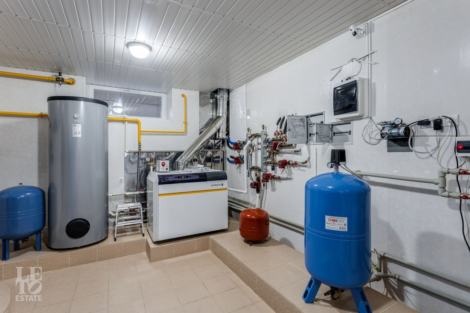 Инженерия премиальных брендов: (газовый котел 84 кВт (De Dietrich), насос (Grundfos), трубы (REHAU металлопластик), система от протечек «Нептун» и др.).