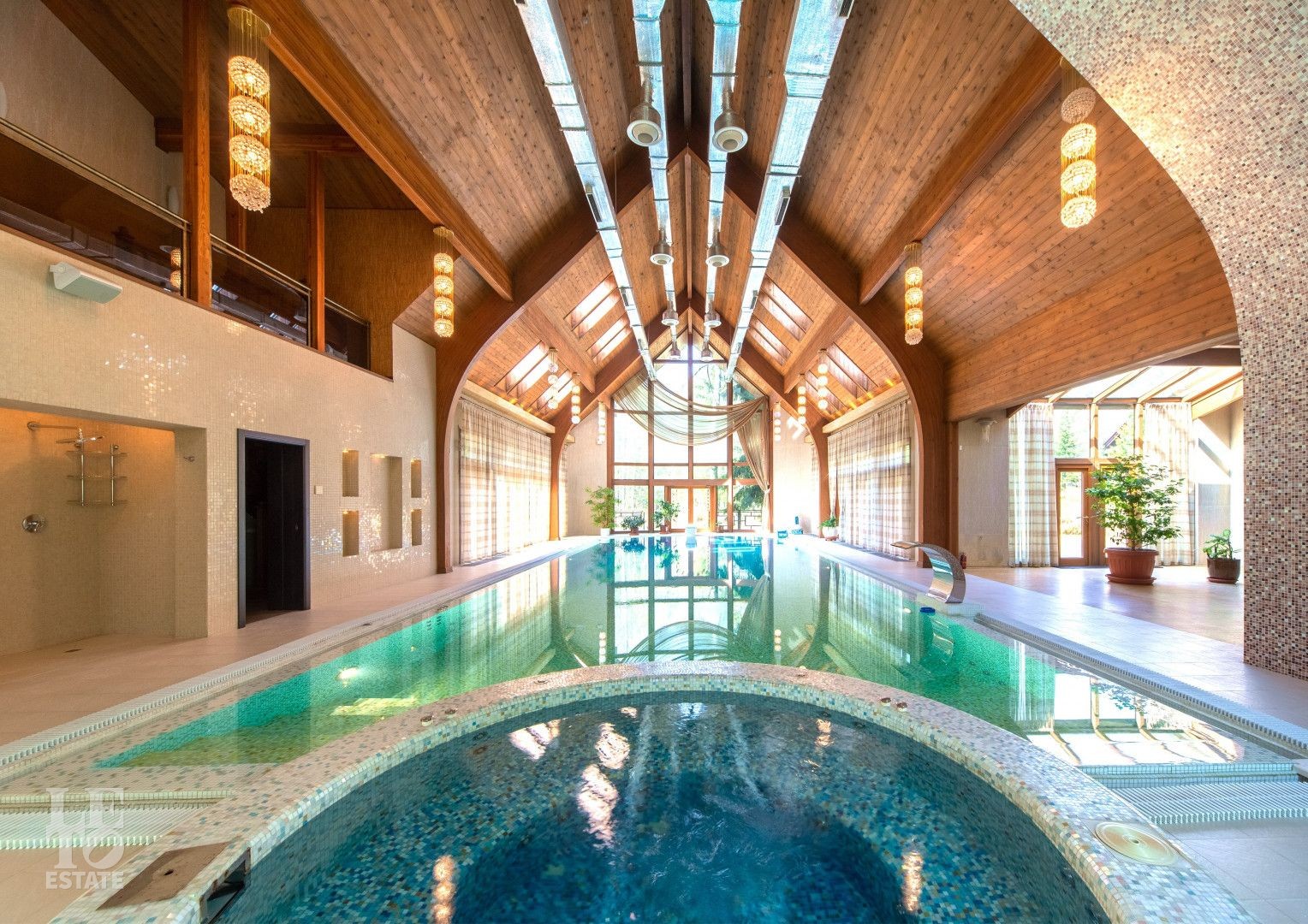 СПА расположен в отдельном крыле, соединяясь с жилой частью красочной галереей с панорамными окнами и зимним садом. Спа-зона включает в себя: бассейн, джакузи, хамам, сауну, баню, купель. Есть зона отдыха и спортивный зал.