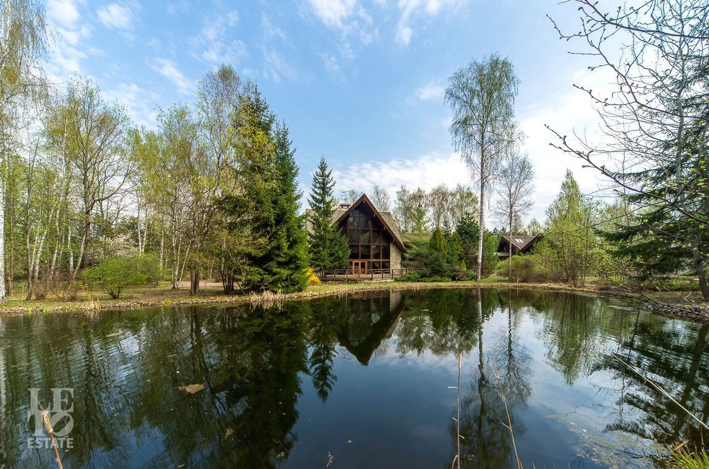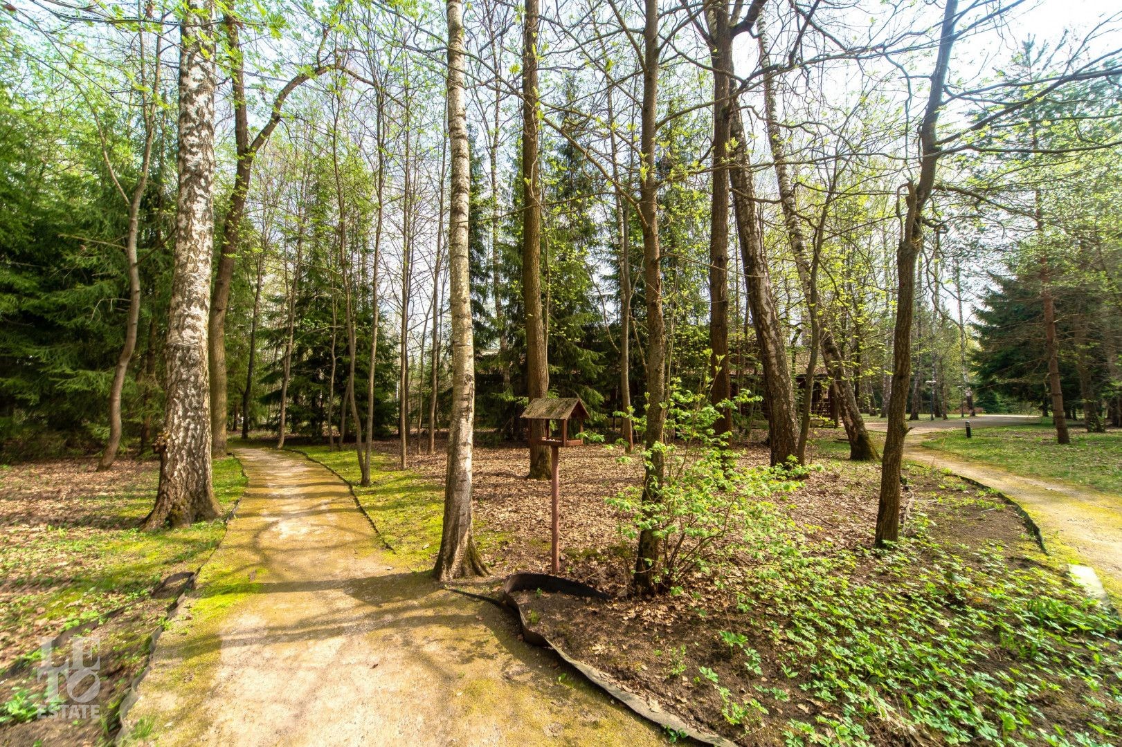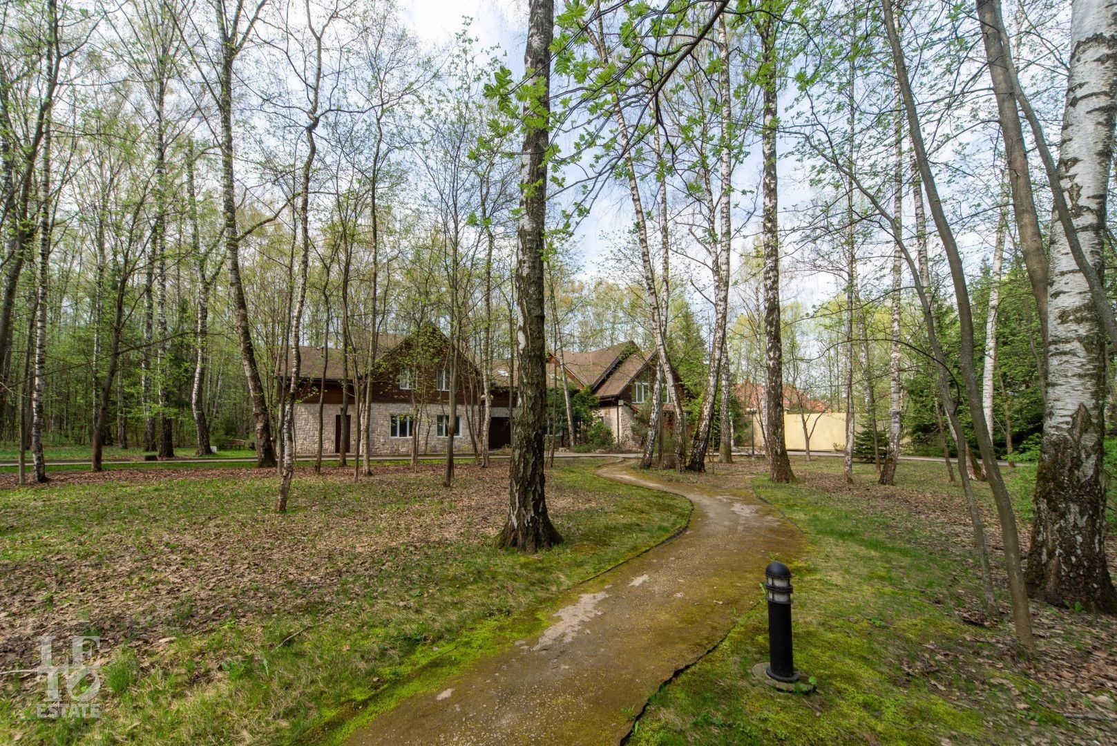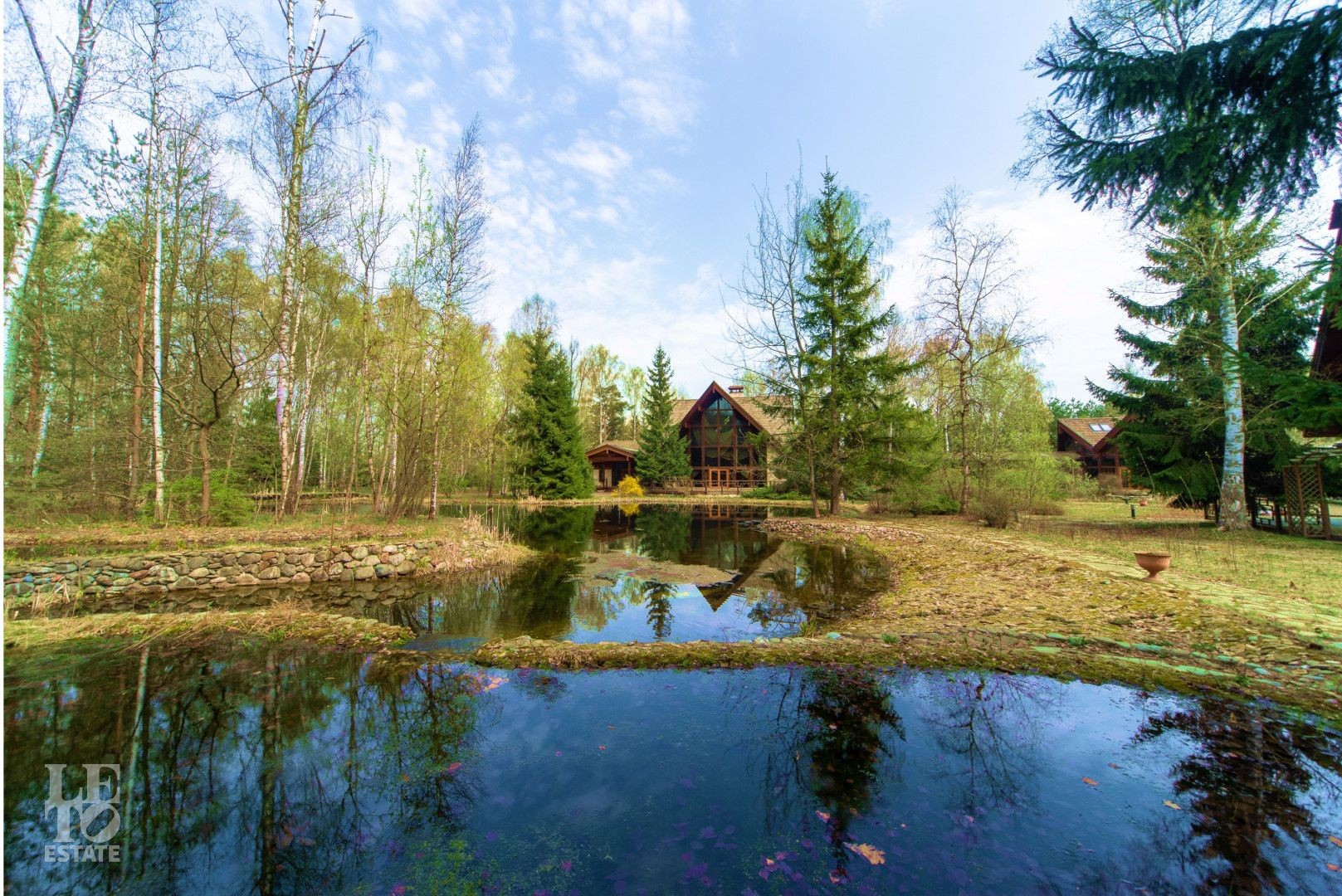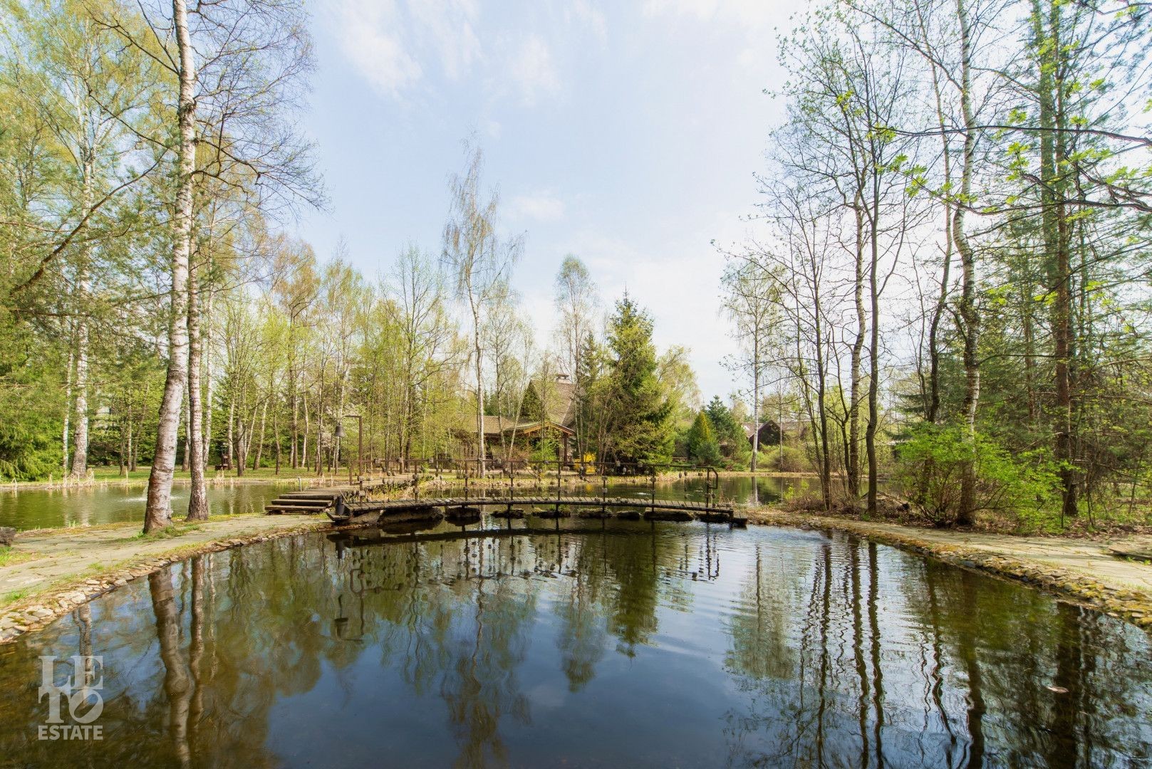 Территория участка разбита на парковые зоны. Есть живописный пруд, лесной массив, много прогулочных дорожек. Эти зоны отлично подойдут для отдыха и активных занятий на свежем воздухе.