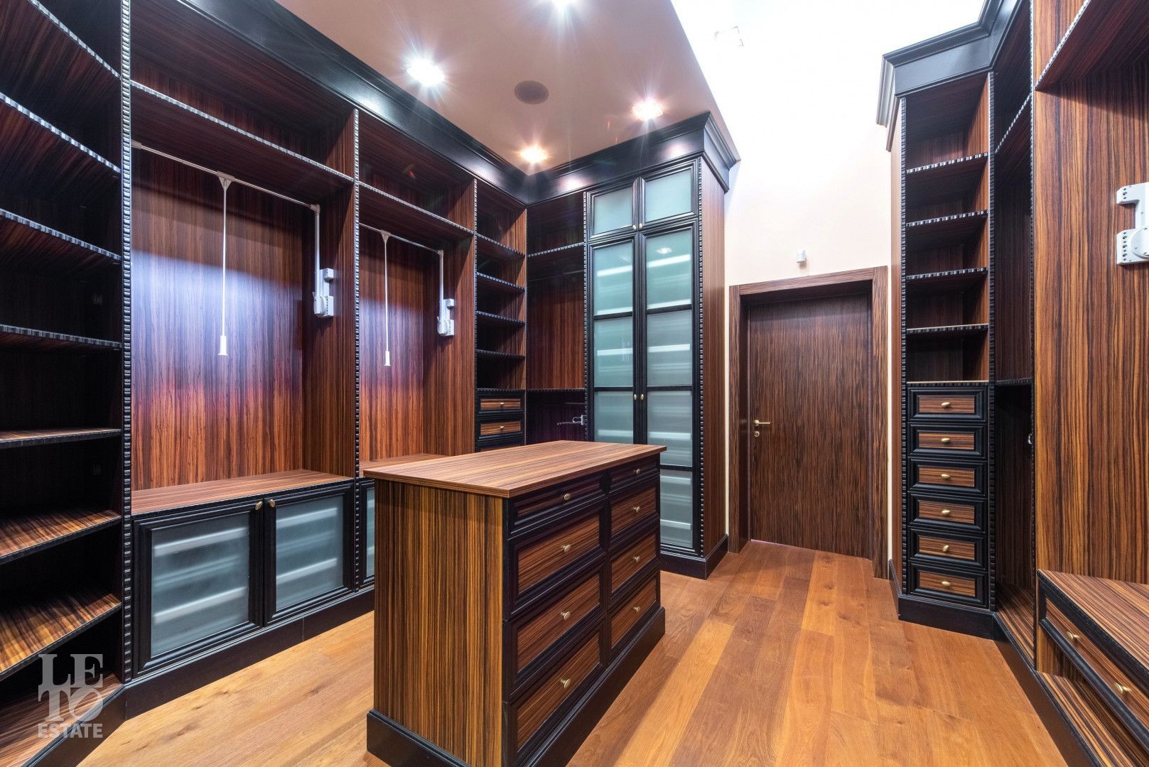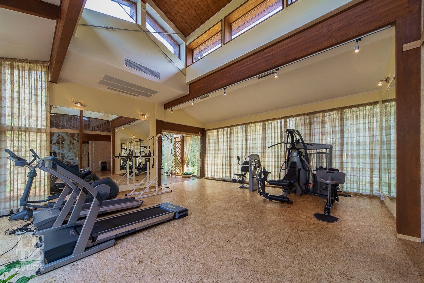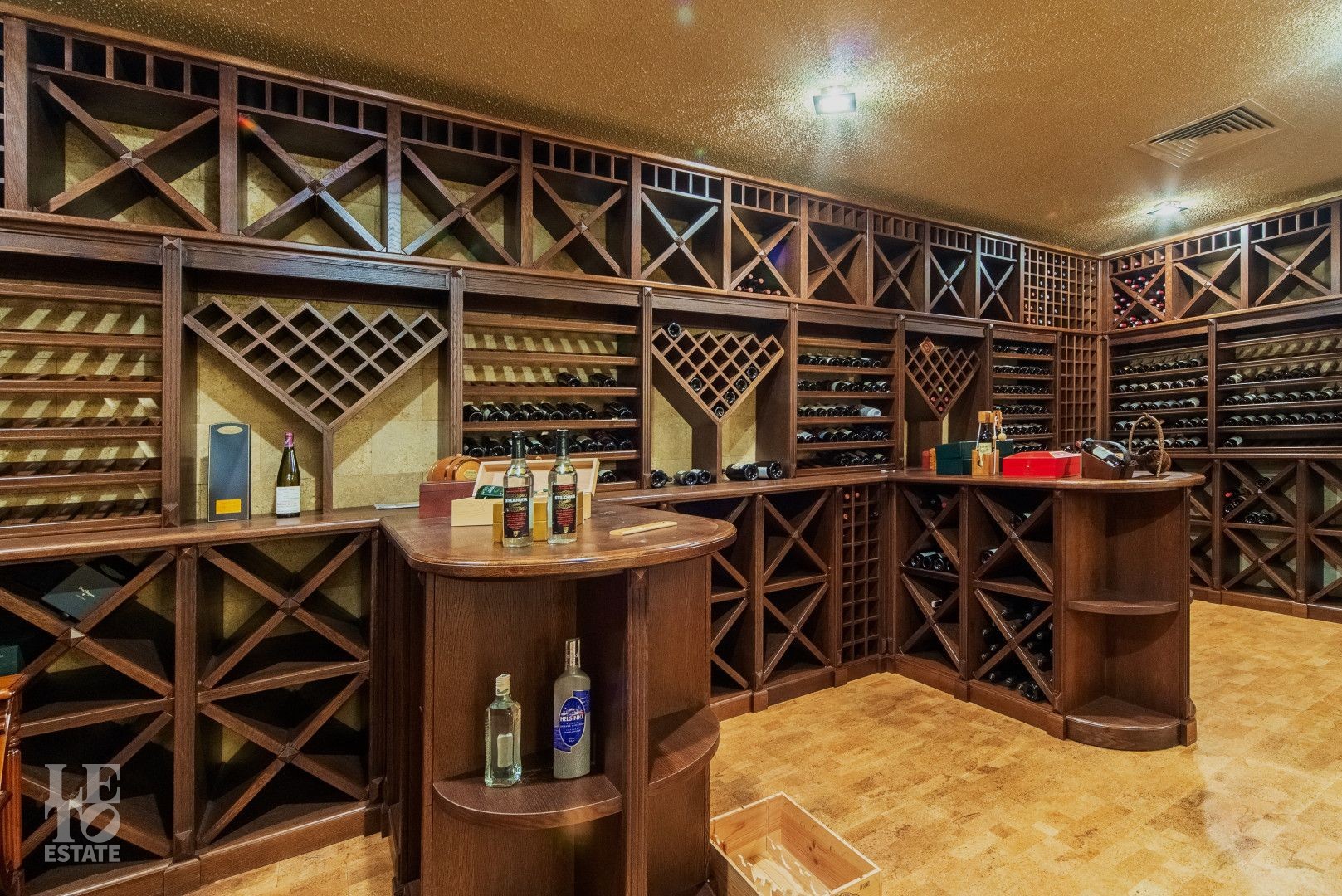 На цокольном этаже расположены кинотеатр, комнаты отдыха, винный погреб. Большая гардеробная и комната для хранения меховых изделий удовлетворит самый изысканный вкус.