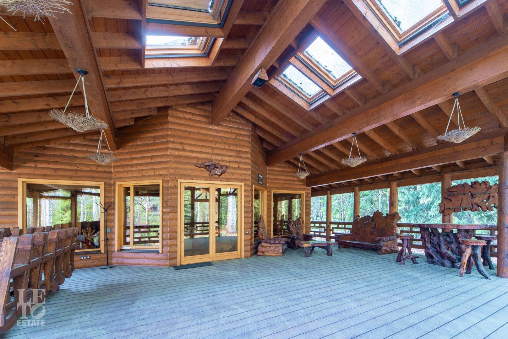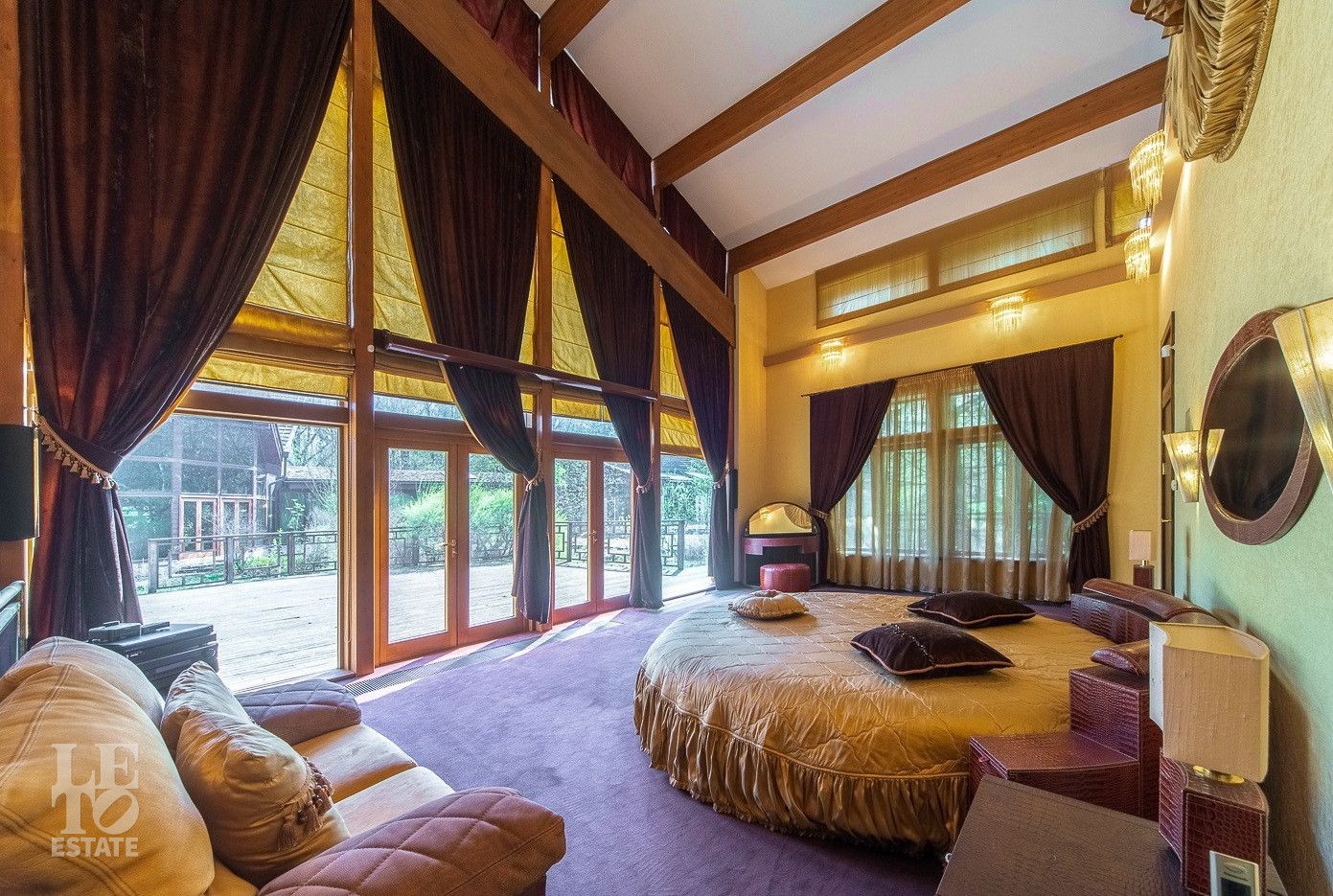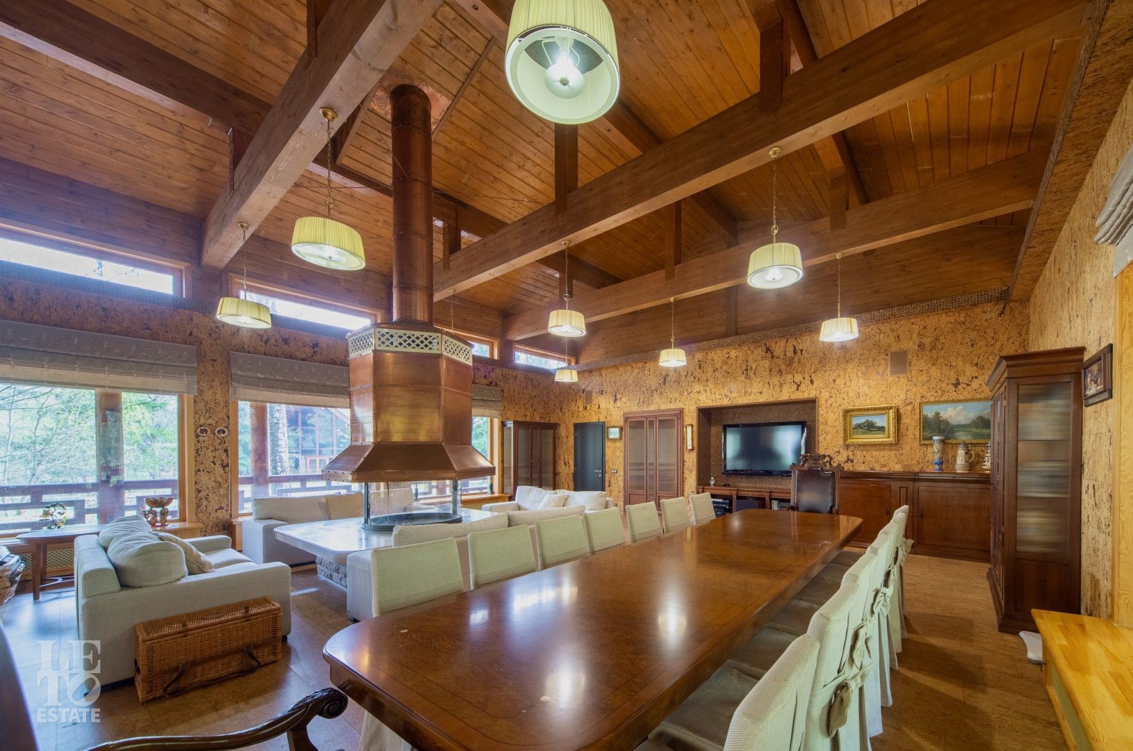 Четыре отдельных жилых пространства (110+60+50+50 м²), в каждом из которых есть мастер спальня с гардеробными, санузлы и собственные выходы на веранду. Просторная гостиная с камином, общей площадью 120 м², соединяет эти пространства.