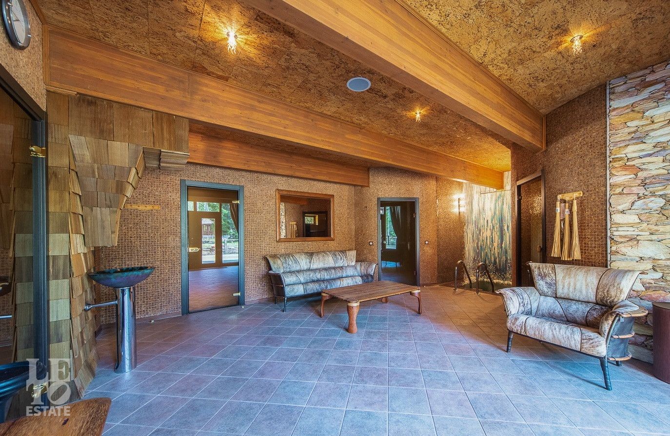 Первый этаж - 4 мастер-спальни с с/у и гардеробными, мастер-спальня с 2 с/у и 2 гардеробными, гостиная, зимний сад, комната отдыха. СПА зона: бассейн, джакузи, хамам, сауна, баня, купель, зона отдыха, спортивный зал.