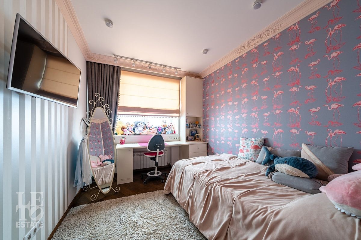 Удачная эргономика на нескольких уровнях создает комфортное пространство для всей семьи. На цокольном уровне расположена стильная лаунж-зона с мягкой мебелью и вместительными системами хранения. Первый уровень представлен кухней-столовой в теплой и спокойной палитре, где так приятно собираться с близкими. Верхние уровни отведены для отдыха и релаксации. Здесь вас встретит светлая и просторная гостиная, две детские спальни с грамотным зонированием для учебы и игр, а также главная спальня, наполненная особым шармом и лёгкостью. Особое внимание в доме, уделено системе хранения — скрытые ниши, вместительные шкафы и отдельные гардеробные поддерживают элегантный минимализм пространства, даря ощущение порядка и свободы.