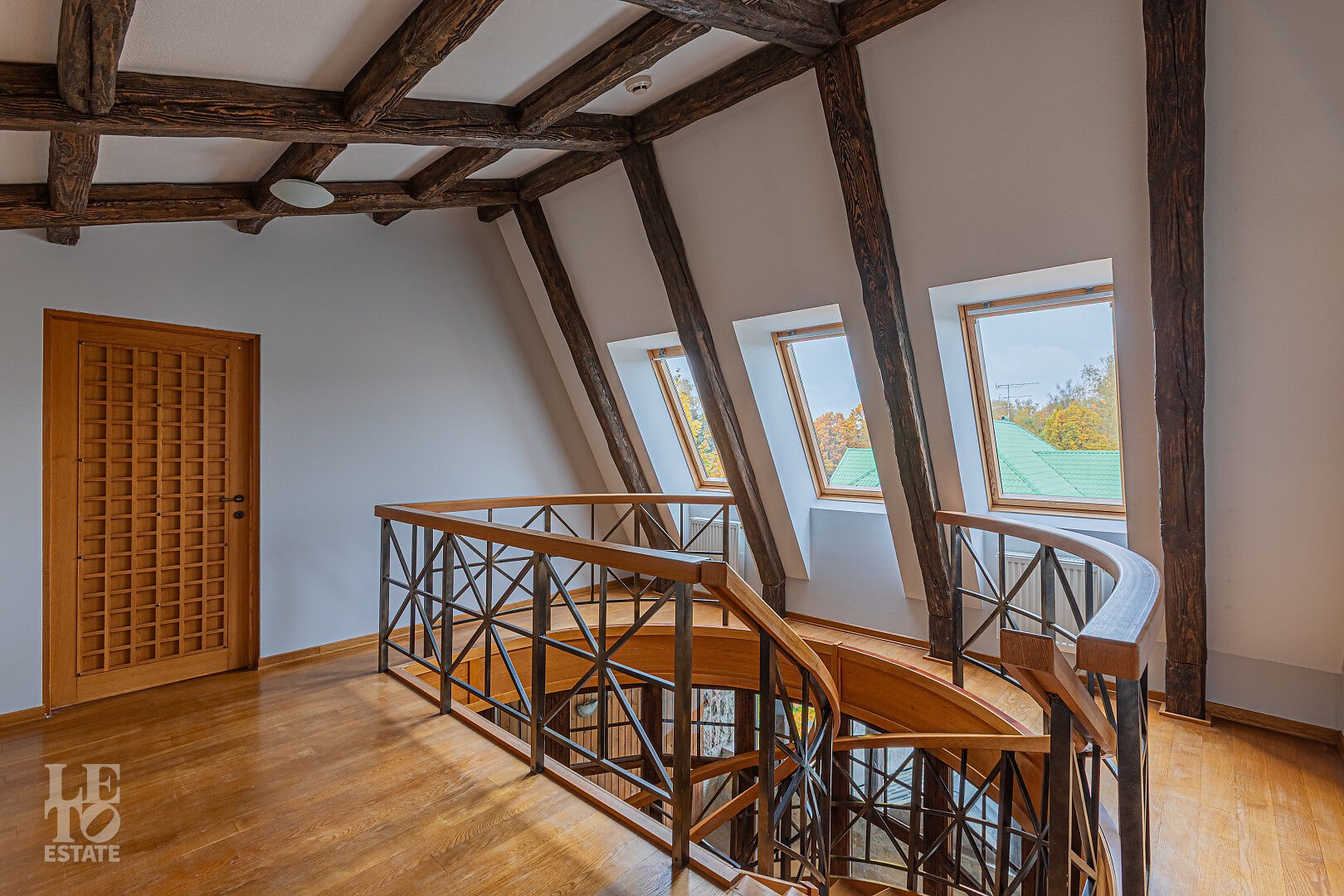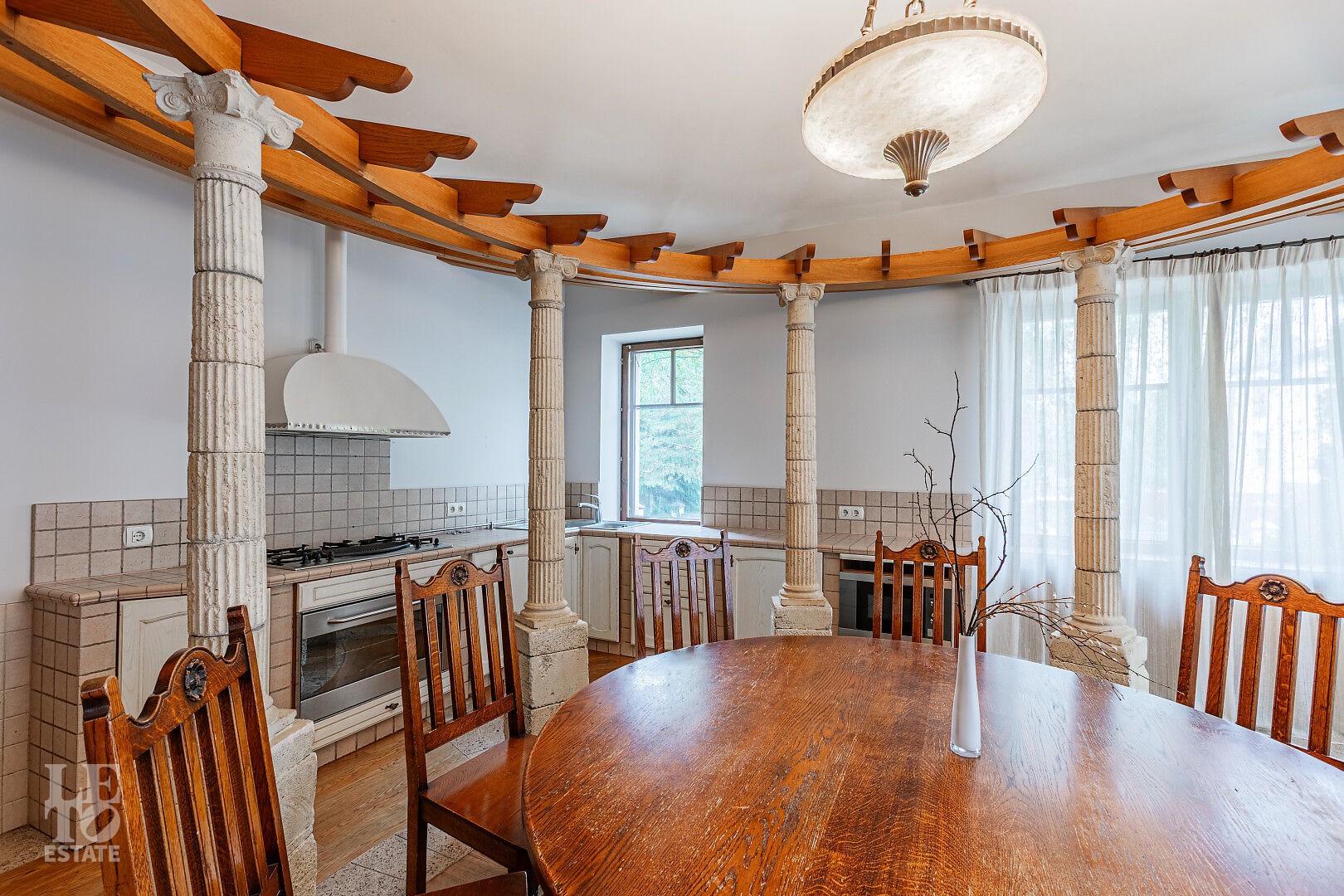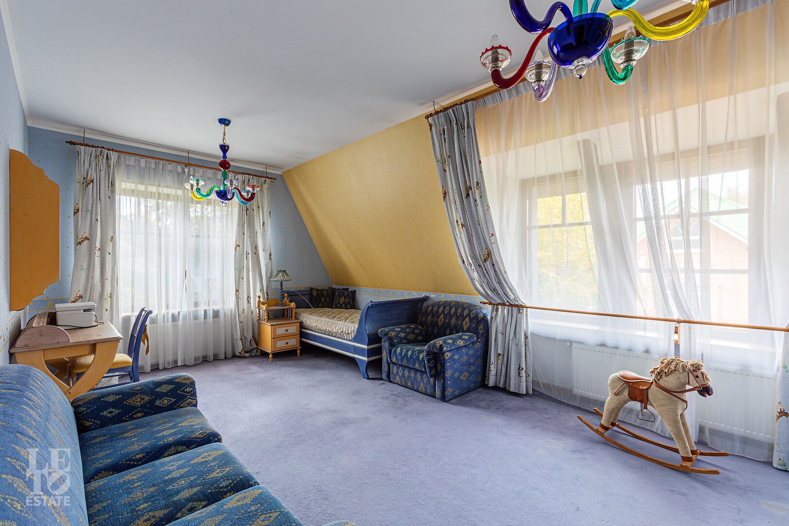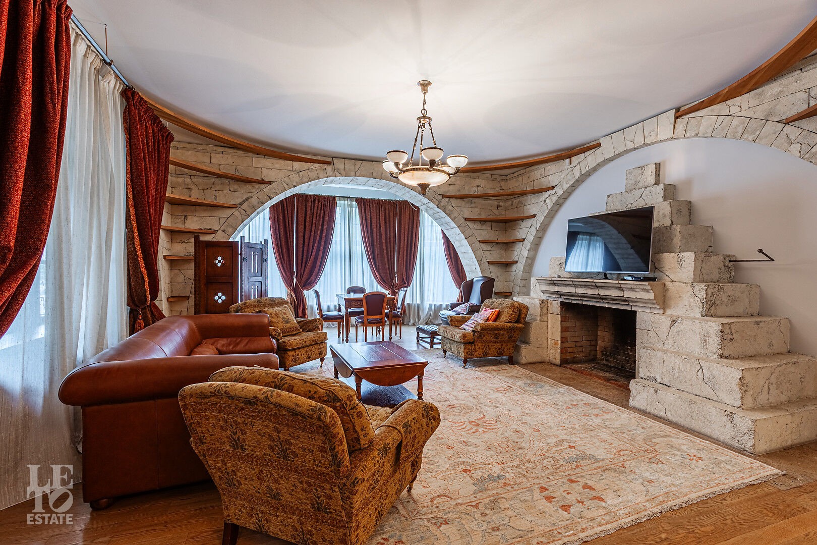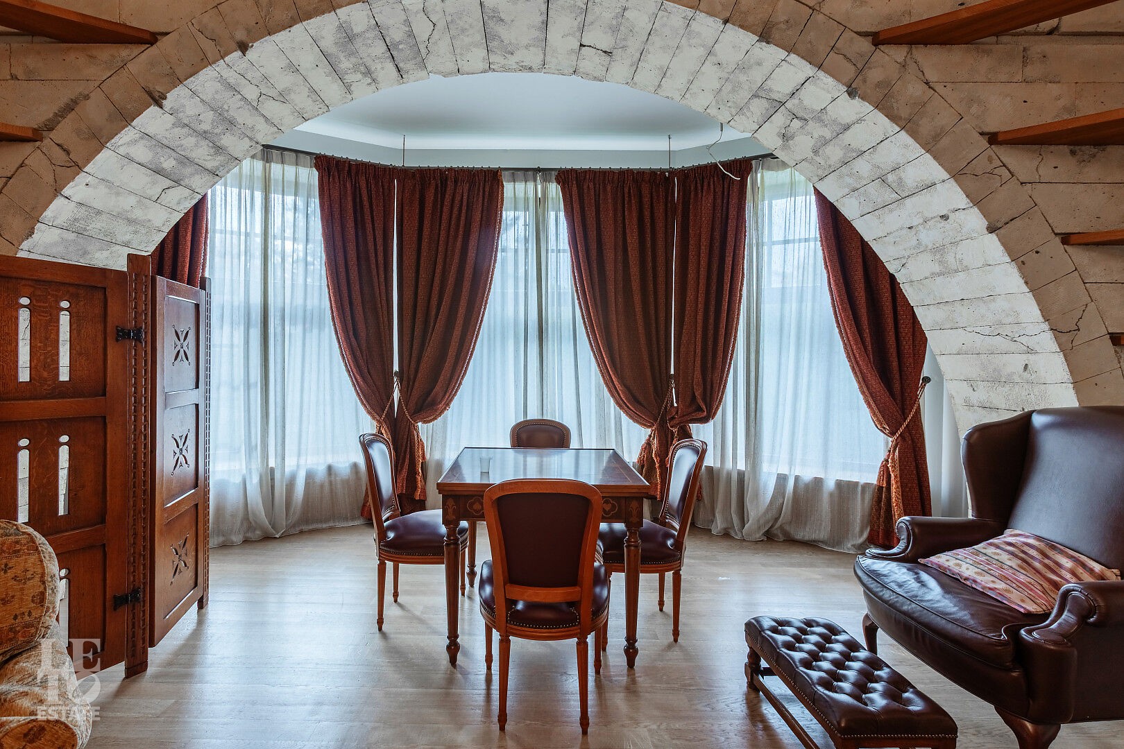 Трехэтажный дом построен в замковом стиле по проекту архитектора Михаила Филиппова, а дизайн интерьера выполнен в стиле Шале. Сам по себе этот дом подчеркивает уют и самобытность для своего будущего владельца.