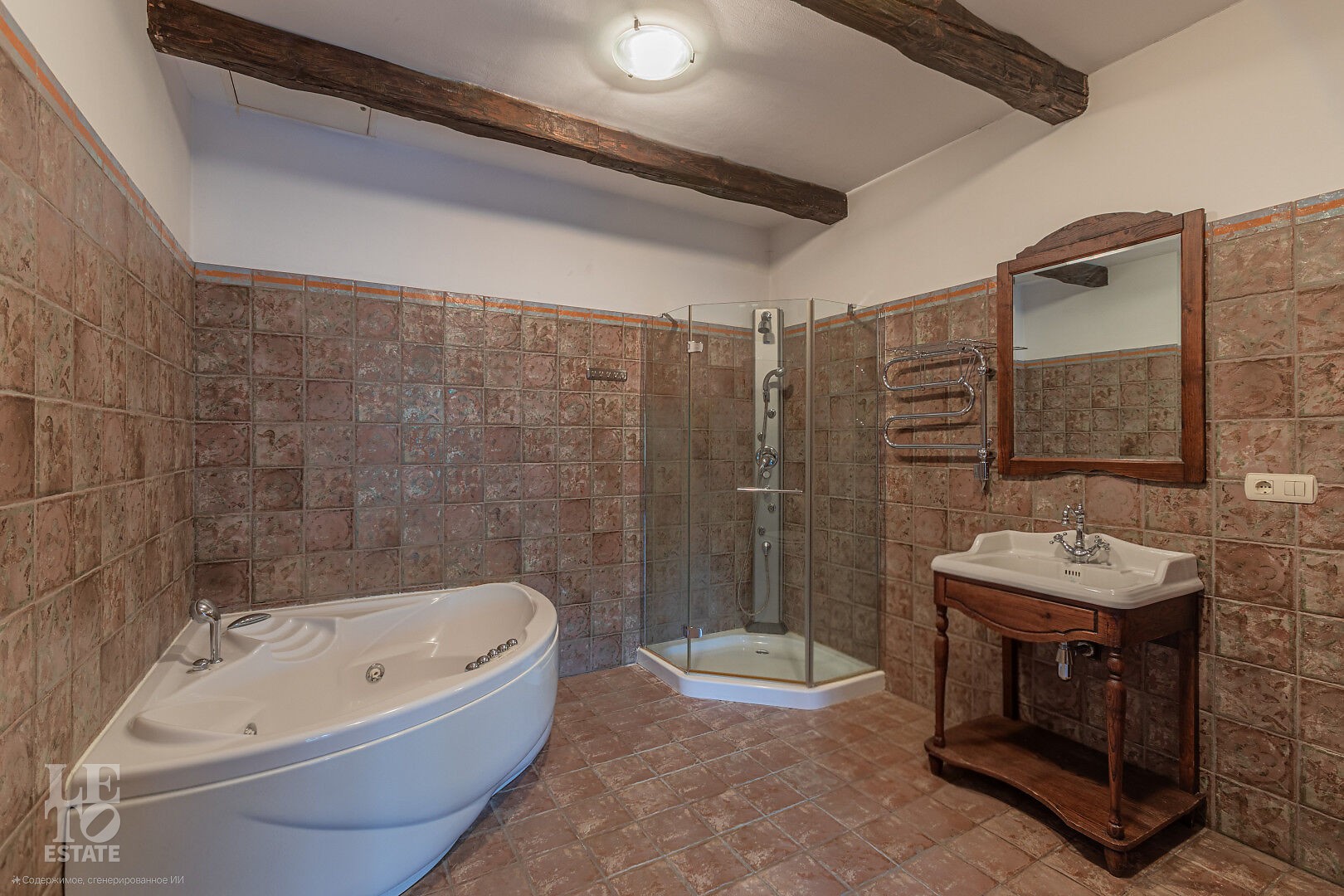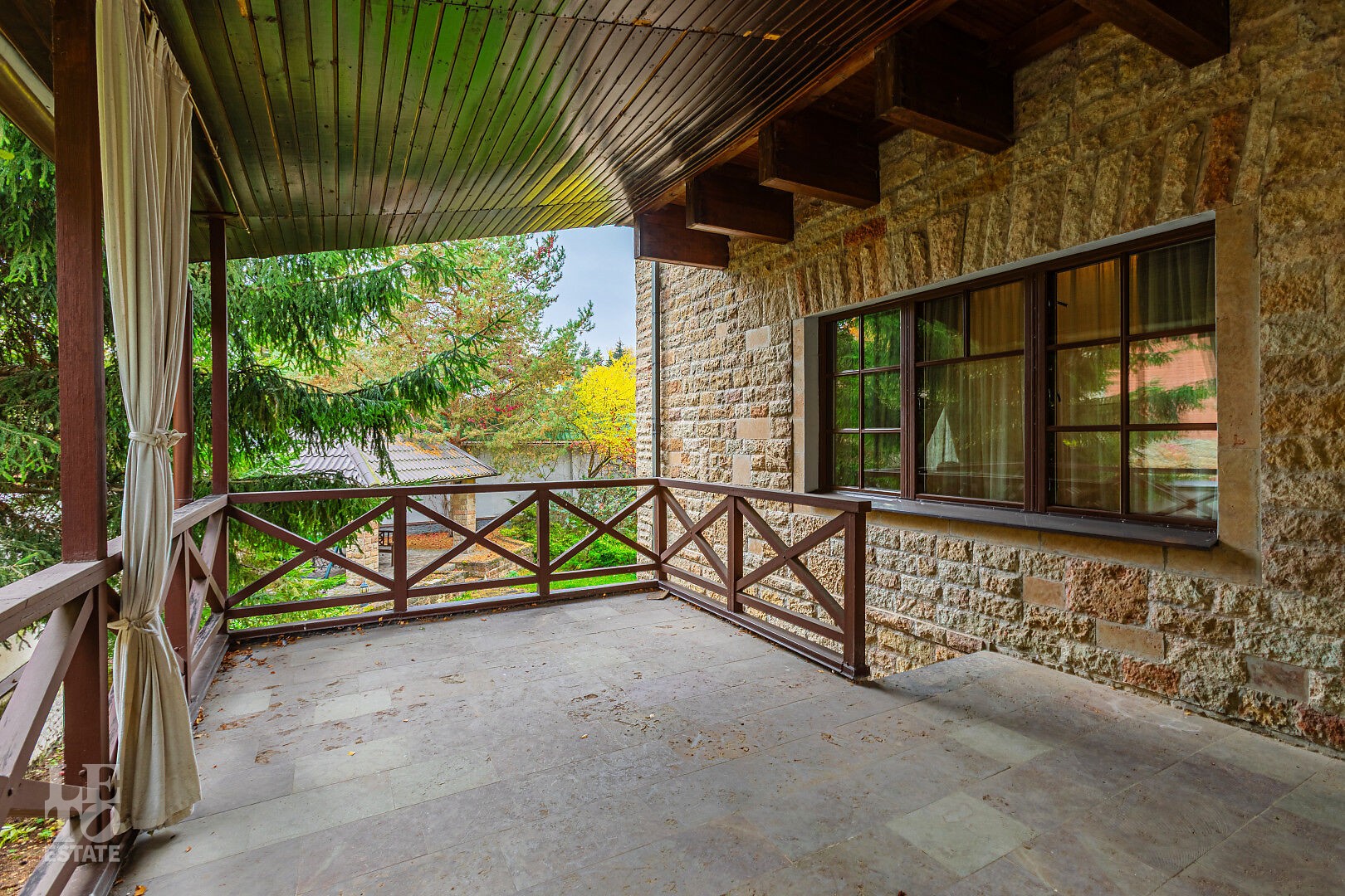 Участок 14 соток с ландшафтным дизайном, плодовыми и лесными деревьями, кустарниками, с широким подъездом и гостевой парковкой под навесом. На территории имеется зона барбекю с беседкой, фонтан и игровая зона для детей.