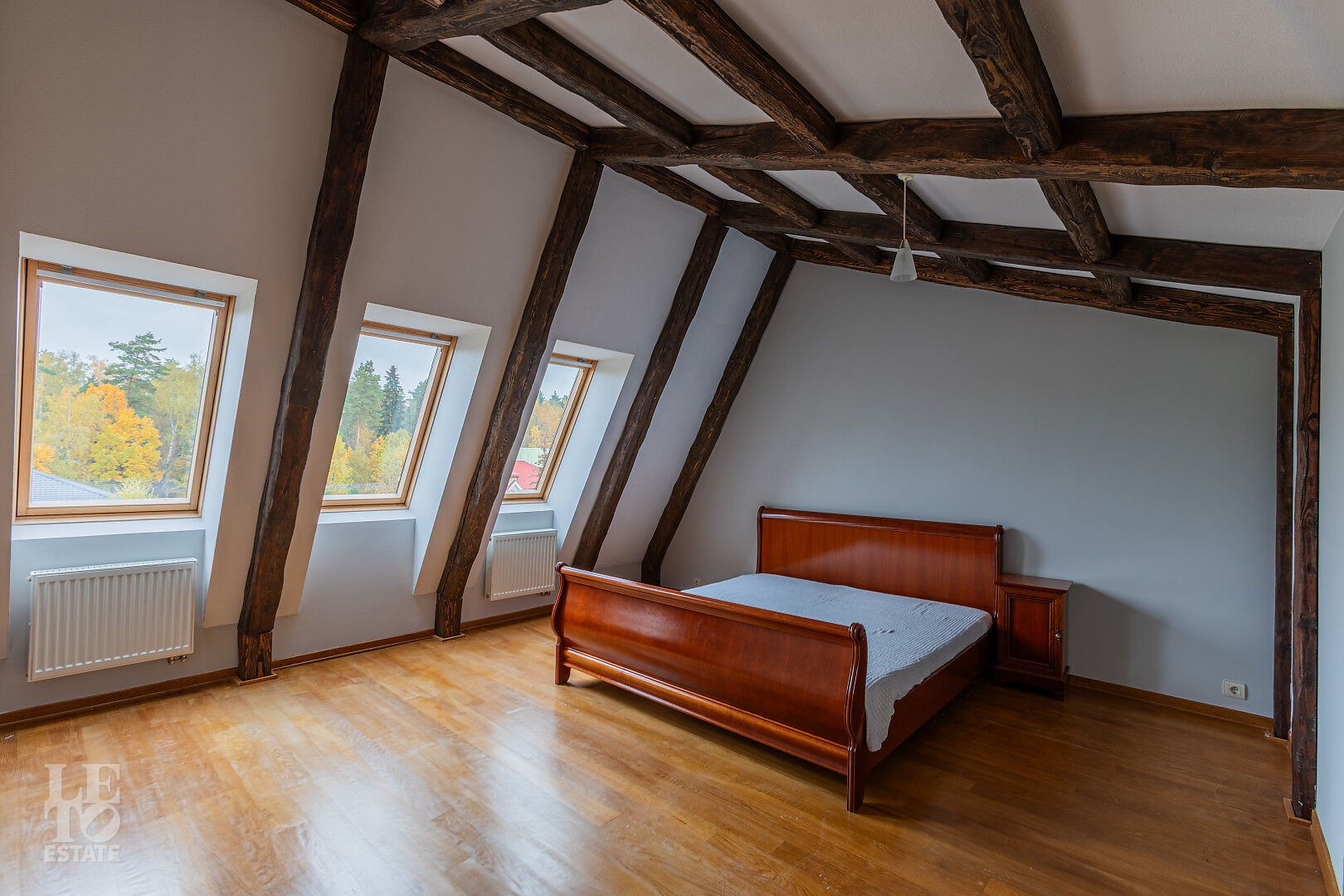 Мансардный этаж: спальня с гардеробной и ванной комнатами, кладовая, игровая/кабинет/библиотека.