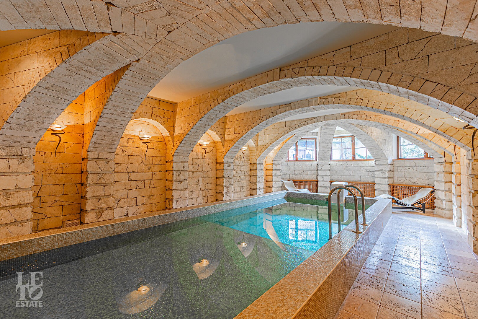 Цокольный этаж: холл, бойлерная, прачечная, санузел, спа-зона: бассейн с противотоком, сауна, комната отдыха, душевые;