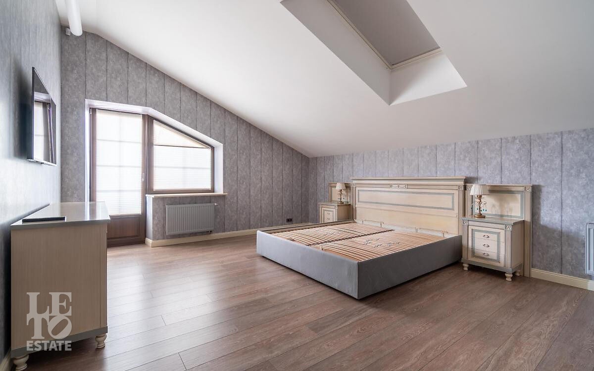 Второй этаж: мастер-спальня с гардеробной и санузлом с выходами. на лоджию и террасу, спальня с гардеробной и выходом на террасу, спальня с выходом на лоджию, спальня с выходом на террасу, санузел.