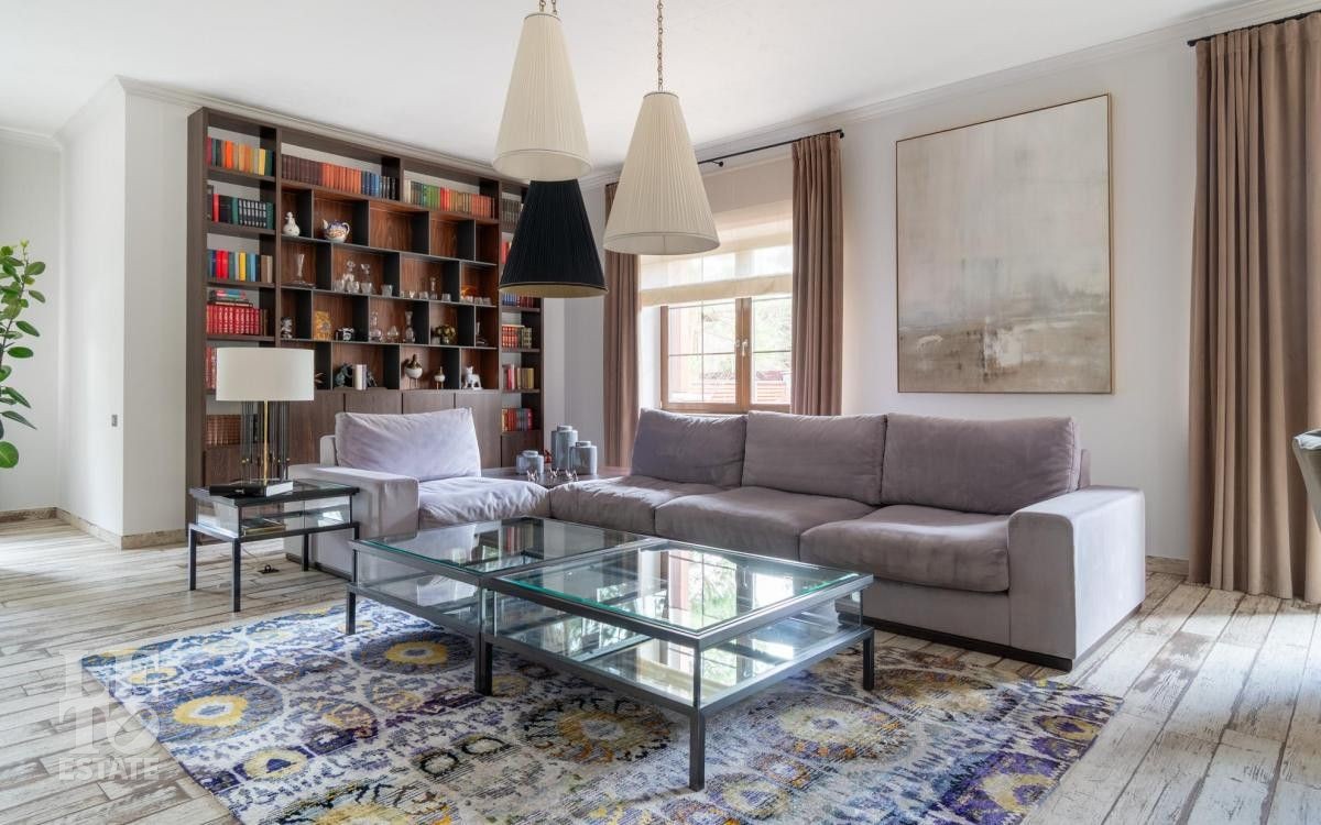 Отделка дома выполнена в современной стилистике из элитных материалов. Гармонично присутствуют элементы стилей: современная американская классика, лофт и французский прованс.