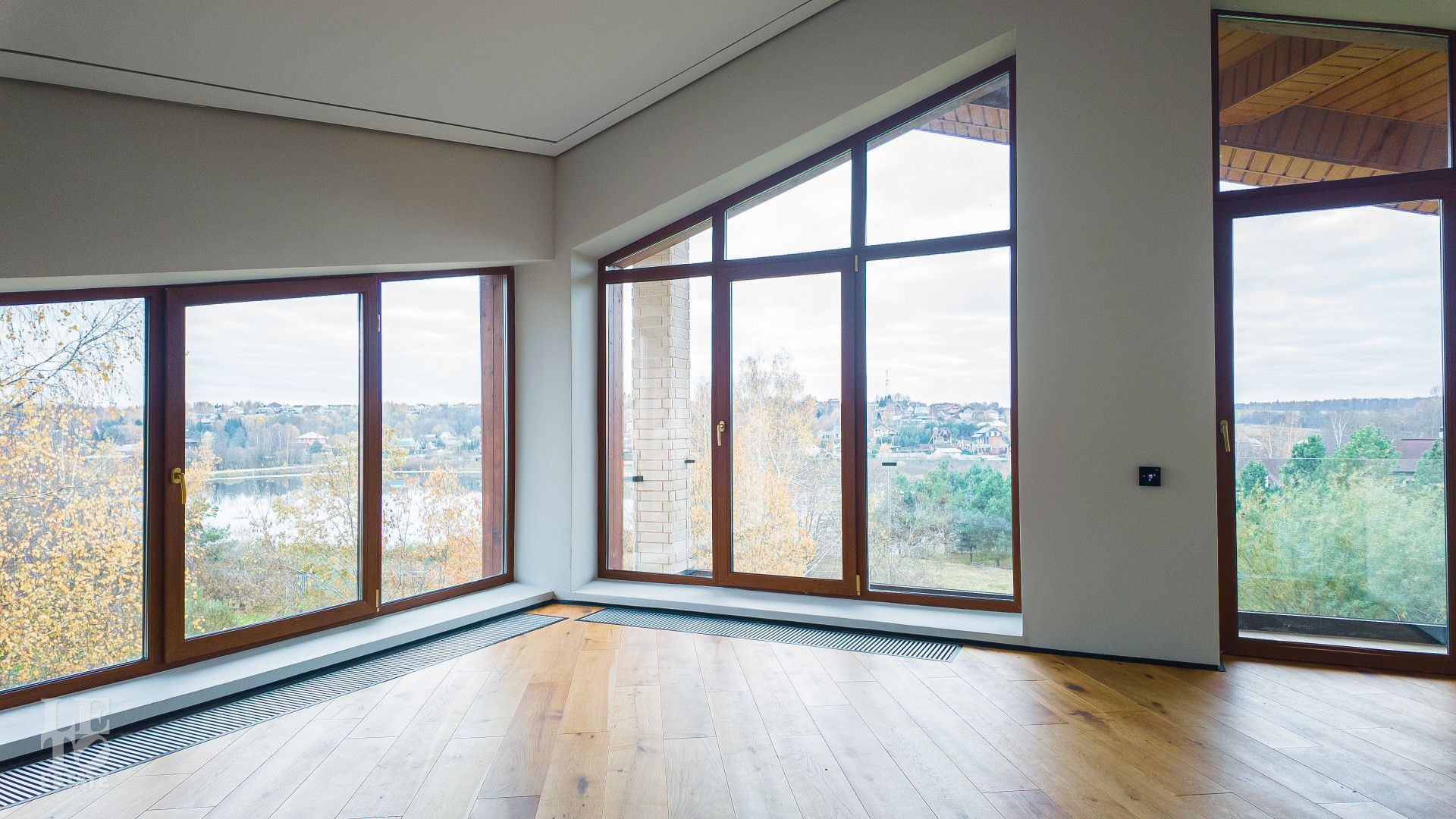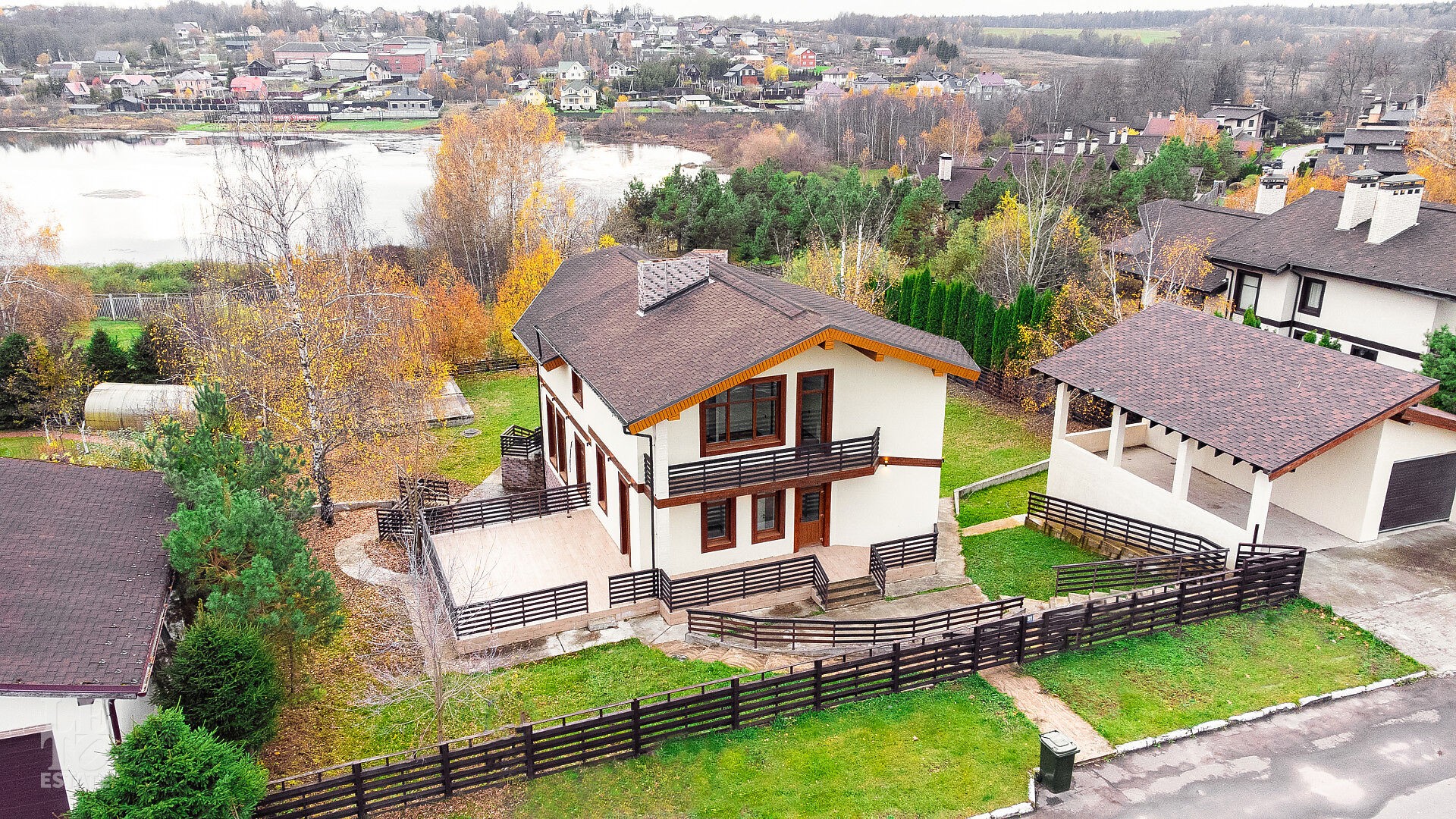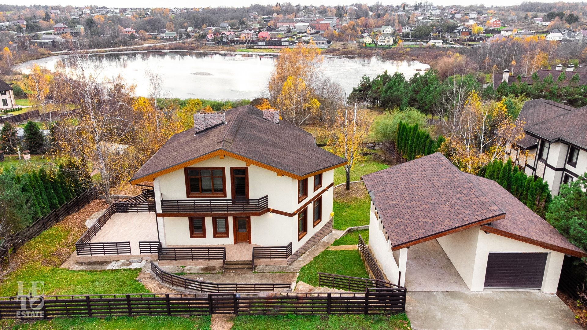 Дом находится на живописной возвышенности, благодаря чему из панорамных окон открывается захватывающий вид на озеро и бескрайний горизонт. Здесь вы каждый день будете наслаждаться ощущением простора, свободы и полного уединения, находясь при этом в охраняемом поселке.
