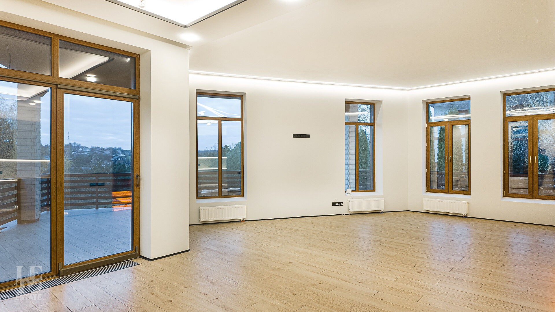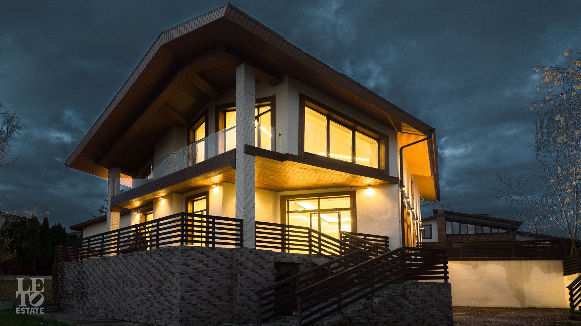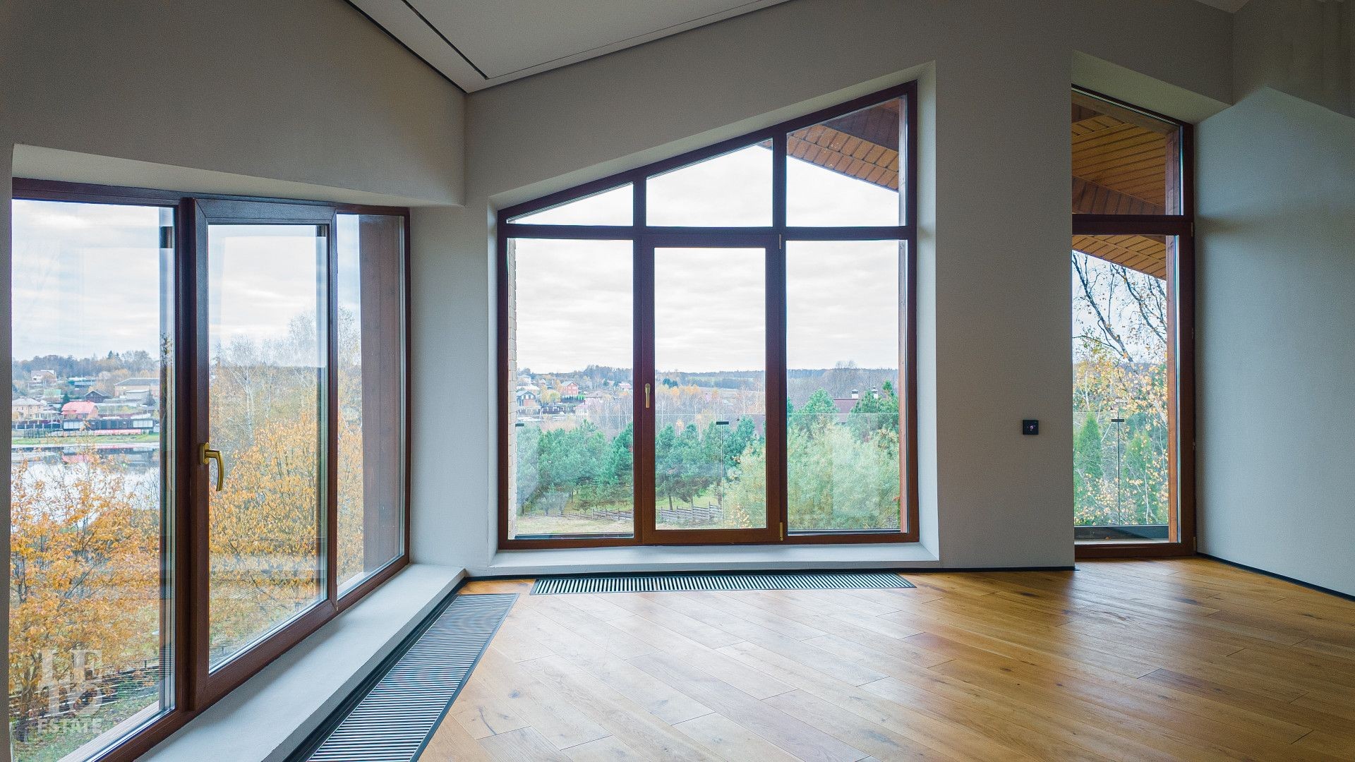 Дом находится на живописной возвышенности, благодаря чему из панорамных окон открывается захватывающий вид на озеро и бескрайний горизонт. Здесь вы каждый день будете наслаждаться ощущением простора, свободы и полного уединения, находясь при этом в охраняемом поселке.