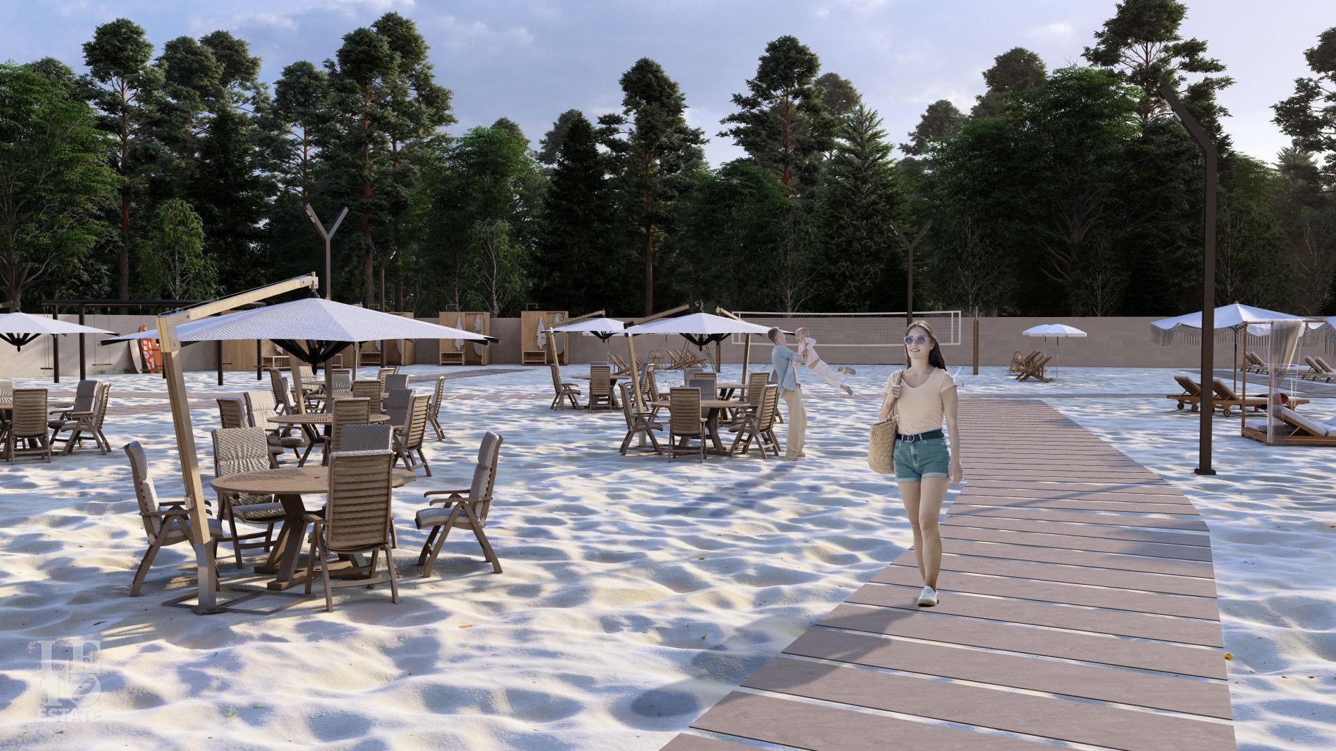 Собственный пляж, как на курорте. Берег залива обустроен для комфортного отдыха: здесь мягкий золотистый песок, лежаки, зонтики, кафе и бар. Пляж отделён от большой воды, поэтому рядом не будет никаких лодок, судов и катеров.