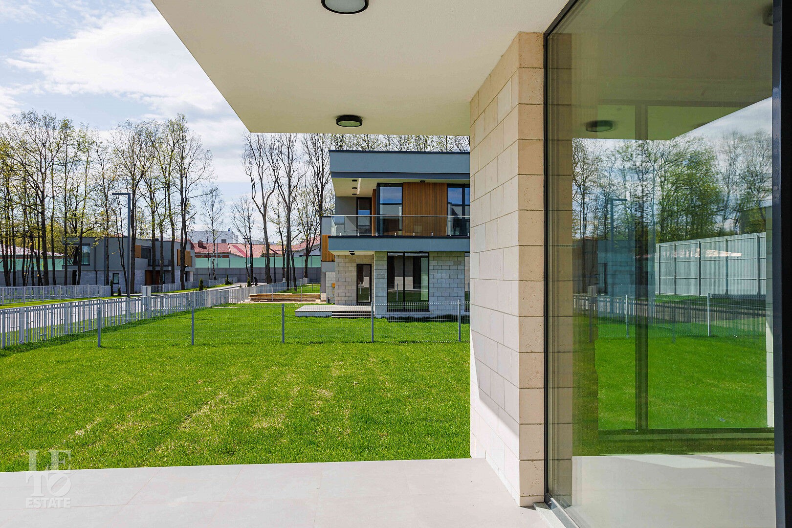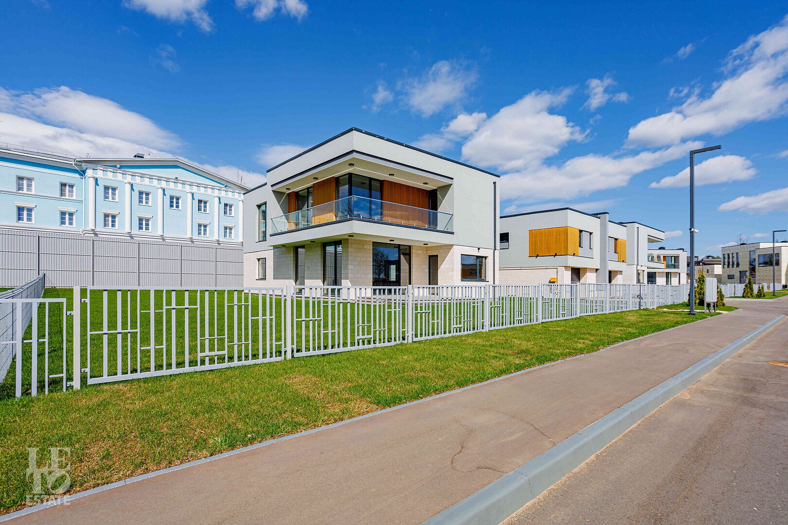 В двухэтажном доме есть пять спален с личными гардеробными и санузлами, а также невероятно просторная гостиная. Панорамное остекление наполняет дом солнечным светом и ощущением простора. Уютная кухня с выходом на террасу. Все коммуникации - центральные: газоснабжение, электроснабжение, холодное водоснабжение, канализация, в т. ч. и ливневая.
