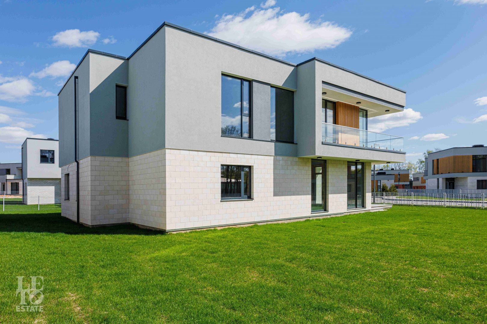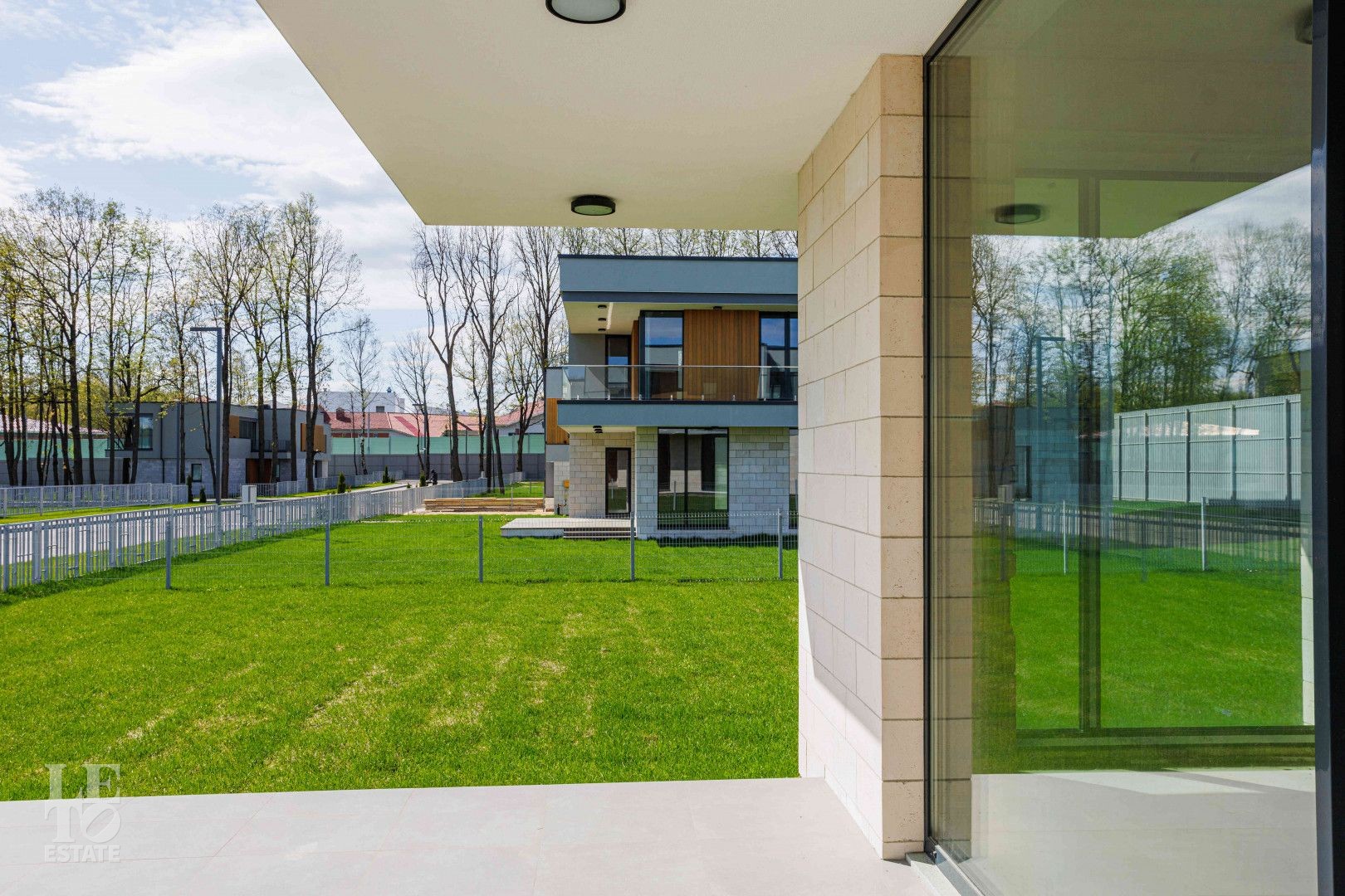 В двухэтажном доме есть четыре спальни с личными гардеробными и санузлами, а также невероятно просторная гостиная. Панорамное остекление наполняет дом солнечным светом и ощущением простора. Уютная кухня с выходом на террасу. Все коммуникации - центральные: газоснабжение, электроснабжение, холодное водоснабжение, канализация, в т. ч. и ливневая.