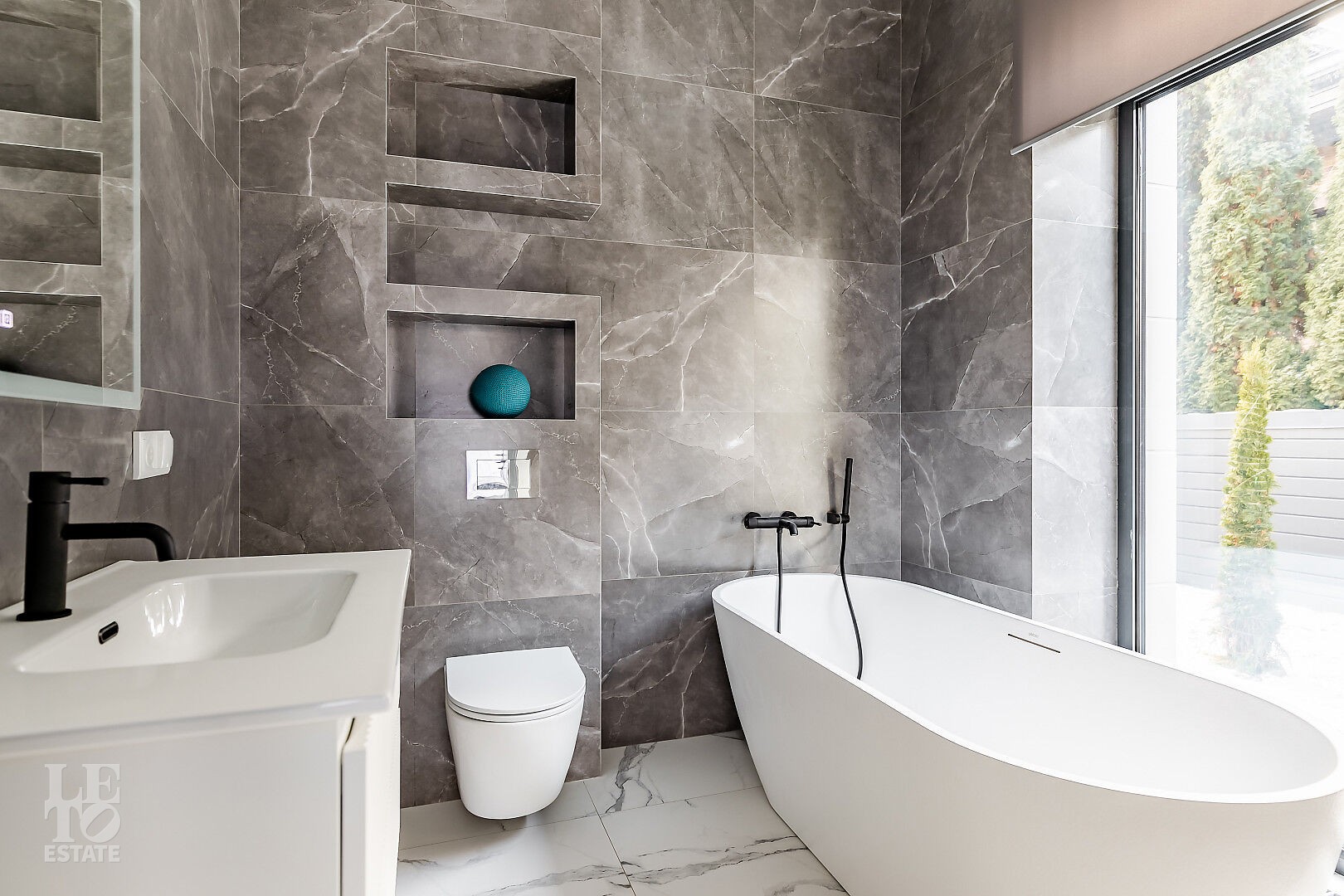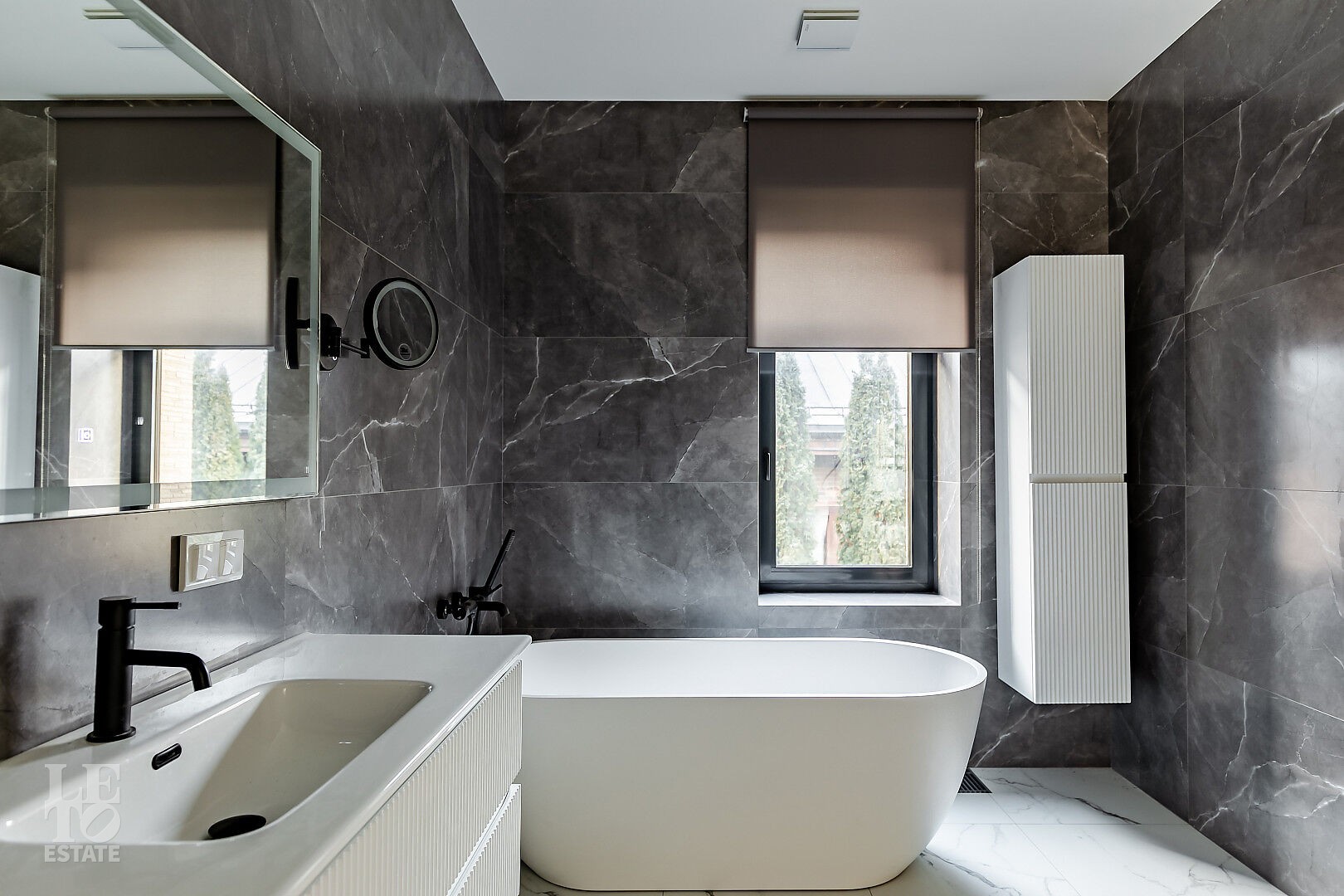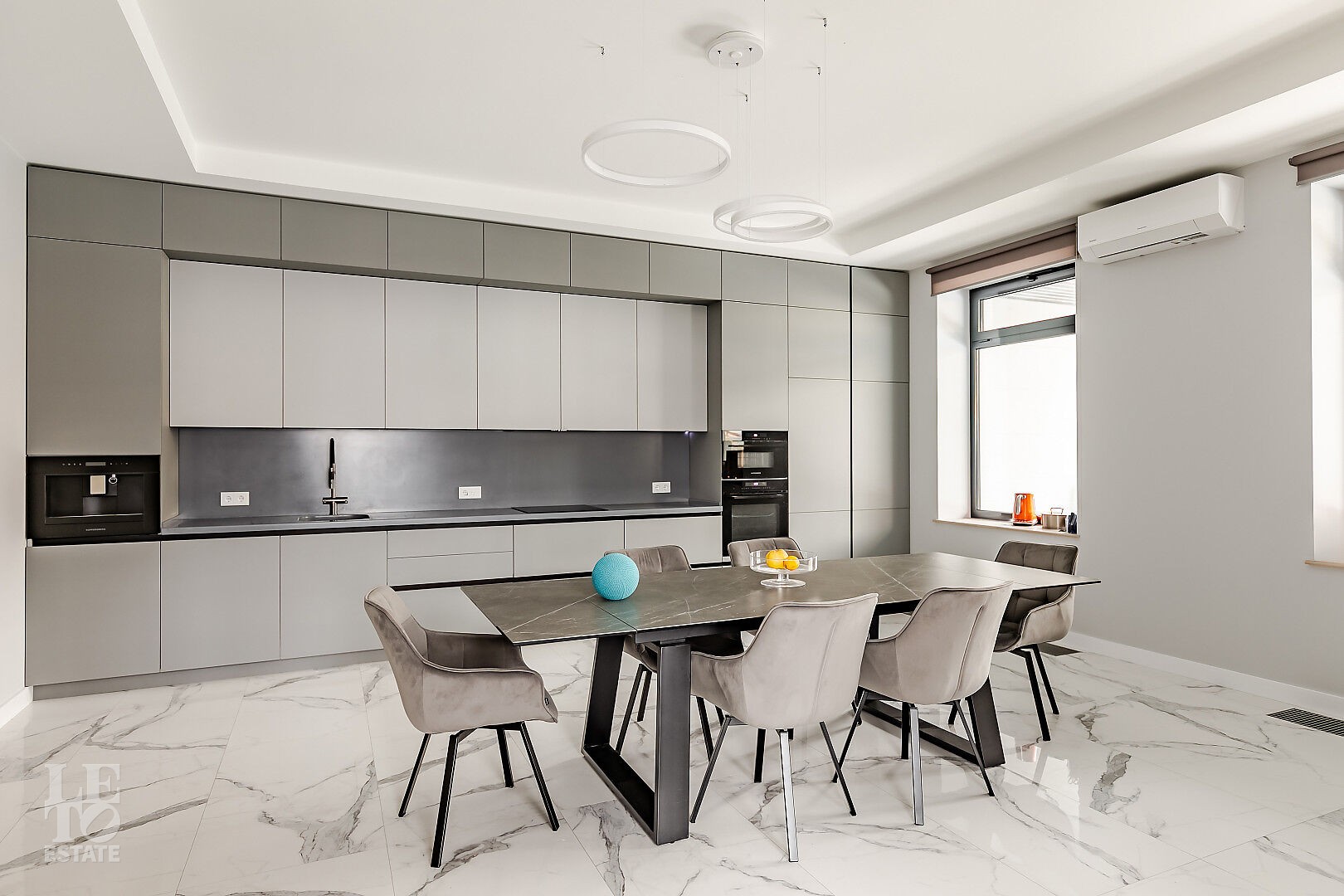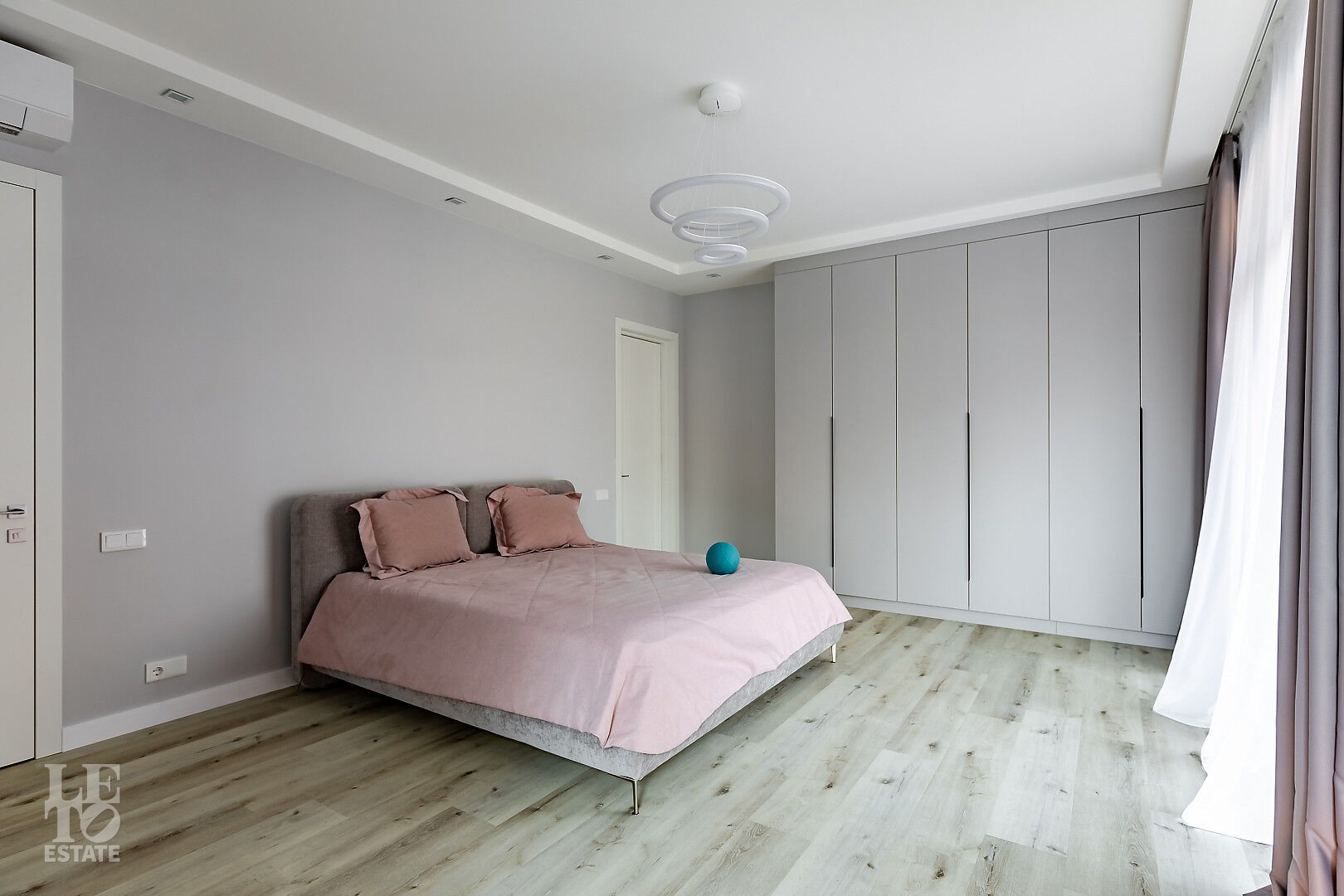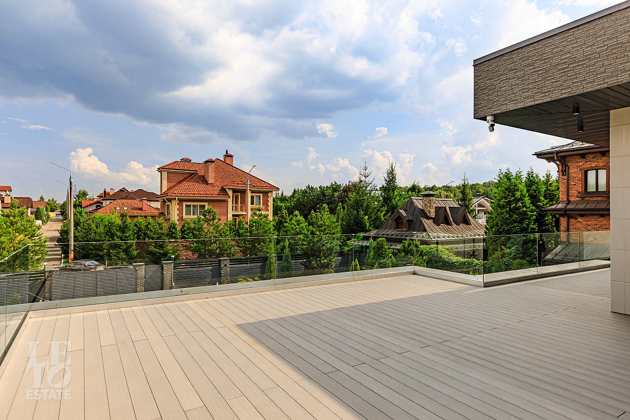 Высокое качество строительства и отделки. Панорамные окна в пол наполняют пространство солнечным светом и делают его более свободным и открытым. Интерьеры выполнены в светлых тонах, в отделке использованы только самые качественные материалы. Отделка и меблировка представляют собой единое дизайнерское решение. Высококлассная дорогая мебель, ультрасовременное бытовое оборудование и техника премиальных брендов. По всему периметру дома просторные террасы.