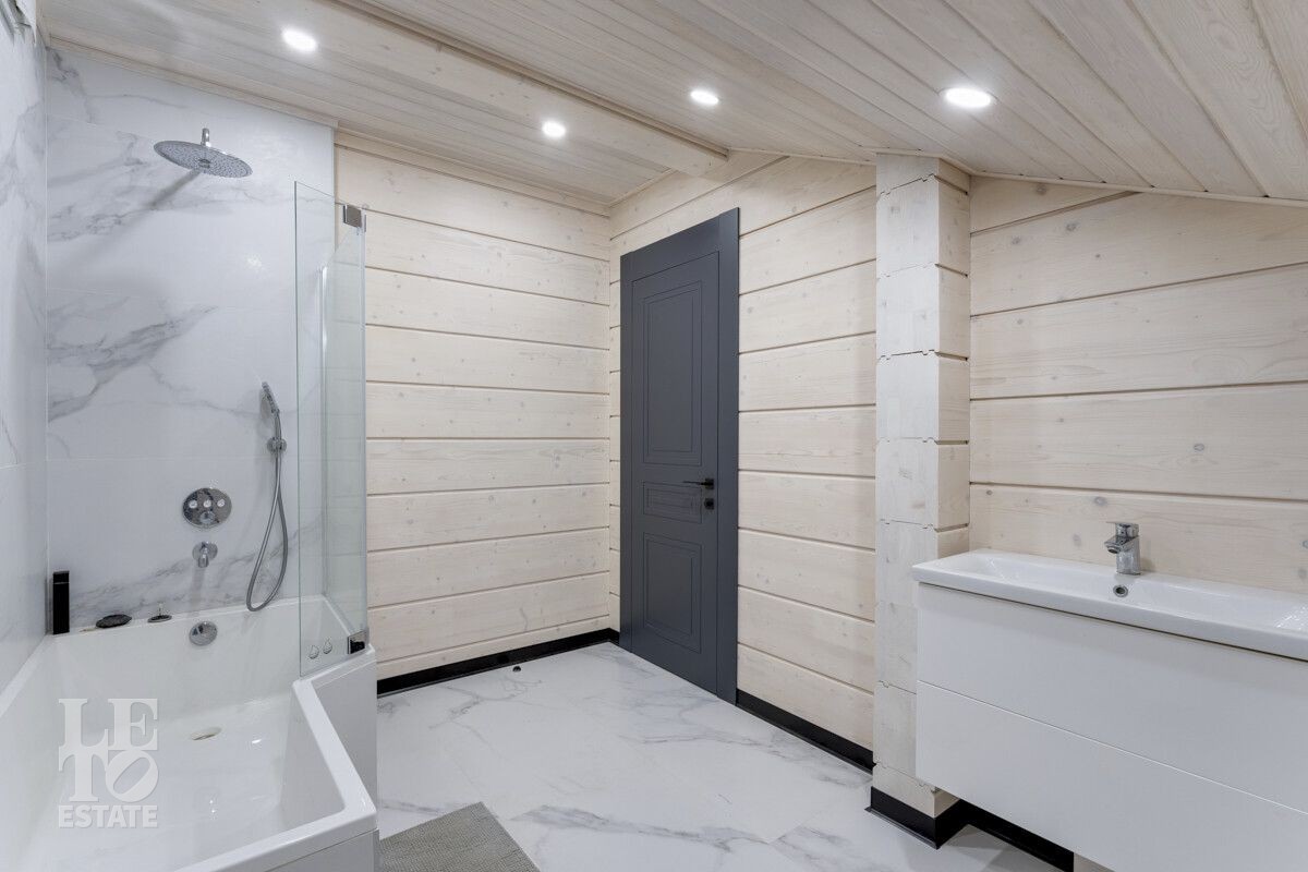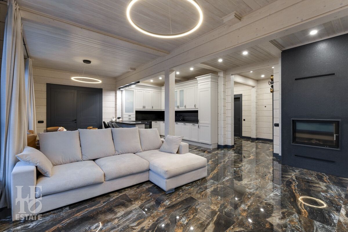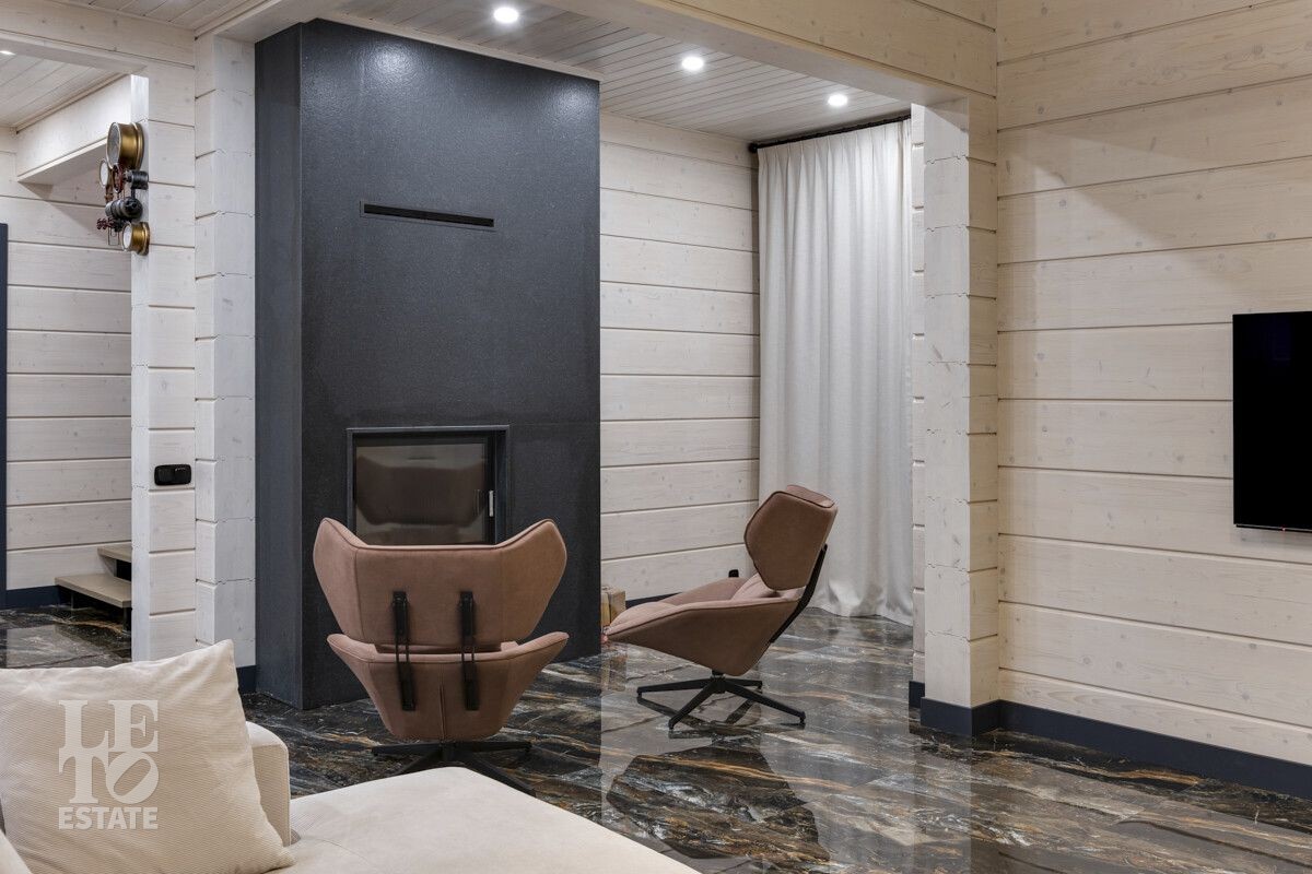 В доме был завершен ремонт в 2023 году. Отлично подходит для круглогодичного постоянного проживания. В интерьере были использованы высококачественные и экологичные материалы: на полу – мраморная плитка и керамогранит (теплый пол), окна и лестница из массива дерева.