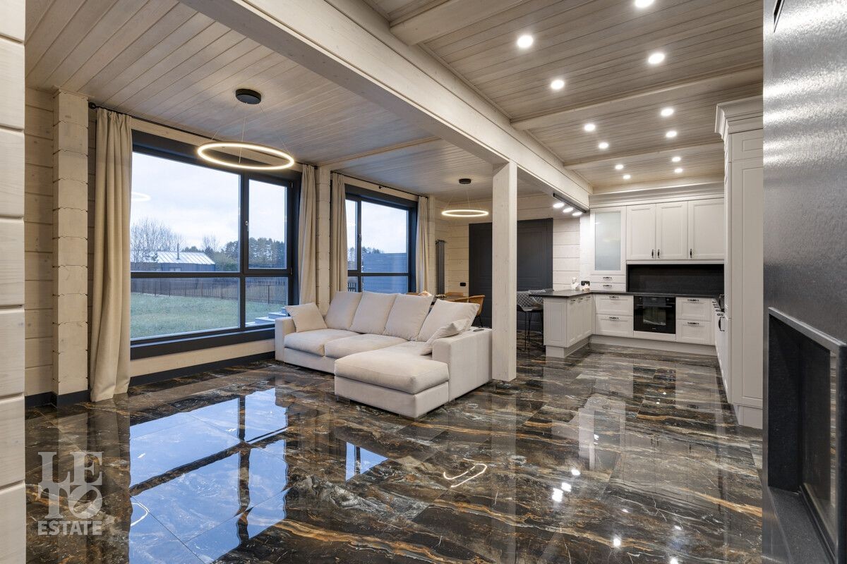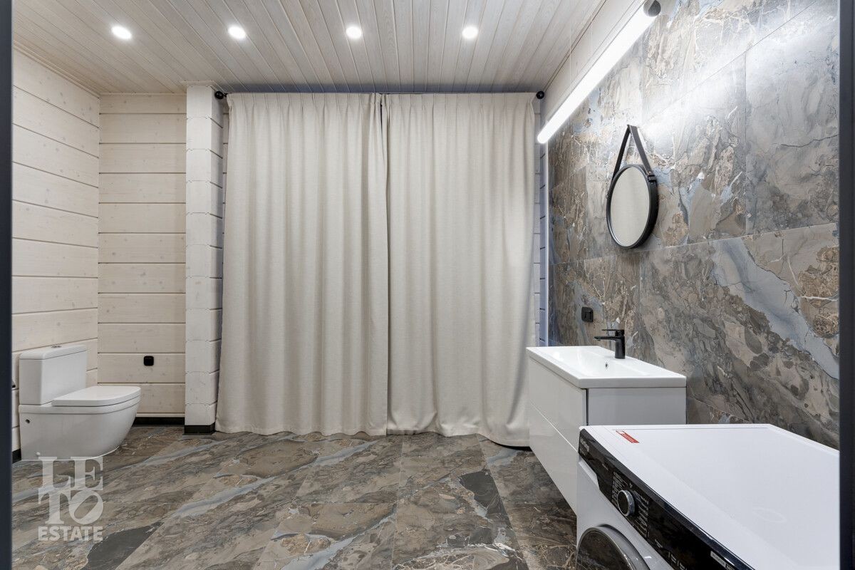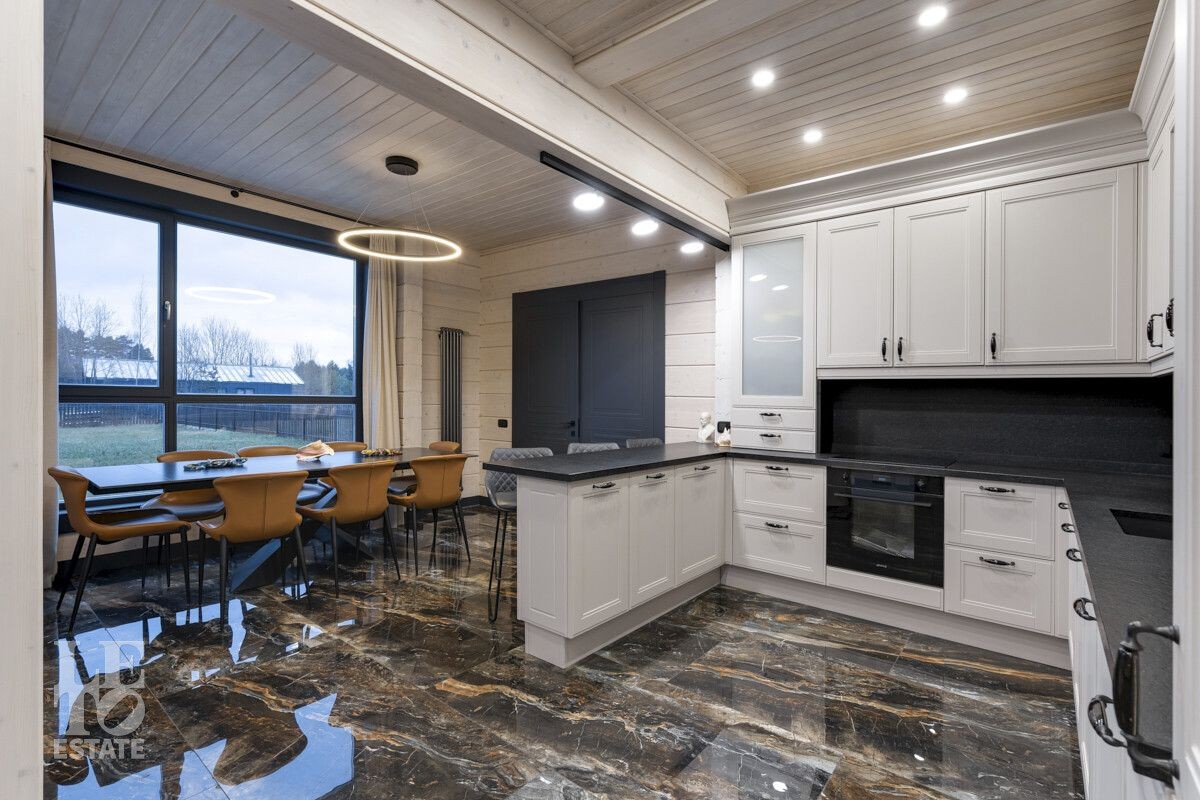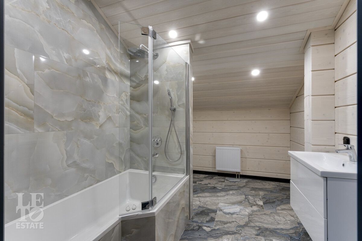 В доме был завершен ремонт в 2023 году. Отлично подходит для круглогодичного постоянного проживания. В интерьере были использованы высококачественные и экологичные материалы: на полу – мраморная плитка и керамогранит (теплый пол), окна и лестница из массива дерева.