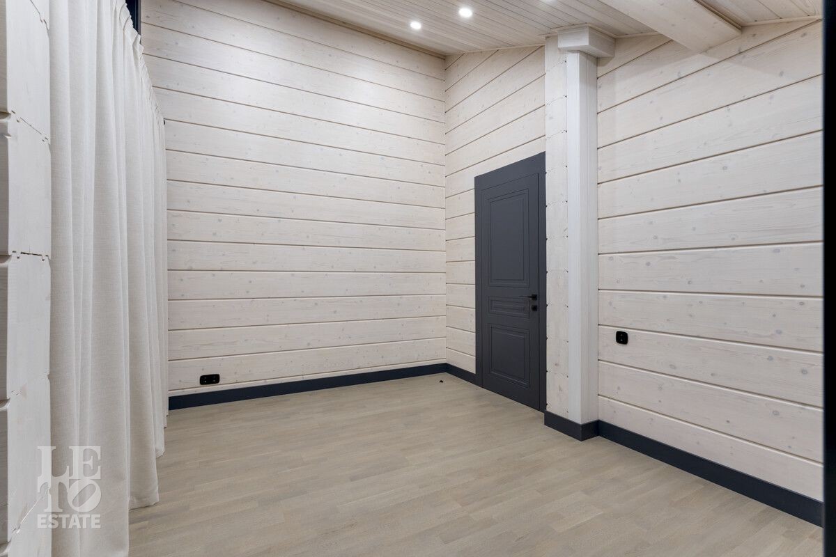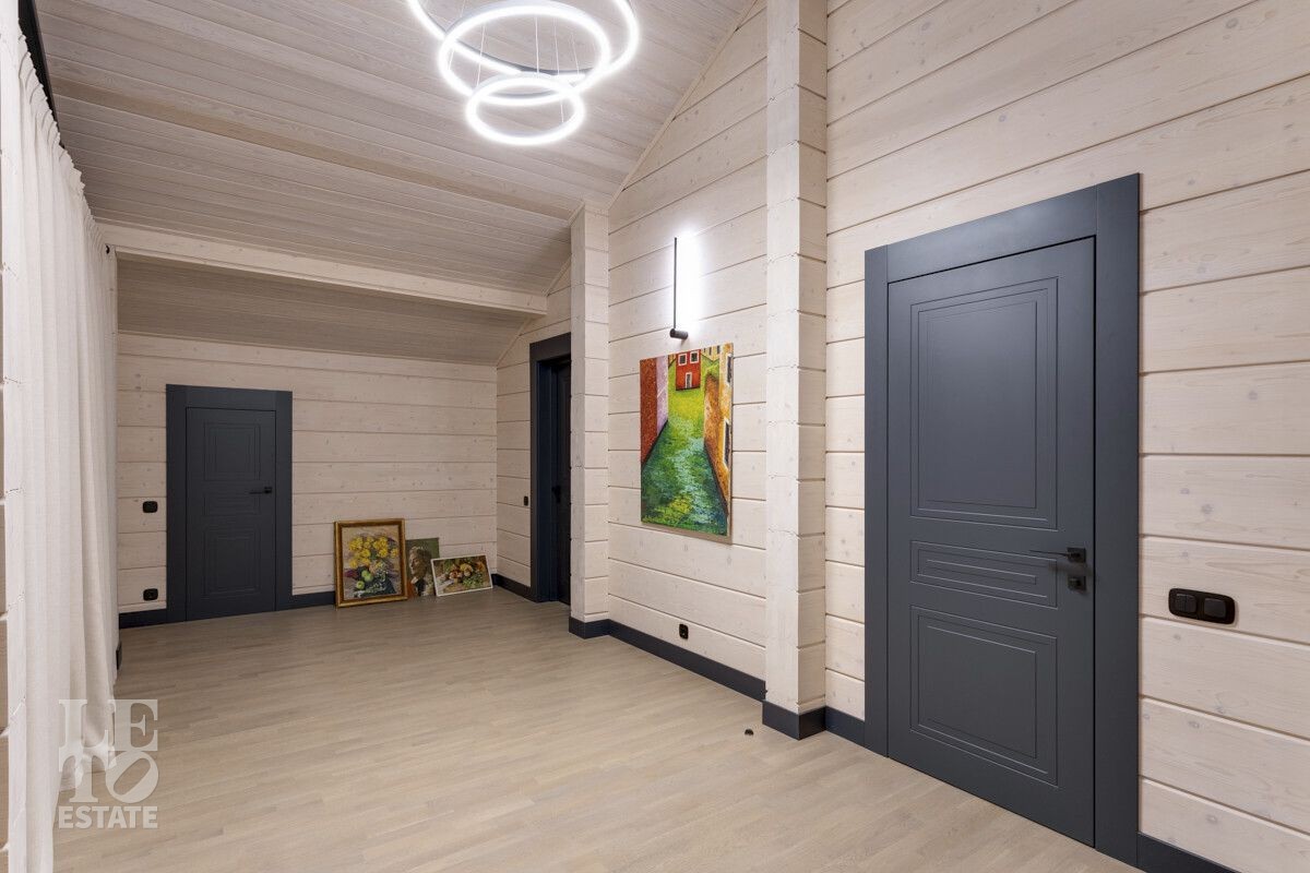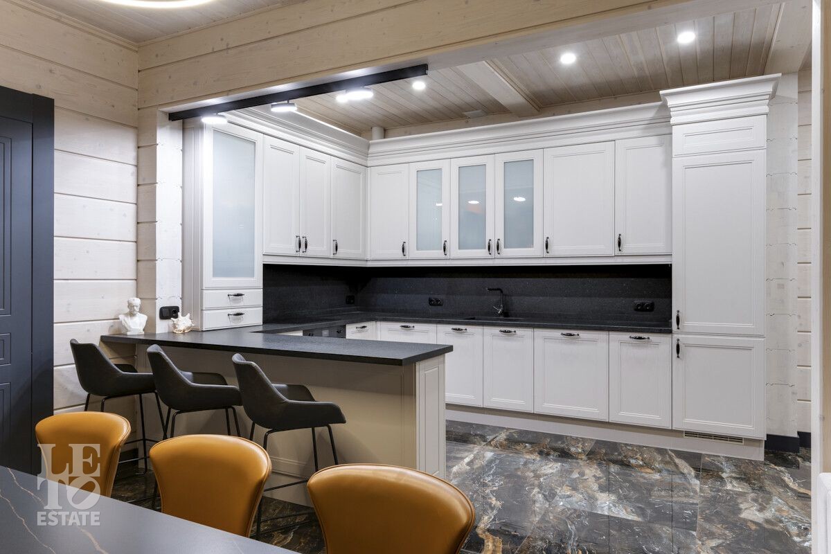 Планировка многофункциональная, включает в себя просторный зал с кухней и обеденной зоной, камином и панорамными окнами, обеспечивающими непревзойденный вид на благоустроенный участок. В доме пять комфортных спален со своими санузлами, обеспечивая достаточное место для всей семьи и гостей.