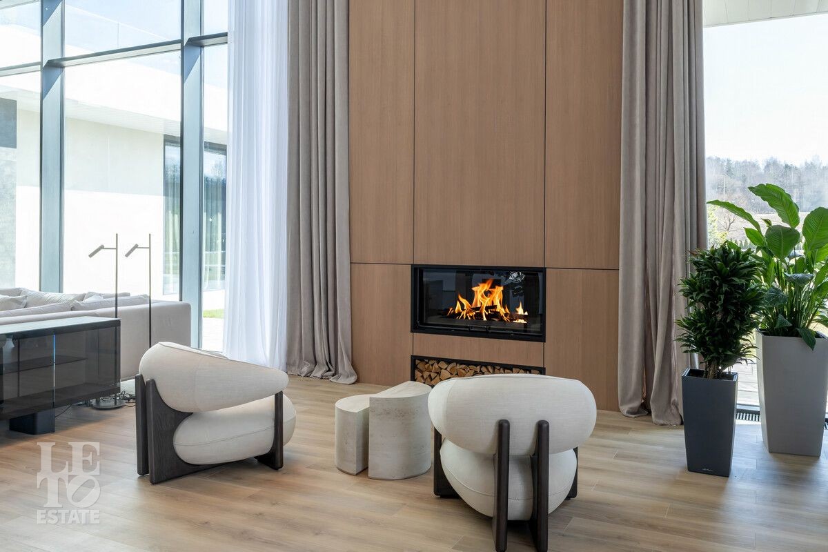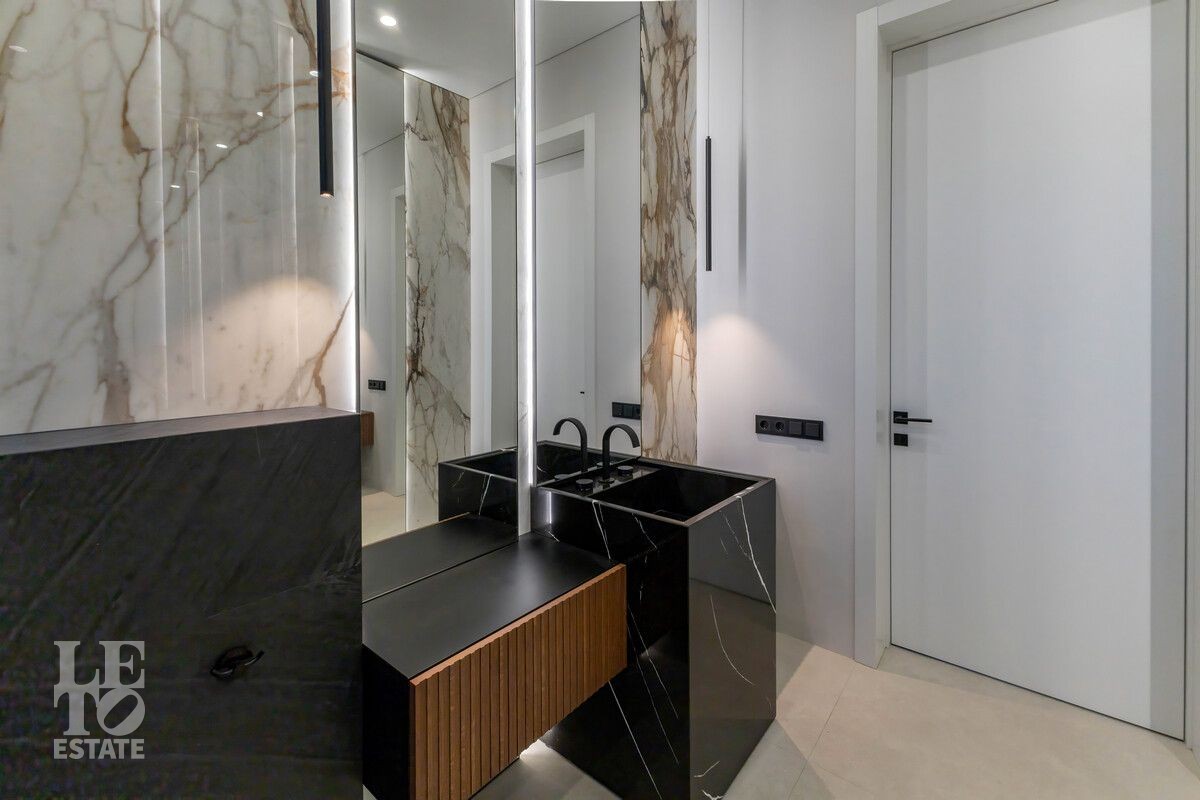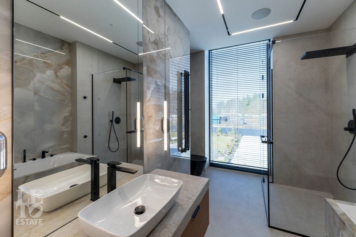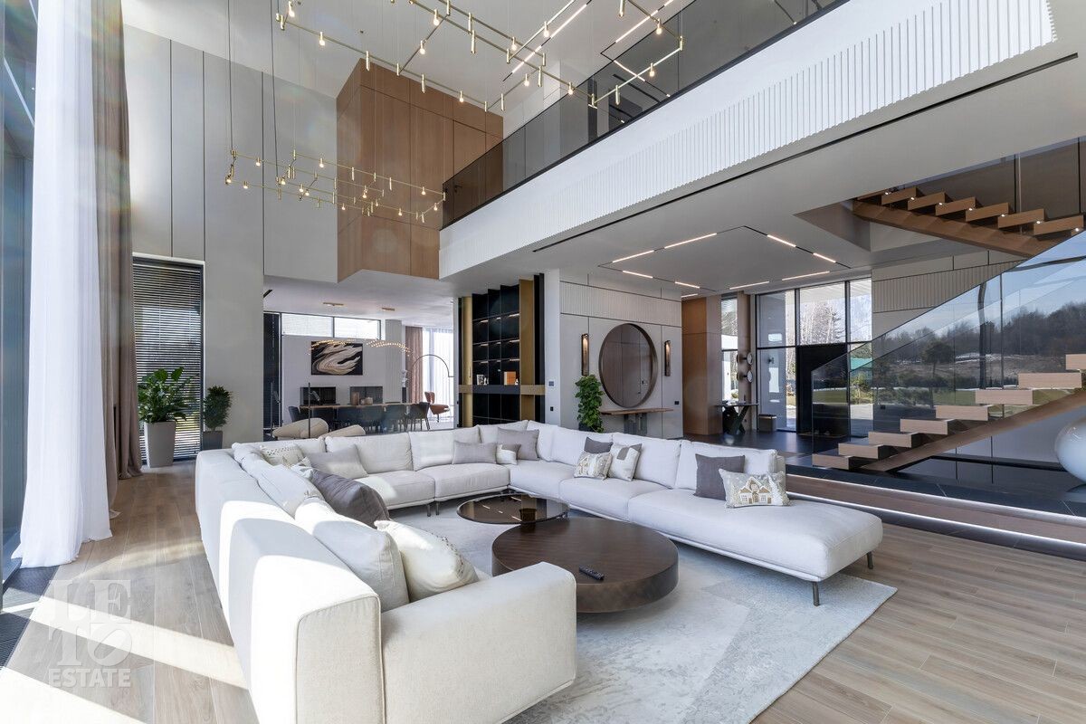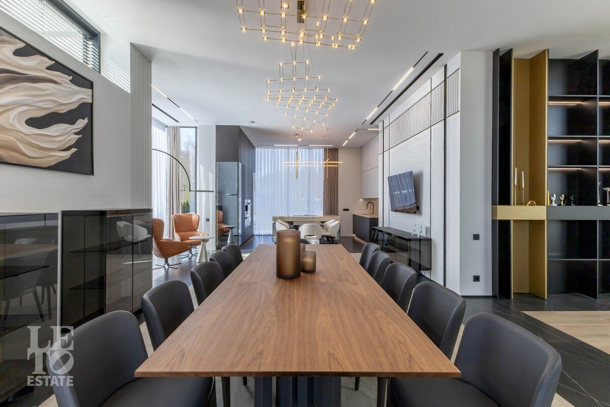 В доме выполнена отделка по индивидуальному проекту в современном стиле с использованием дорогих, качественных материалов. Благодаря высоким потолкам и панорамным окнам пространство наполнено воздухом и светом. Эксклюзивные дизайнерские решения придают уникальность внутреннему пространству дома. Это изысканный особняк, где роскошь царствует в каждой детали, а максимальный комфорт становится вашим постоянным спутником в этом великолепном доме. Все коммуникации - центральные: газоснабжение, электроснабжение, холодное водоснабжение, канализация.