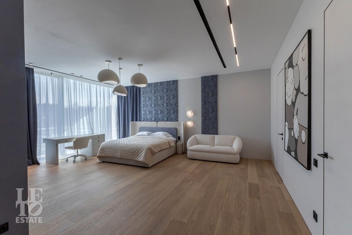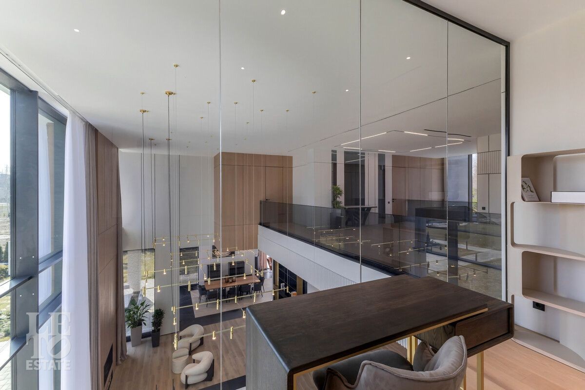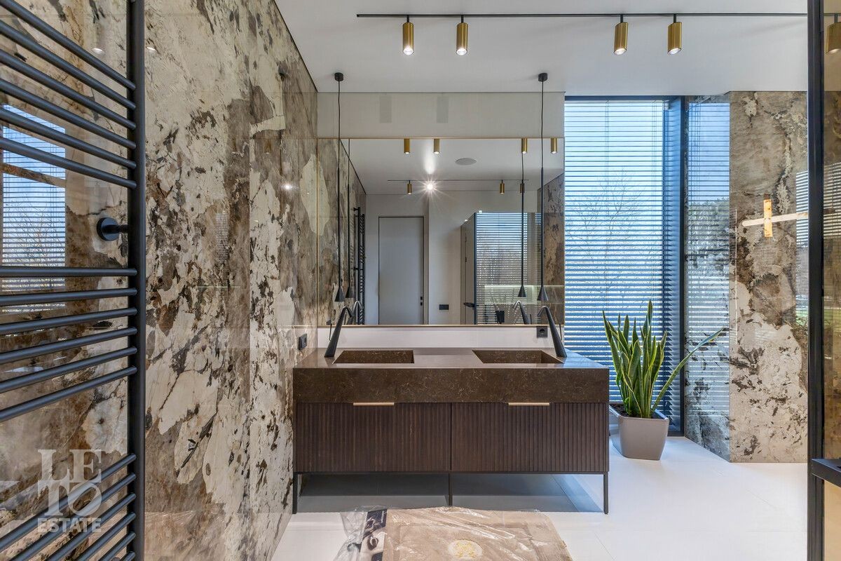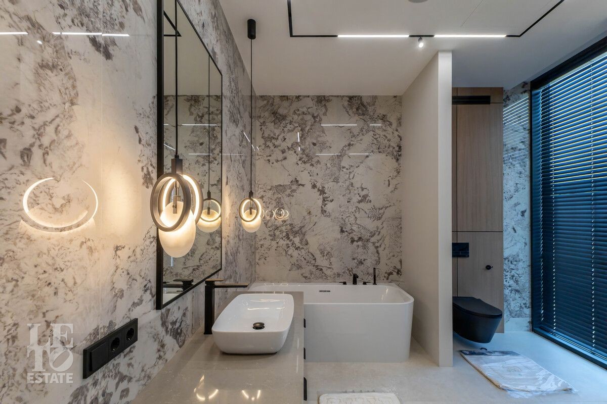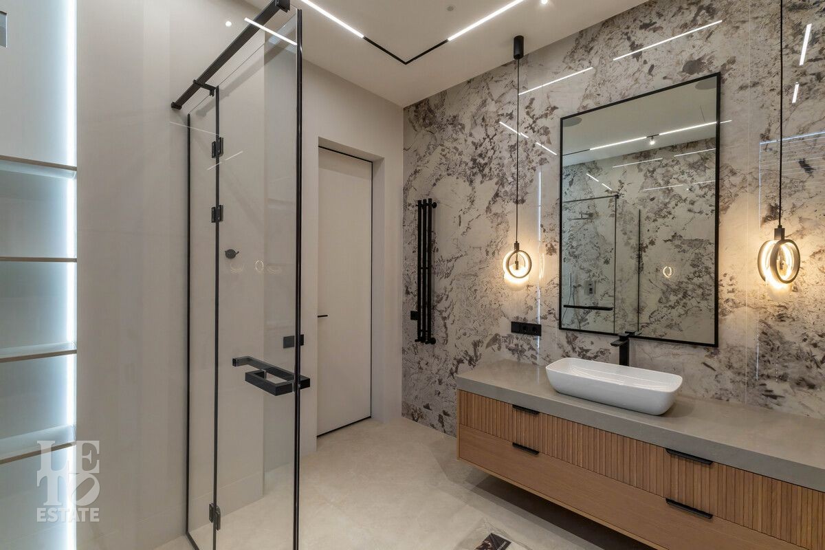 В доме выполнена отделка по индивидуальному проекту в современном стиле с использованием дорогих, качественных материалов. Благодаря высоким потолкам и панорамным окнам пространство наполнено воздухом и светом. Эксклюзивные дизайнерские решения придают уникальность внутреннему пространству дома. Это изысканный особняк, где роскошь царствует в каждой детали, а максимальный комфорт становится вашим постоянным спутником в этом великолепном доме. Все коммуникации - центральные: газоснабжение, электроснабжение, холодное водоснабжение, канализация.