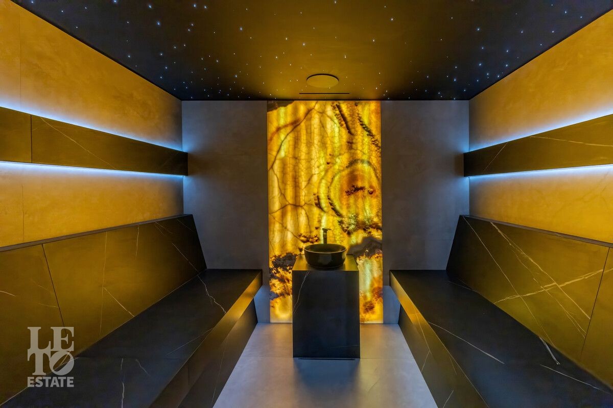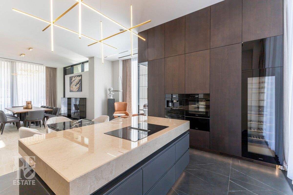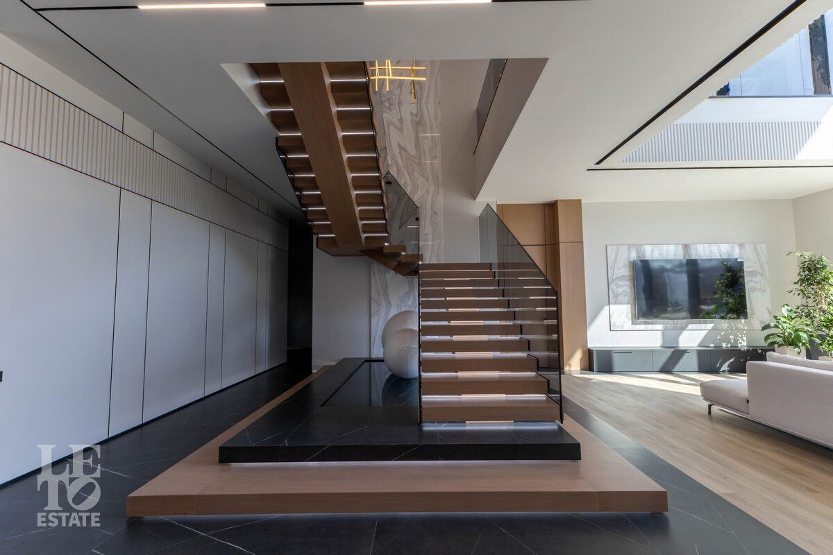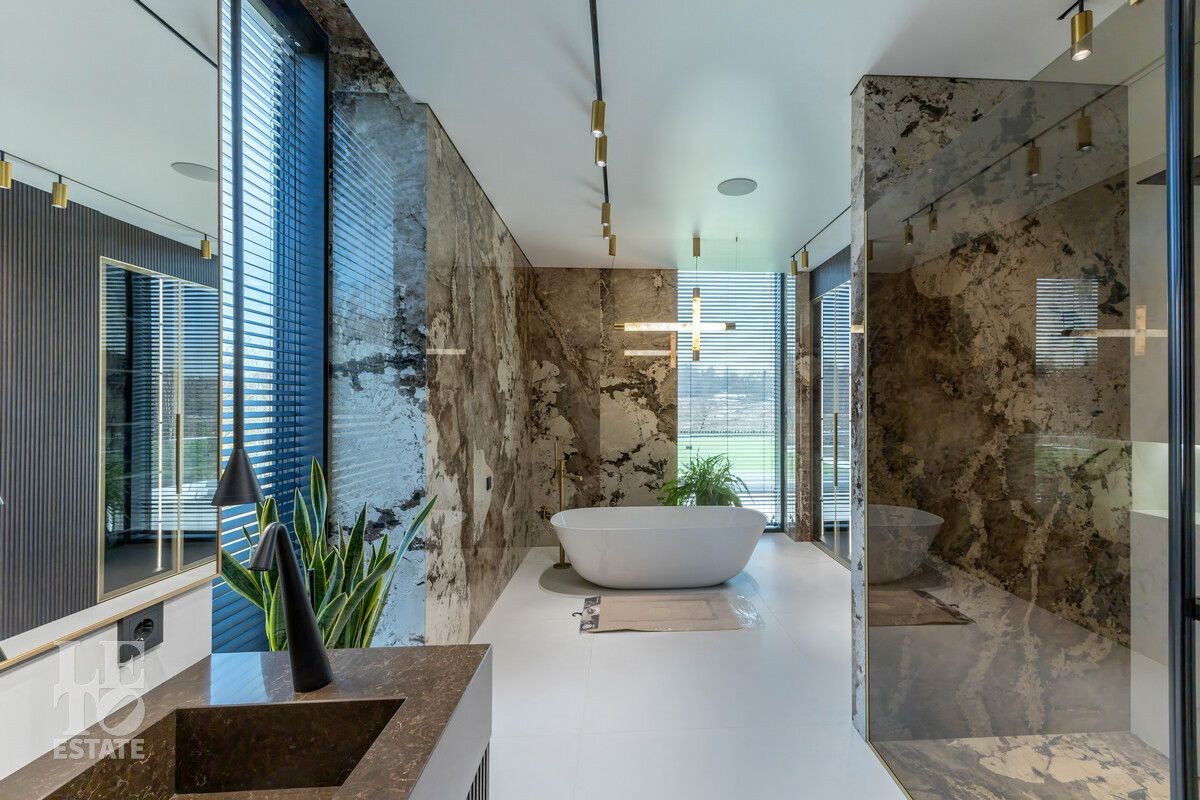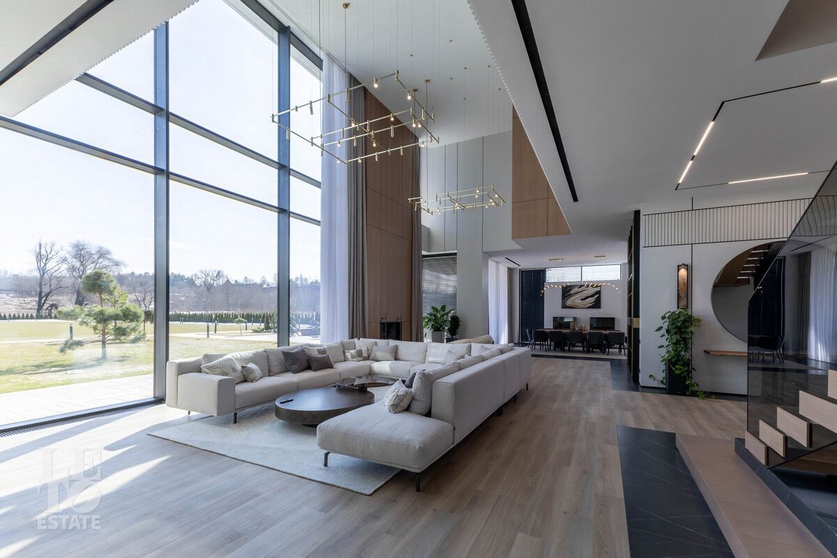 В доме выполнена отделка по индивидуальному проекту в современном стиле с использованием дорогих, качественных материалов. Благодаря высоким потолкам и панорамным окнам пространство наполнено воздухом и светом. Эксклюзивные дизайнерские решения придают уникальность внутреннему пространству дома. Это изысканный особняк, где роскошь царствует в каждой детали, а максимальный комфорт становится вашим постоянным спутником в этом великолепном доме. Все коммуникации - центральные: газоснабжение, электроснабжение, холодное водоснабжение, канализация.