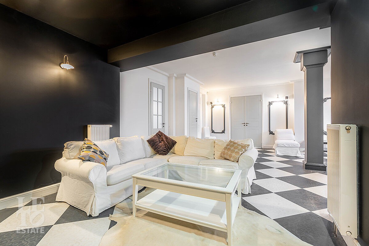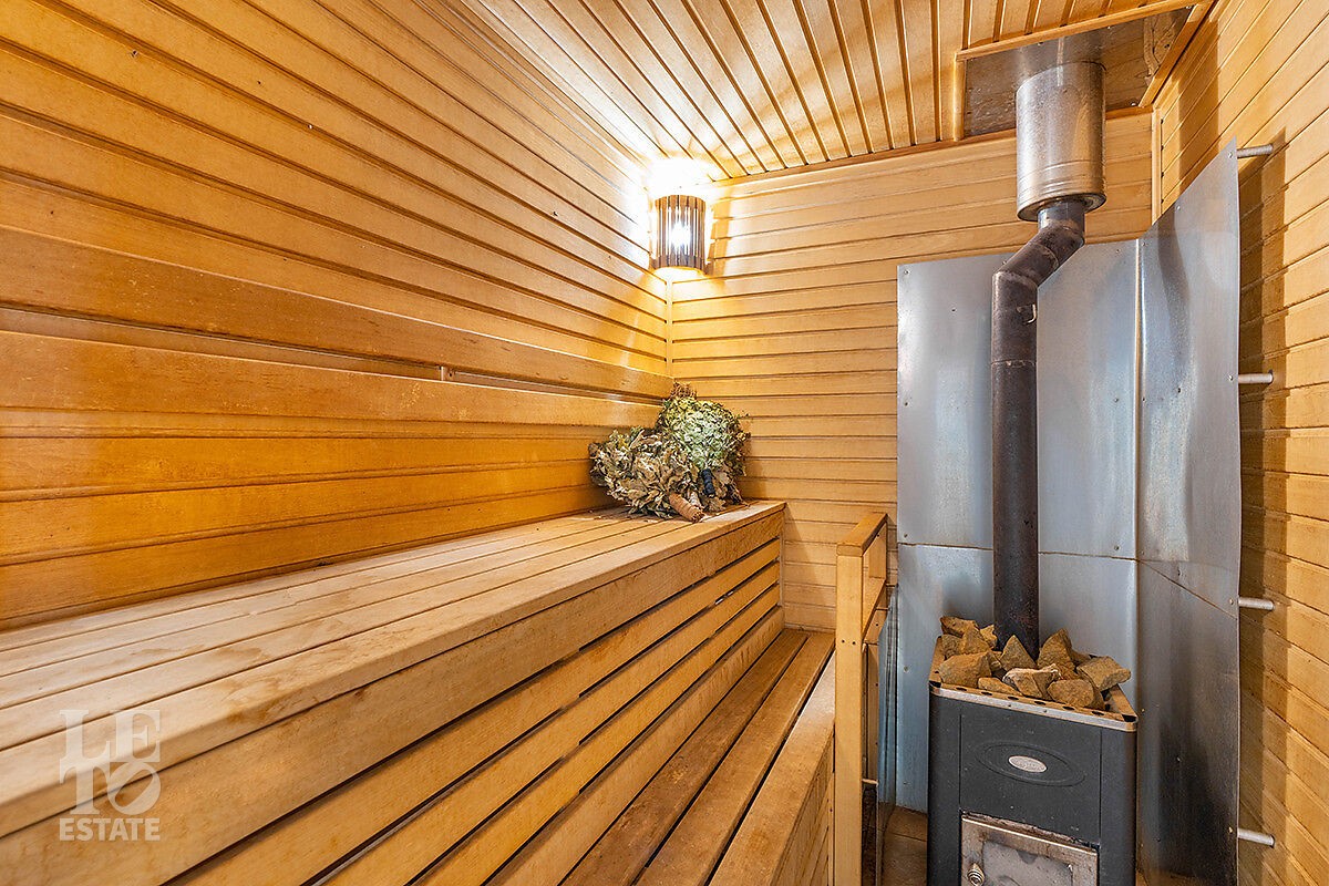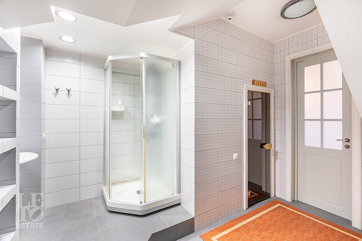 Цокольный этаж расположен под всей частью дома и включает в себя комфортную зону отдыха с сауной и бильярдом, винную комнату, постирочную, комнату для персонала с собственным выходом на участок, котельную.