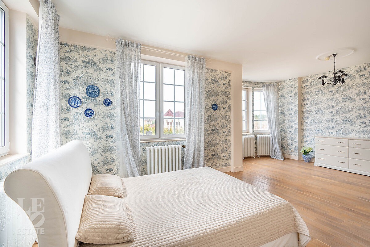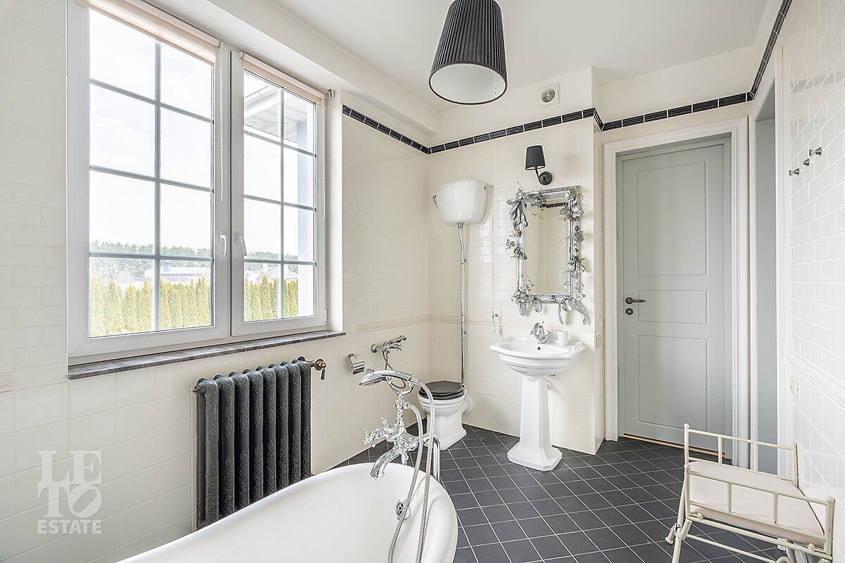 Второй этаж: мастер-спальня со своим санузлом (с джакузи) и гардеробной, две спальни с санузлом с ванной;