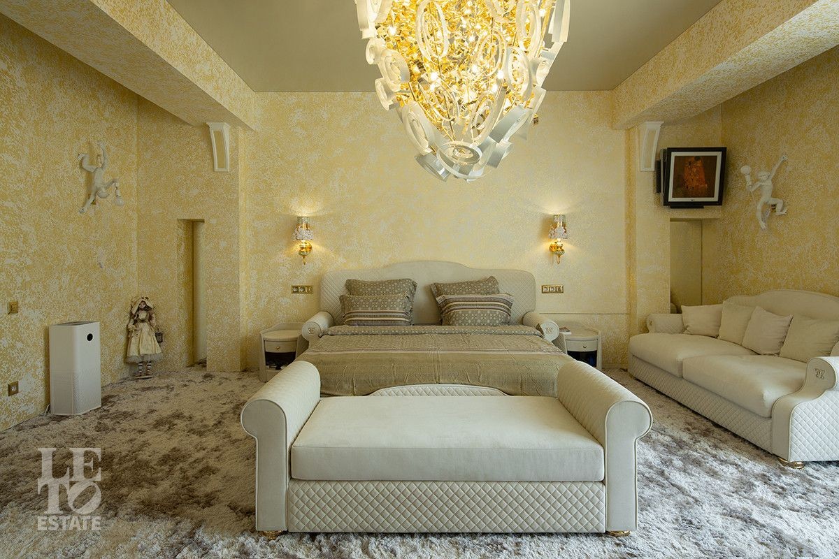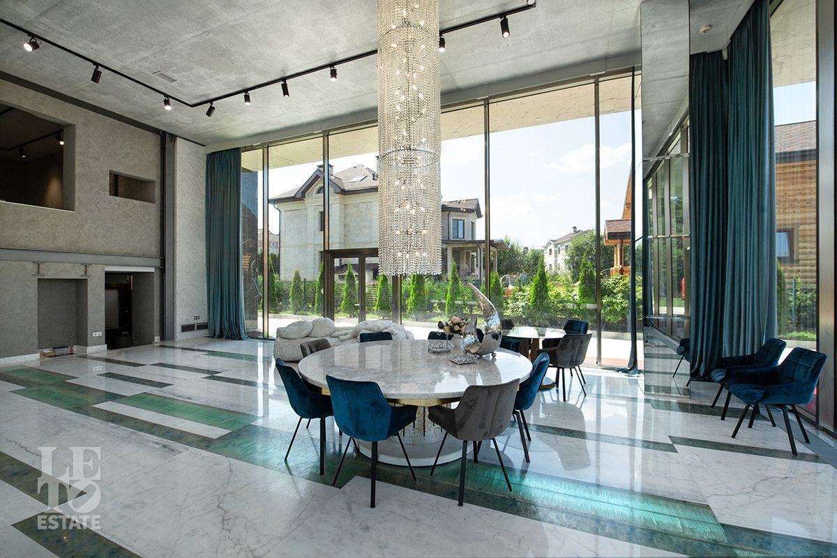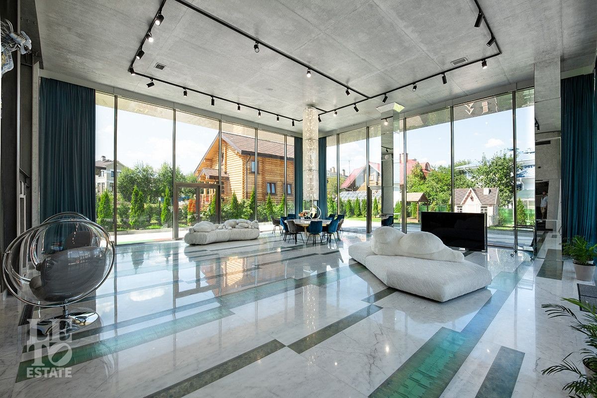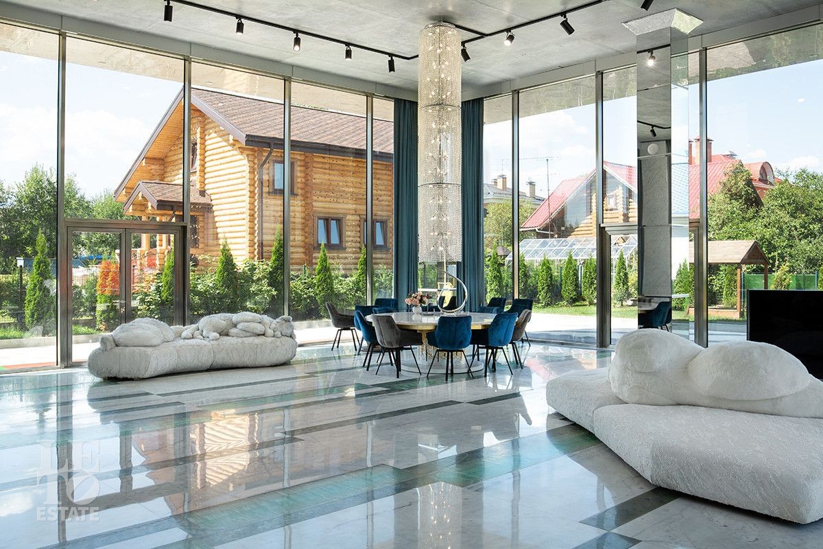 Дом расположен на первой береговой линии поселка. Из большинства помещений дома и с участка открывается великолепный вид на Пестовское водохранилище. Дом разработан и построен по авторскому проекту, в современном архитектурном стиле, с эксплуатируемой кровлей и панорамным остеклением. При строительстве и отделке дома использованы только самые лучшие и дорогостоящие материалы. Все каменные полы в доме выполнены из мрамора и имеют водяной подогрев. В гостиной в пол встроена подсветка, выполненная из хрусталя, залитого оргстеклом, в стены встроены элементы из оникса. Отделка всех спален в доме выполнена в стилистике разных городов и стран. Дом полностью меблирован и укомплектован всей необходимой мебелью и бытовой техникой, от лучших мировых производителей. Шторы в доме, а также окна на втором этаже открываются при помощи электропривода. В доме установлена приточно-вытяжная система вентиляции(цокольный и первый этажи), и сплит система на втором этаже, с возможностью установки необходимой температуры в каждой комнате. Установлено видеонаблюдение. На участке выполнен ландшафтный дизайн, дорожки вымощены тротуарной плиткой. Помимо основного дома, на участке построен отдельно стоящий двухэтажный дом с котельной и техническими помещениями для хранения инвентаря и техники, с квартирой для персонала на втором этаже, полностью укомплектованной мебелью и бытовой техникой. Так же на участке построена беседка с печью для барбекю и детская игровая зона.
