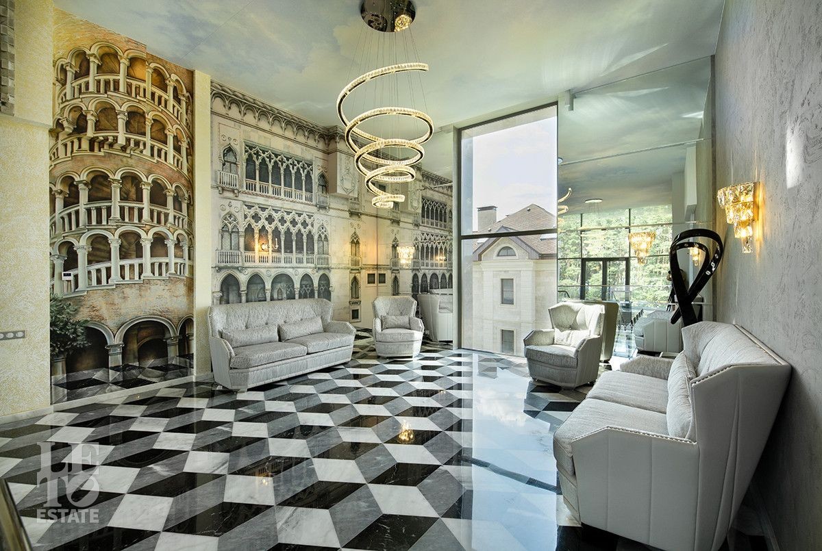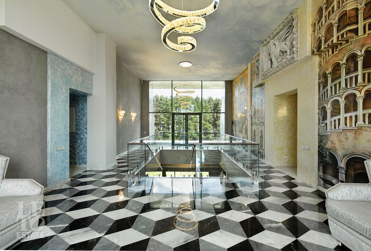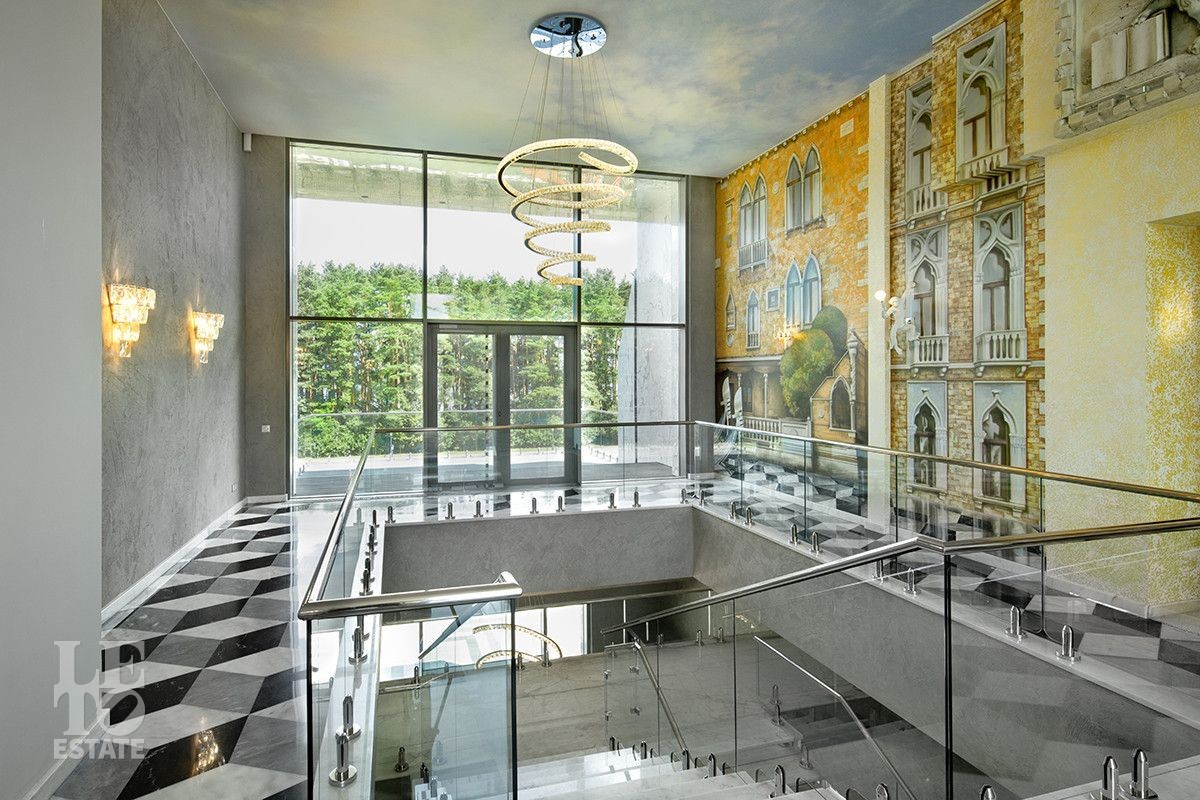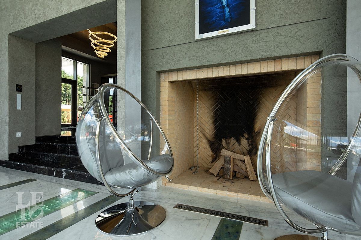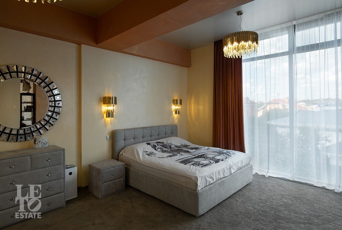 Дом расположен на первой береговой линии поселка. Из большинства помещений дома и с участка открывается великолепный вид на Пестовское водохранилище. Дом разработан и построен по авторскому проекту, в современном архитектурном стиле, с эксплуатируемой кровлей и панорамным остеклением. При строительстве и отделке дома использованы только самые лучшие и дорогостоящие материалы. Все каменные полы в доме выполнены из мрамора и имеют водяной подогрев. В гостиной в пол встроена подсветка, выполненная из хрусталя, залитого оргстеклом, в стены встроены элементы из оникса. Отделка всех спален в доме выполнена в стилистике разных городов и стран. Дом полностью меблирован и укомплектован всей необходимой мебелью и бытовой техникой, от лучших мировых производителей. Шторы в доме, а также окна на втором этаже открываются при помощи электропривода. В доме установлена приточно-вытяжная система вентиляции(цокольный и первый этажи), и сплит система на втором этаже, с возможностью установки необходимой температуры в каждой комнате. Установлено видеонаблюдение. На участке выполнен ландшафтный дизайн, дорожки вымощены тротуарной плиткой. Помимо основного дома, на участке построен отдельно стоящий двухэтажный дом с котельной и техническими помещениями для хранения инвентаря и техники, с квартирой для персонала на втором этаже, полностью укомплектованной мебелью и бытовой техникой. Так же на участке построена беседка с печью для барбекю и детская игровая зона.