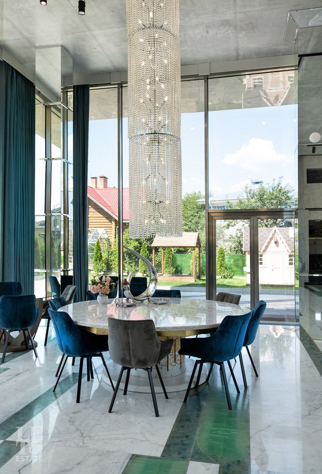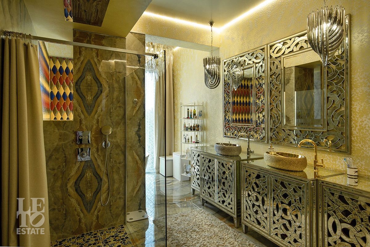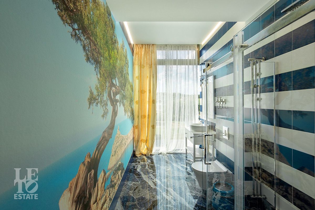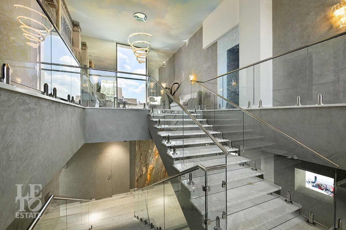 Дом расположен на первой береговой линии поселка. Из большинства помещений дома и с участка открывается великолепный вид на Пестовское водохранилище. Дом разработан и построен по авторскому проекту, в современном архитектурном стиле, с эксплуатируемой кровлей и панорамным остеклением. При строительстве и отделке дома использованы только самые лучшие и дорогостоящие материалы. Все каменные полы в доме выполнены из мрамора и имеют водяной подогрев. В гостиной в пол встроена подсветка, выполненная из хрусталя, залитого оргстеклом, в стены встроены элементы из оникса. Отделка всех спален в доме выполнена в стилистике разных городов и стран. Дом полностью меблирован и укомплектован всей необходимой мебелью и бытовой техникой, от лучших мировых производителей. Шторы в доме, а также окна на втором этаже открываются при помощи электропривода. В доме установлена приточно-вытяжная система вентиляции(цокольный и первый этажи), и сплит система на втором этаже, с возможностью установки необходимой температуры в каждой комнате. Установлено видеонаблюдение. На участке выполнен ландшафтный дизайн, дорожки вымощены тротуарной плиткой. Помимо основного дома, на участке построен отдельно стоящий двухэтажный дом с котельной и техническими помещениями для хранения инвентаря и техники, с квартирой для персонала на втором этаже, полностью укомплектованной мебелью и бытовой техникой. Так же на участке построена беседка с печью для барбекю и детская игровая зона.