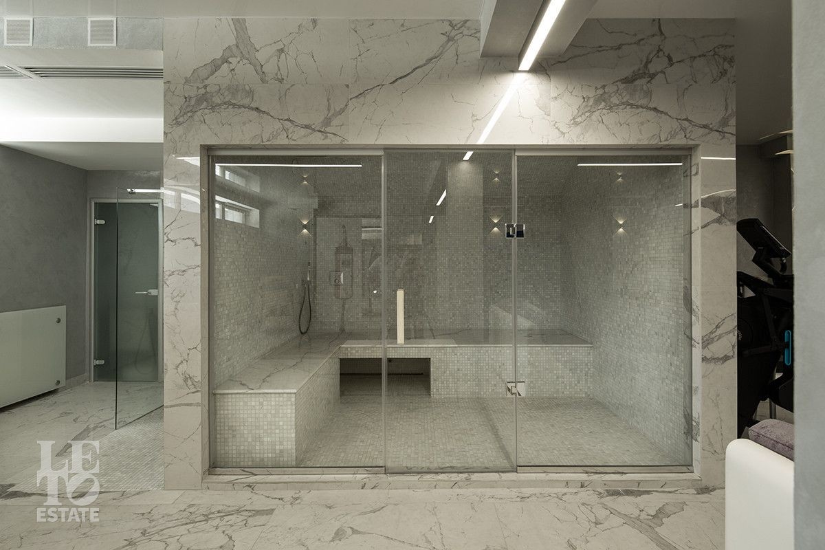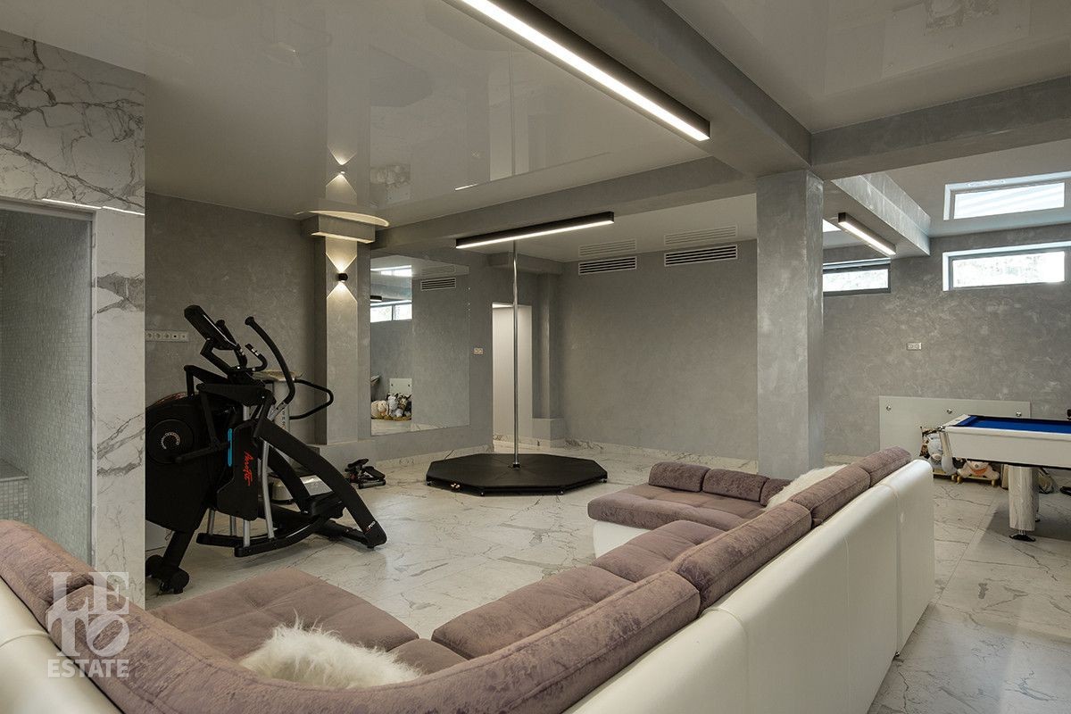 Цокольный этаж - тренажерный зал, хамам с системой подачи аромомасел, душевая, санузел, постирочная с установкой Asko, кладовая;