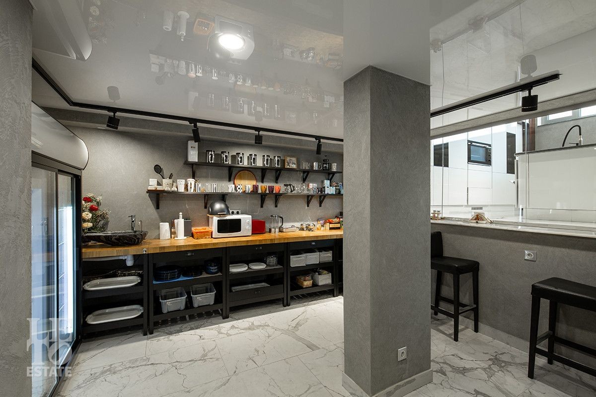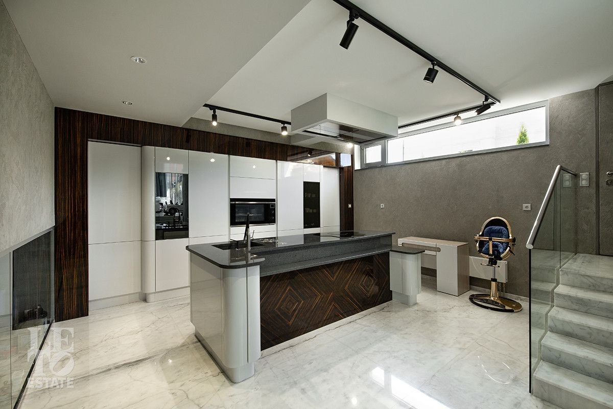Первый полуэтаж - двухуровневая кухня;