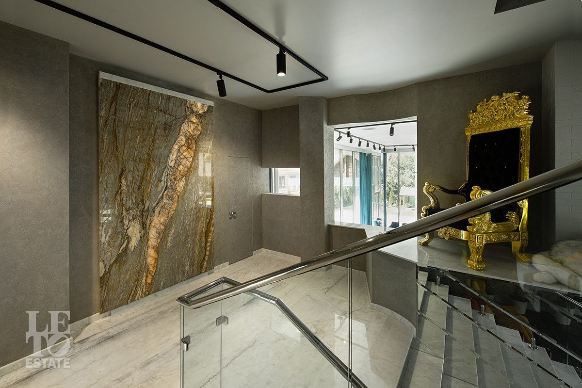 Второй этаж - холл с выходом на открытую террасу, мастер-спальня со своей ванной комнатой и гардеробной, спальня "Барселона" состоящая из рабочей и спальной частей со своим санузлом, спальня "Мексика" со своим санузлом, спальня "Крым" со своим санузлом, спальня "Париж" со своей ванной комнатой и гардеробной, спальня "Тайланд" со своим санузлом.