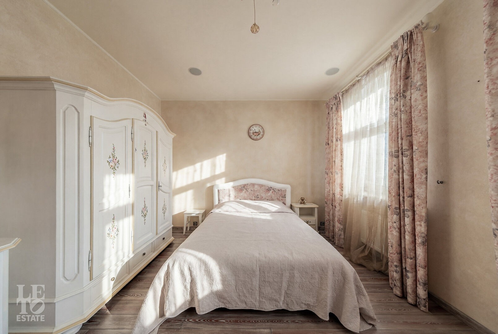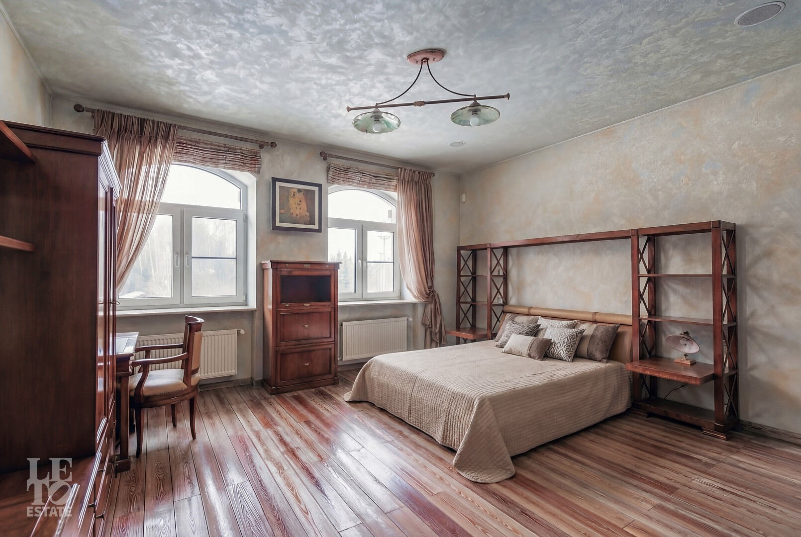Второй этаж: квартира для персонала, с кухней, санузлом и постирочной, три гостевые спальни с отдельным входом, два санузла, гостиная-библиотека.