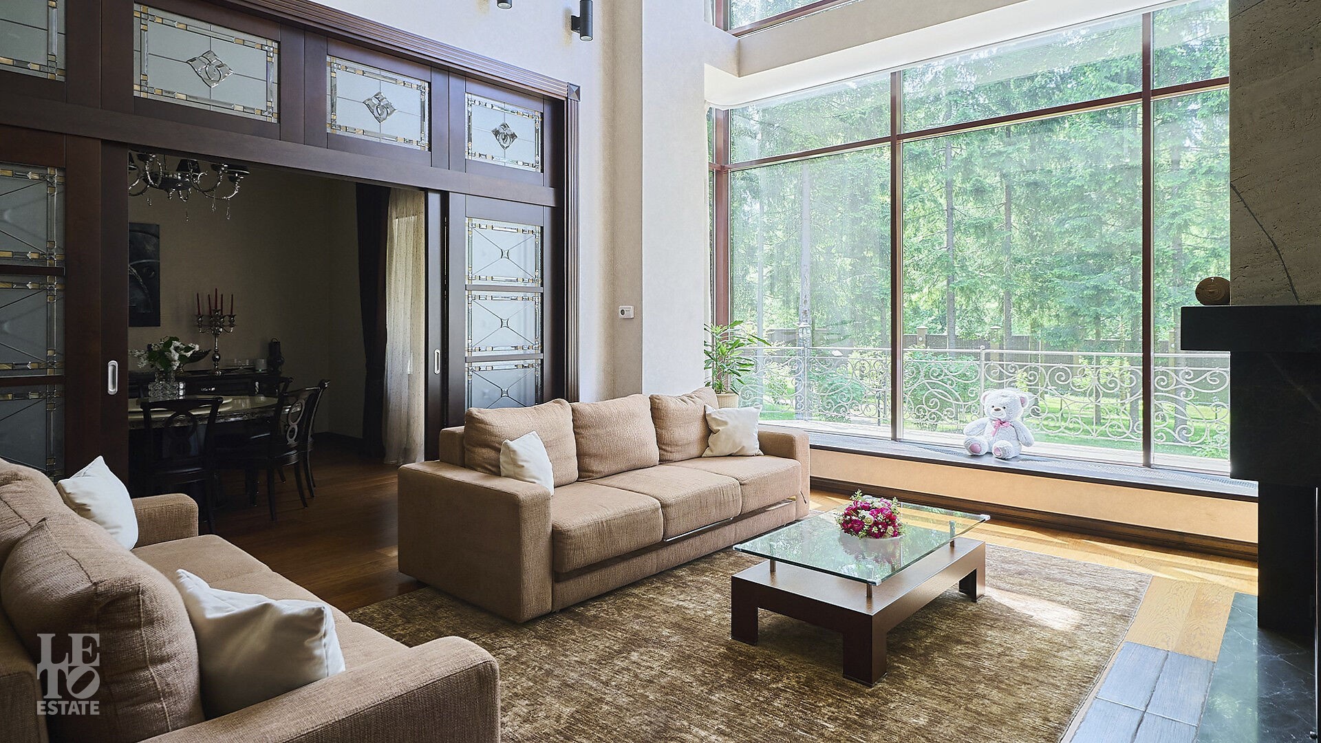 Загородный коттедж площадью 381 м² расположен на живописном участке 40 соток в окружении леса в коттеджном поселке Зеленая роща-1.