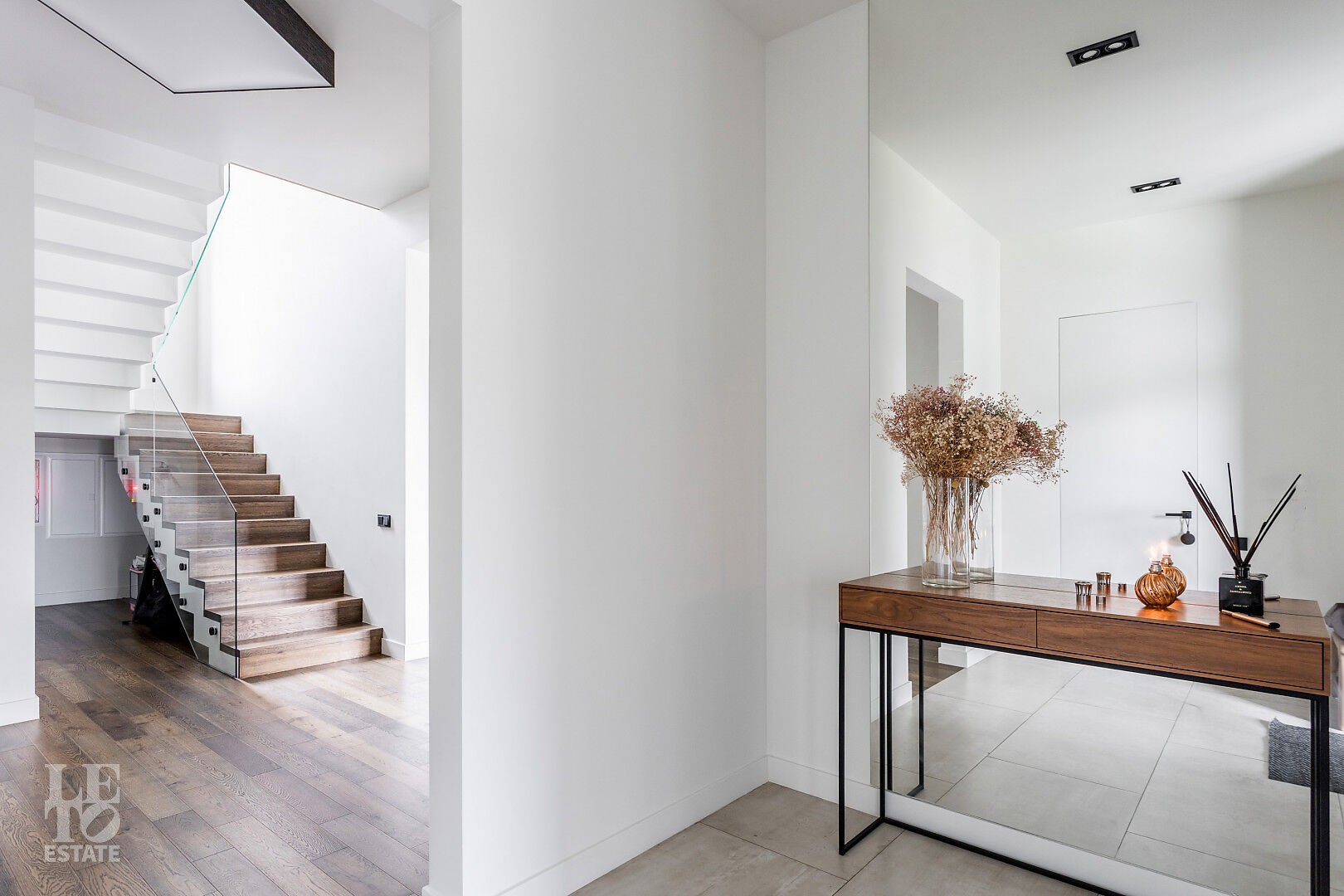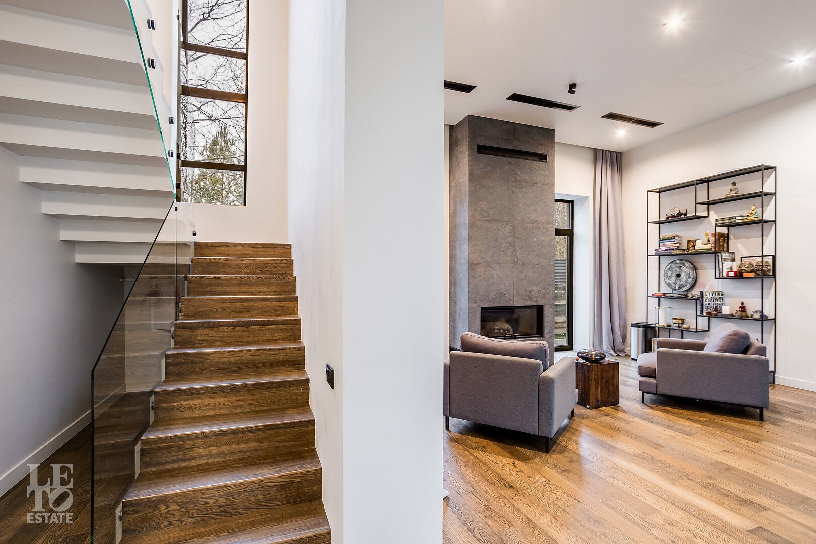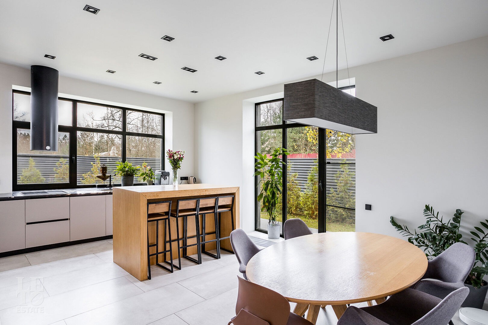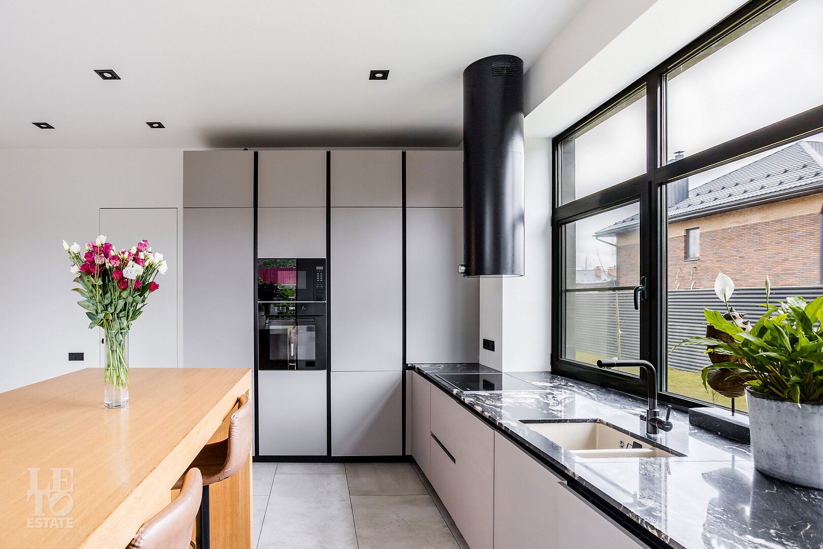 Дом построен из керамического блока Паротерм 51, во внутренней отделке использованы слэбы из натурального мрамора, крупноформатный керамогранит. Есть вся необходимая мебель и техника для постоянного проживания. Бытовая техника MIELE, кухня - Италия Cleaf Piombo.