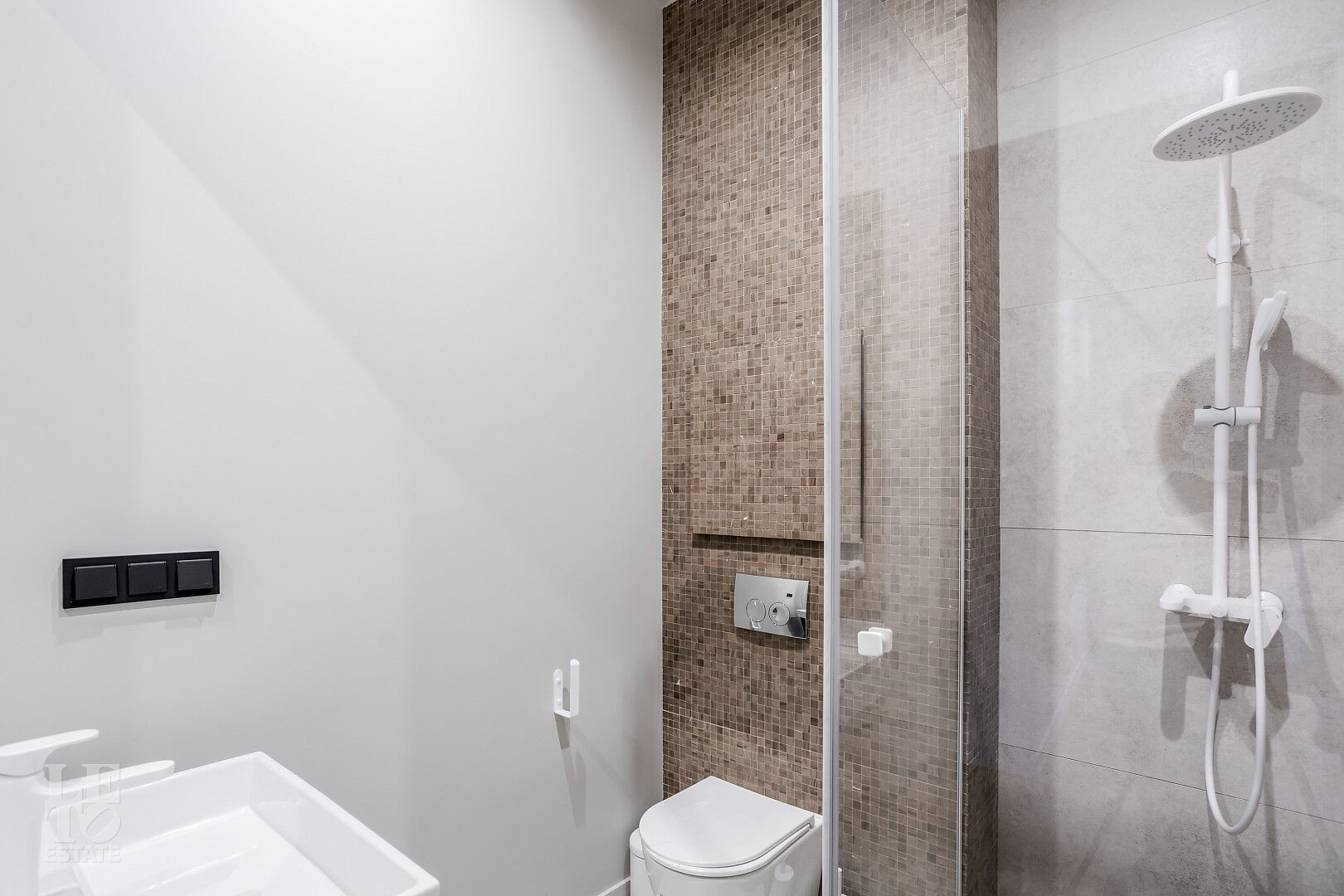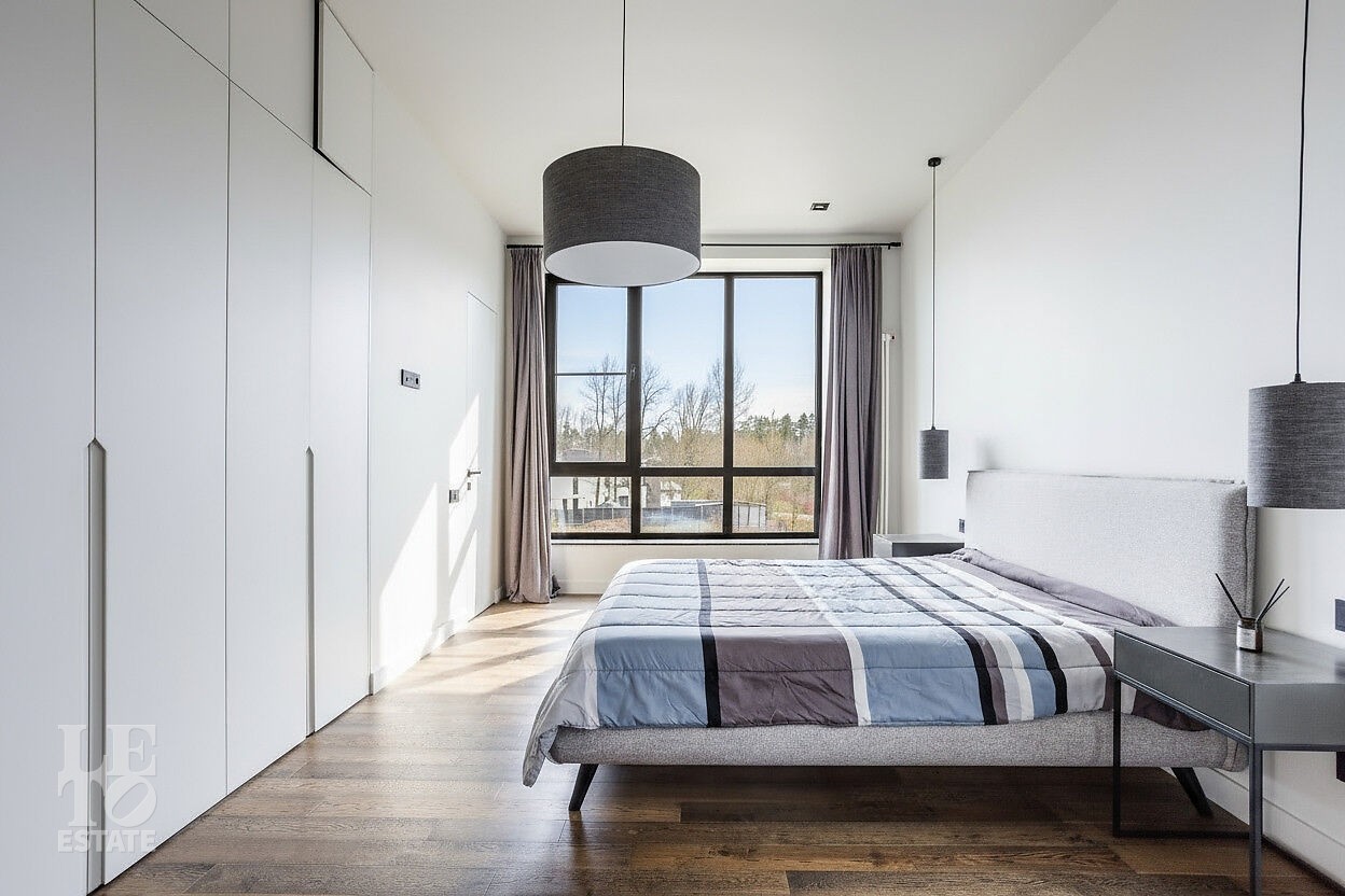 Первый этаж: прихожая, гардеробная/постирочная, котельная, гостевой санузел, хаммам с душевой, кухня - столовая с кладовым помещением, гостиная с камином, мастер-спальня с гардеробной и санузел с душевой и ванной, кабинет/спальня. Блок со своим входом: спальня, санузел с душевой и ванной, гостиная, кухня