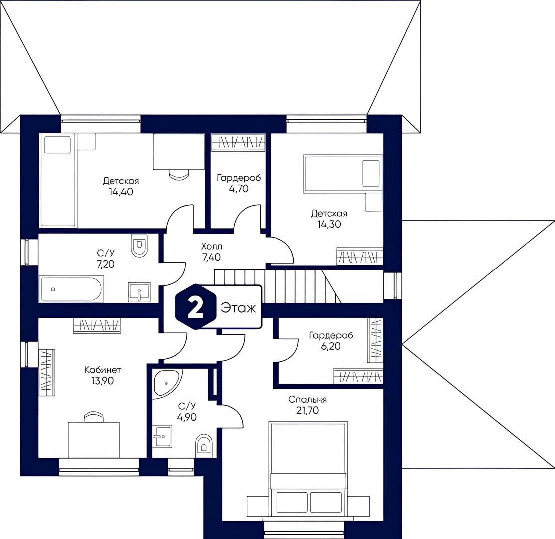Второй этаж: три комнаты, ванная комната, туалетная комната.