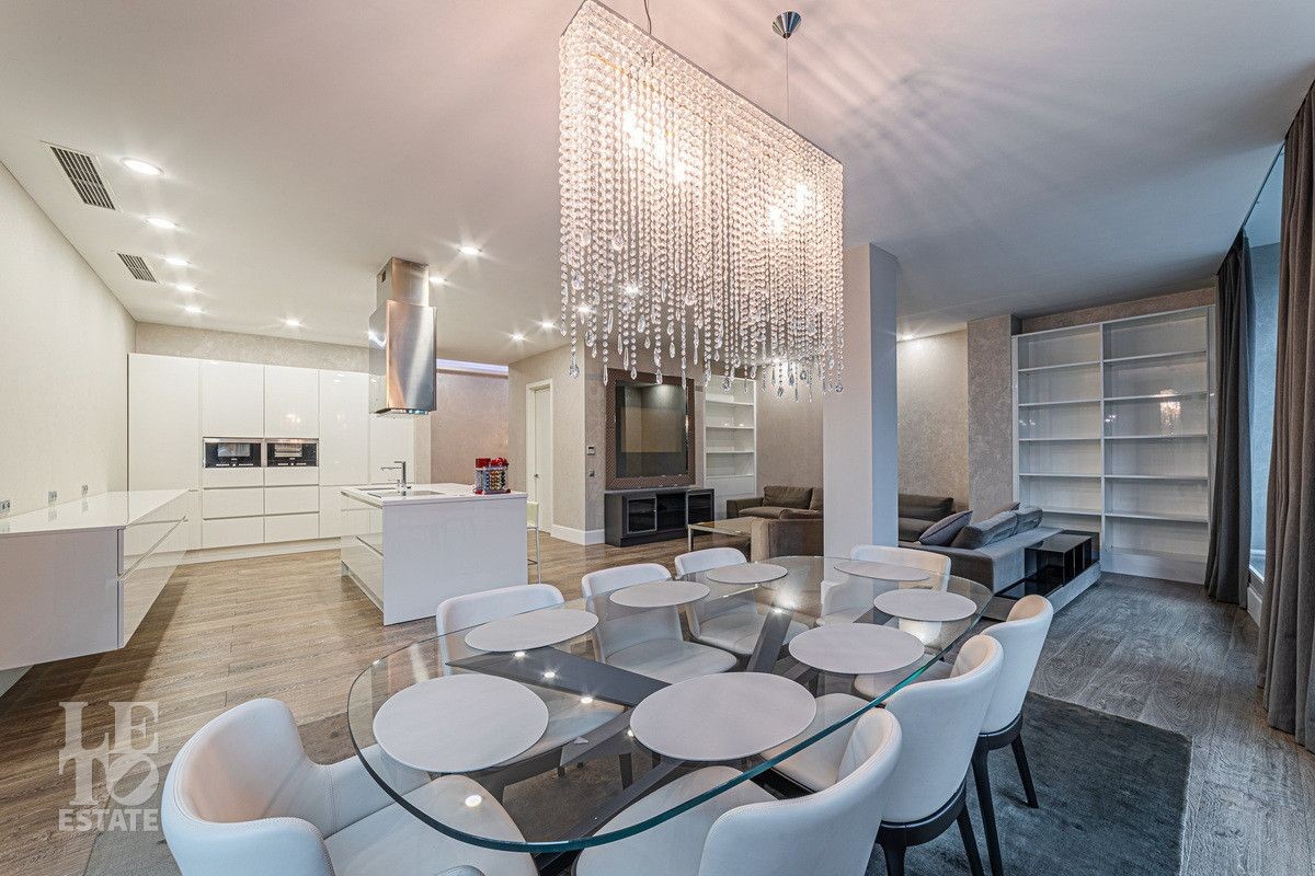 прихожая, спальня, постирочная, кухня - гостиная - столовая, две спальни с гардеробными, три санузла