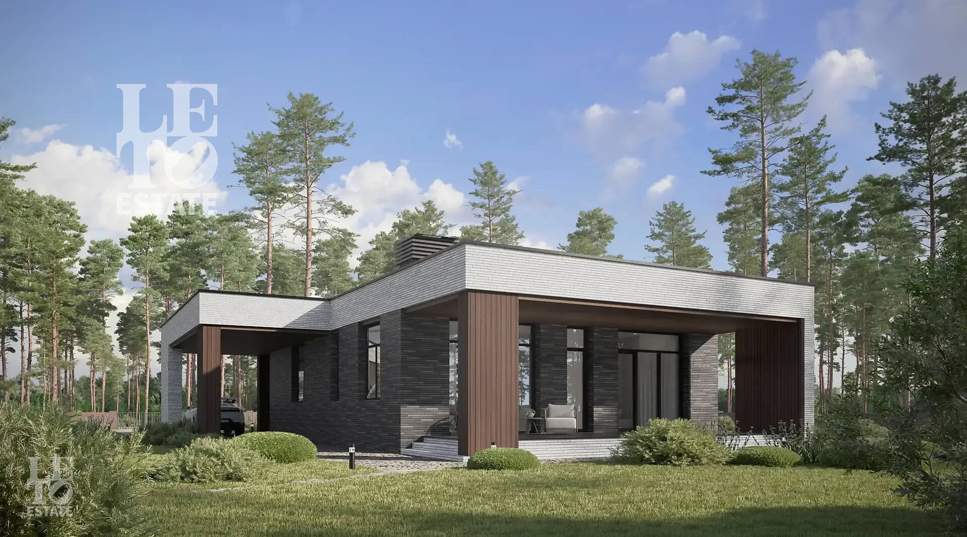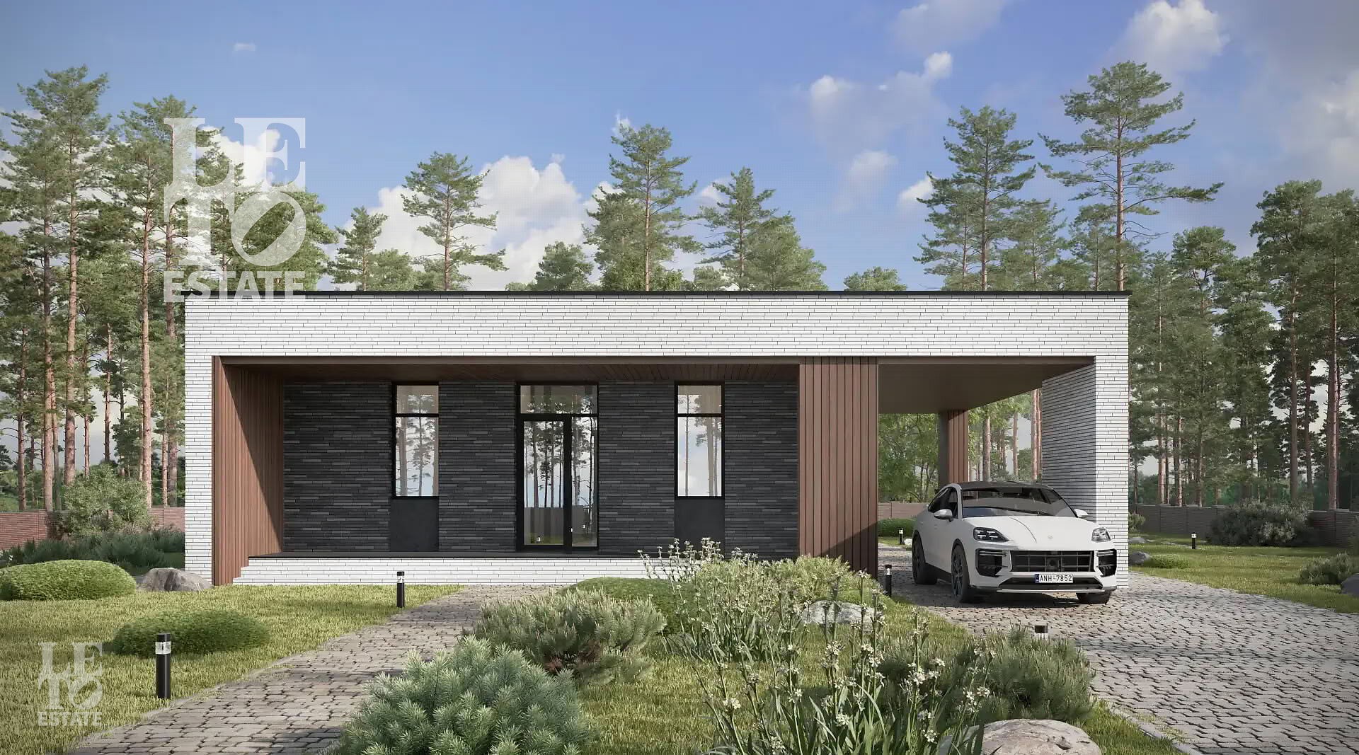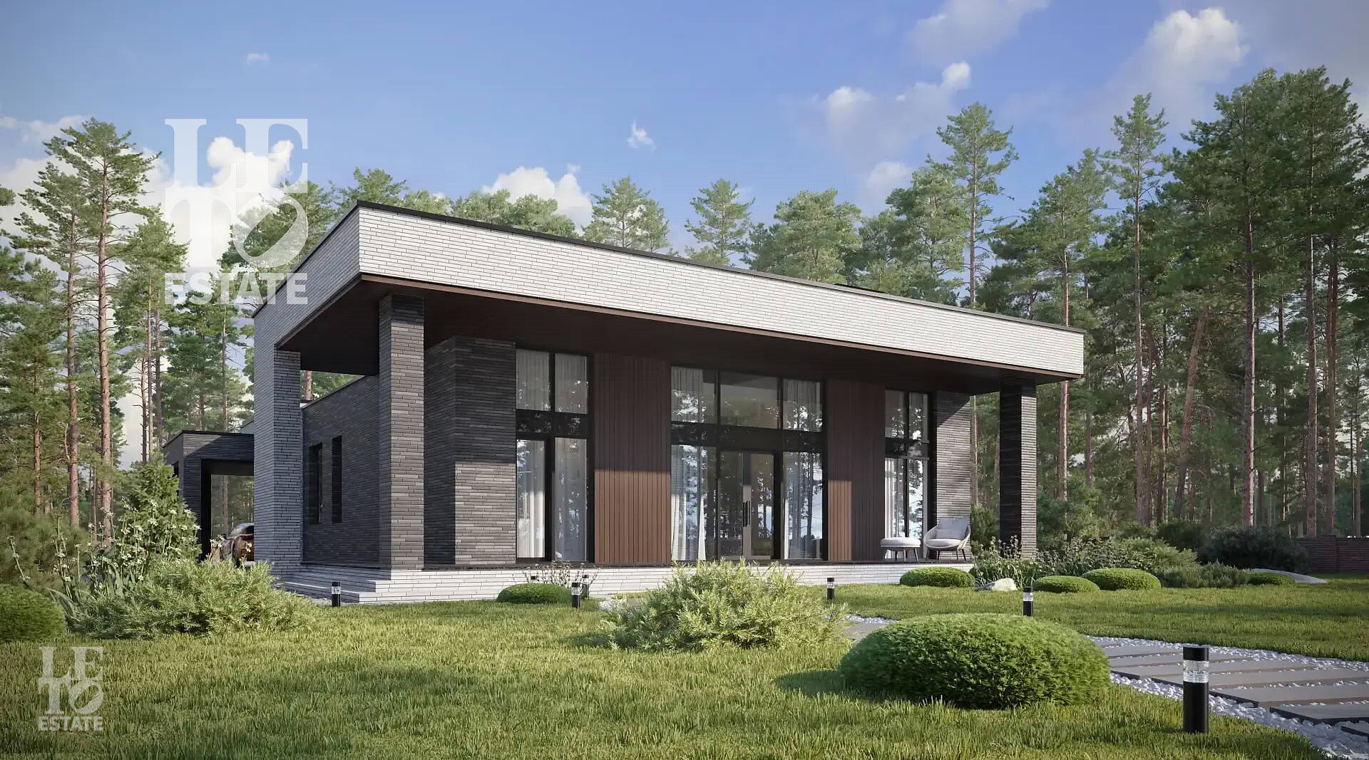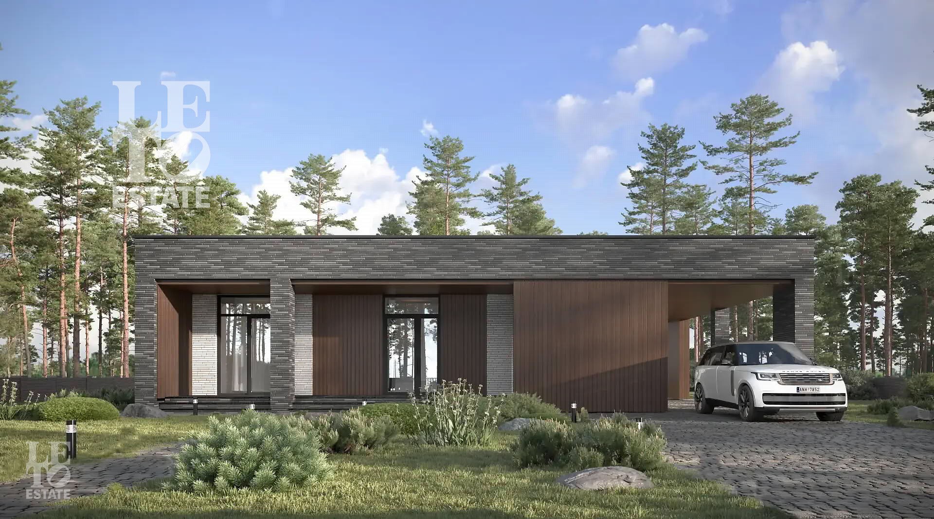 Одноэтажный дом в стиле хай-тек от 111 до 198 м² на участке от 8 до 50 соток в коттеджном поселке Зиккурат.