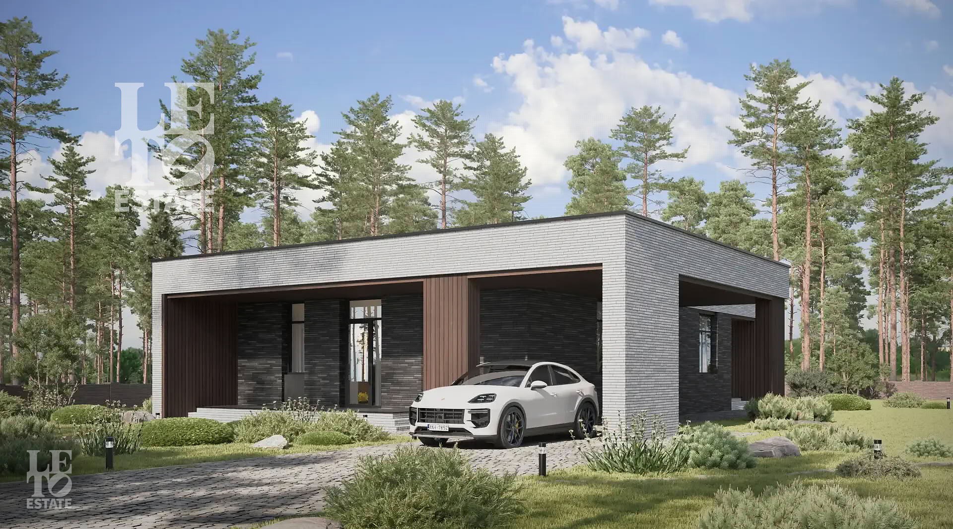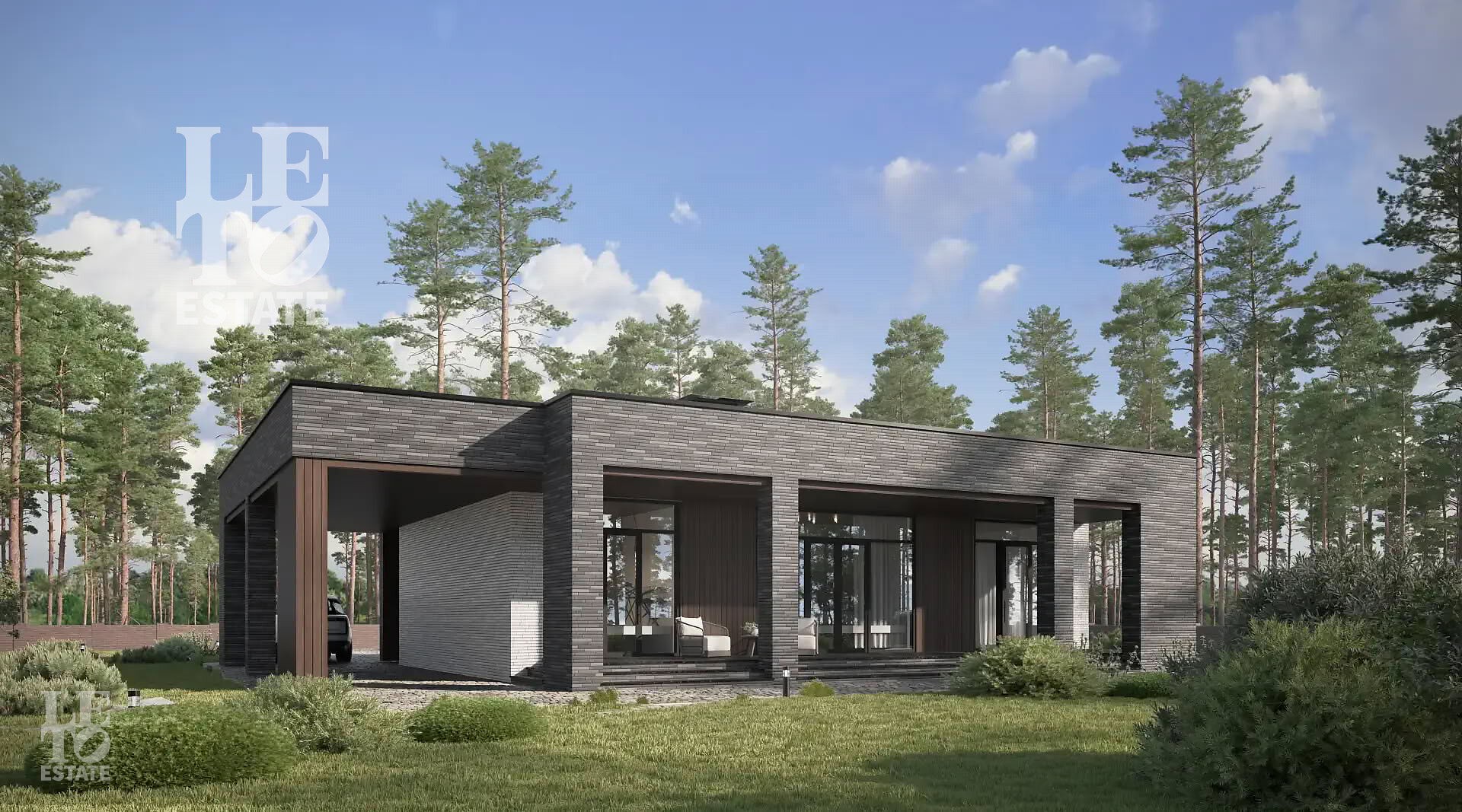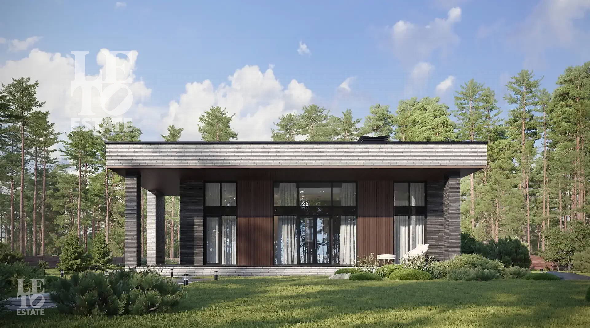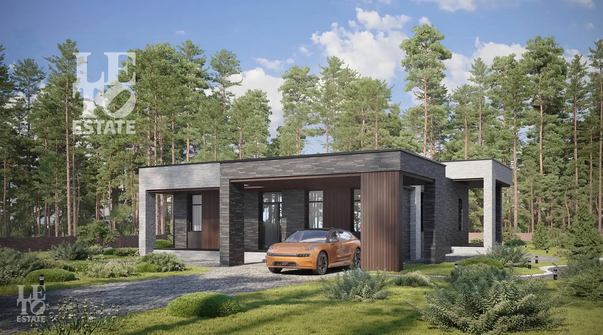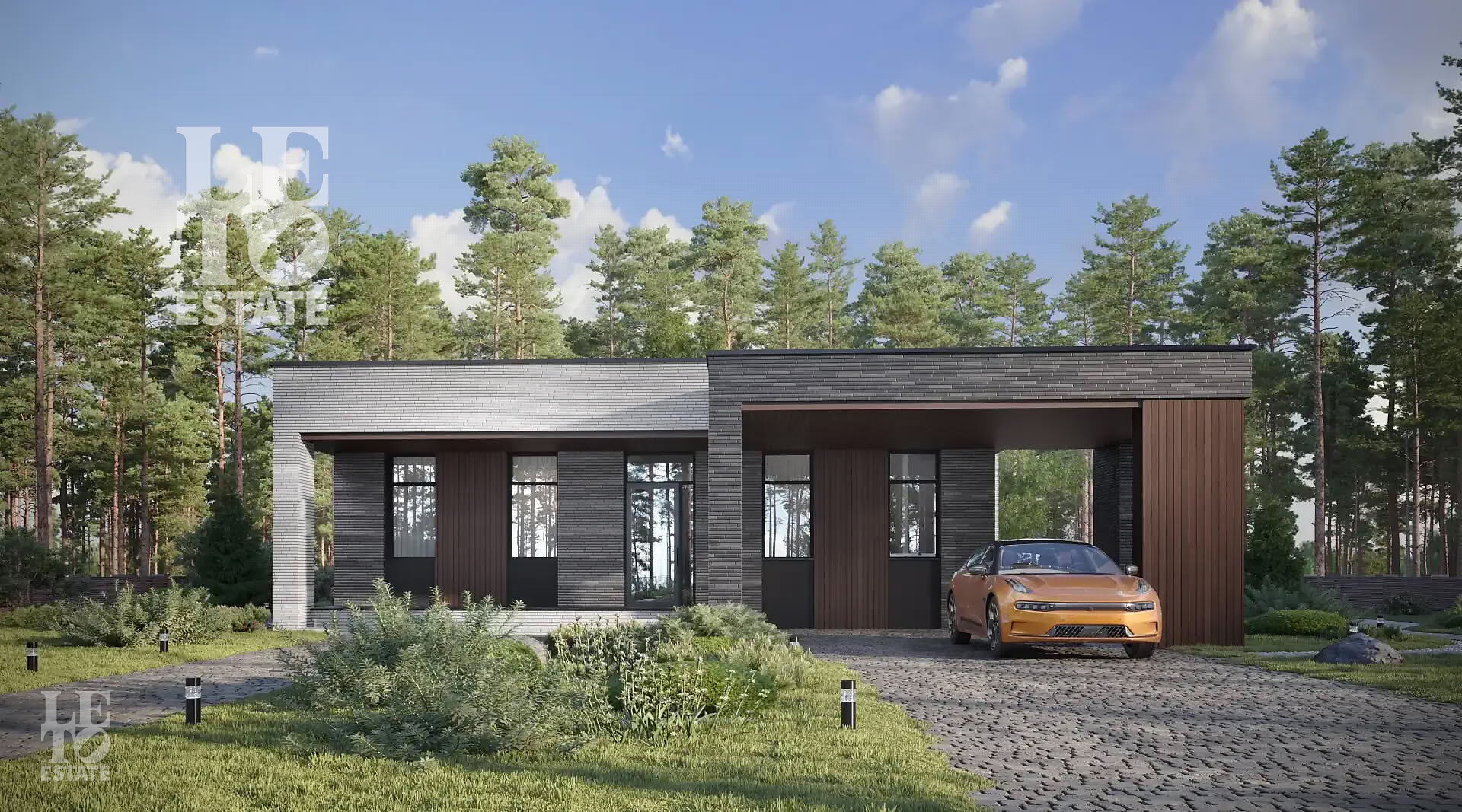 Одноэтажный дом в стиле хай-тек от 111 до 198 м² на участке от 8 до 50 соток в коттеджном поселке Зиккурат.