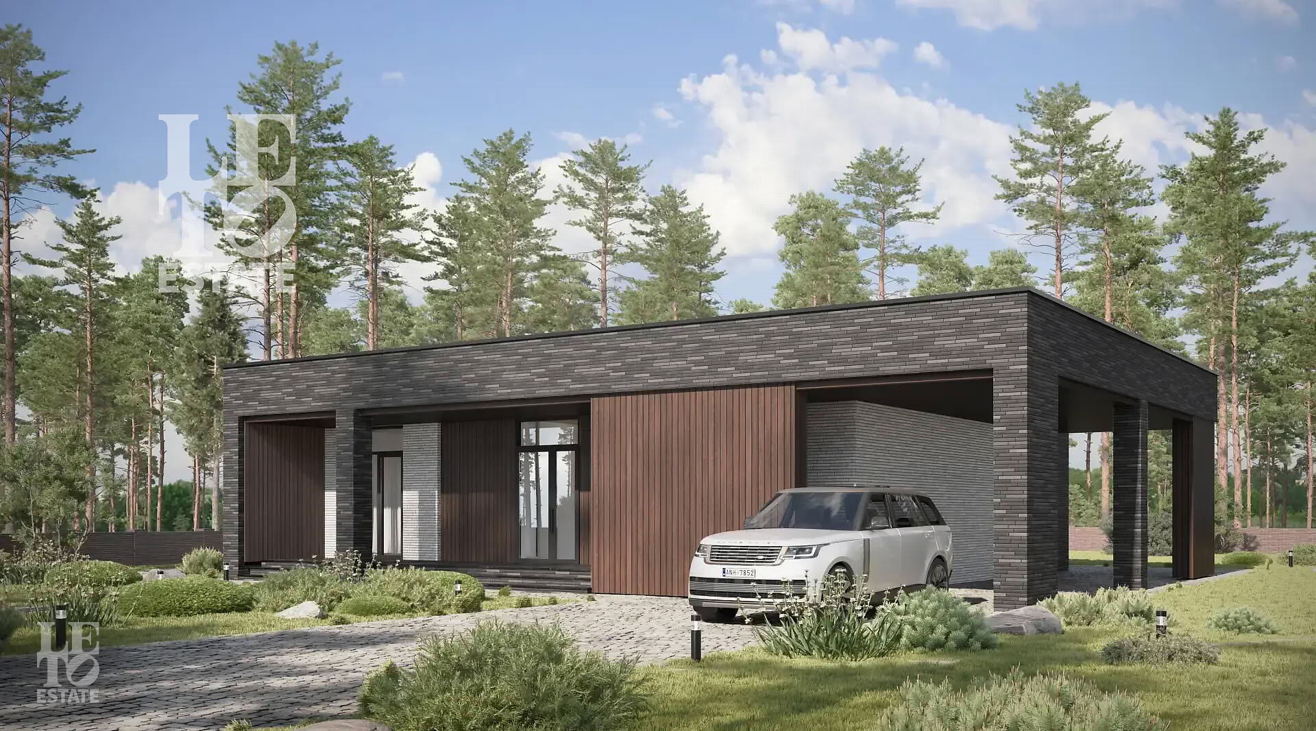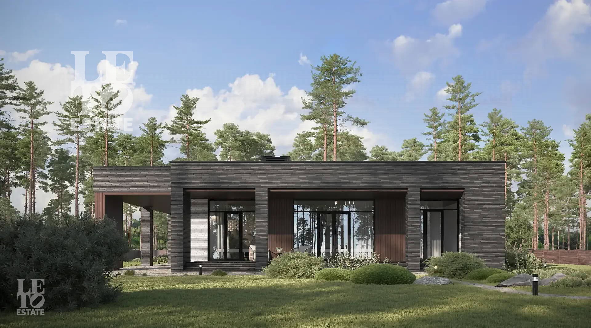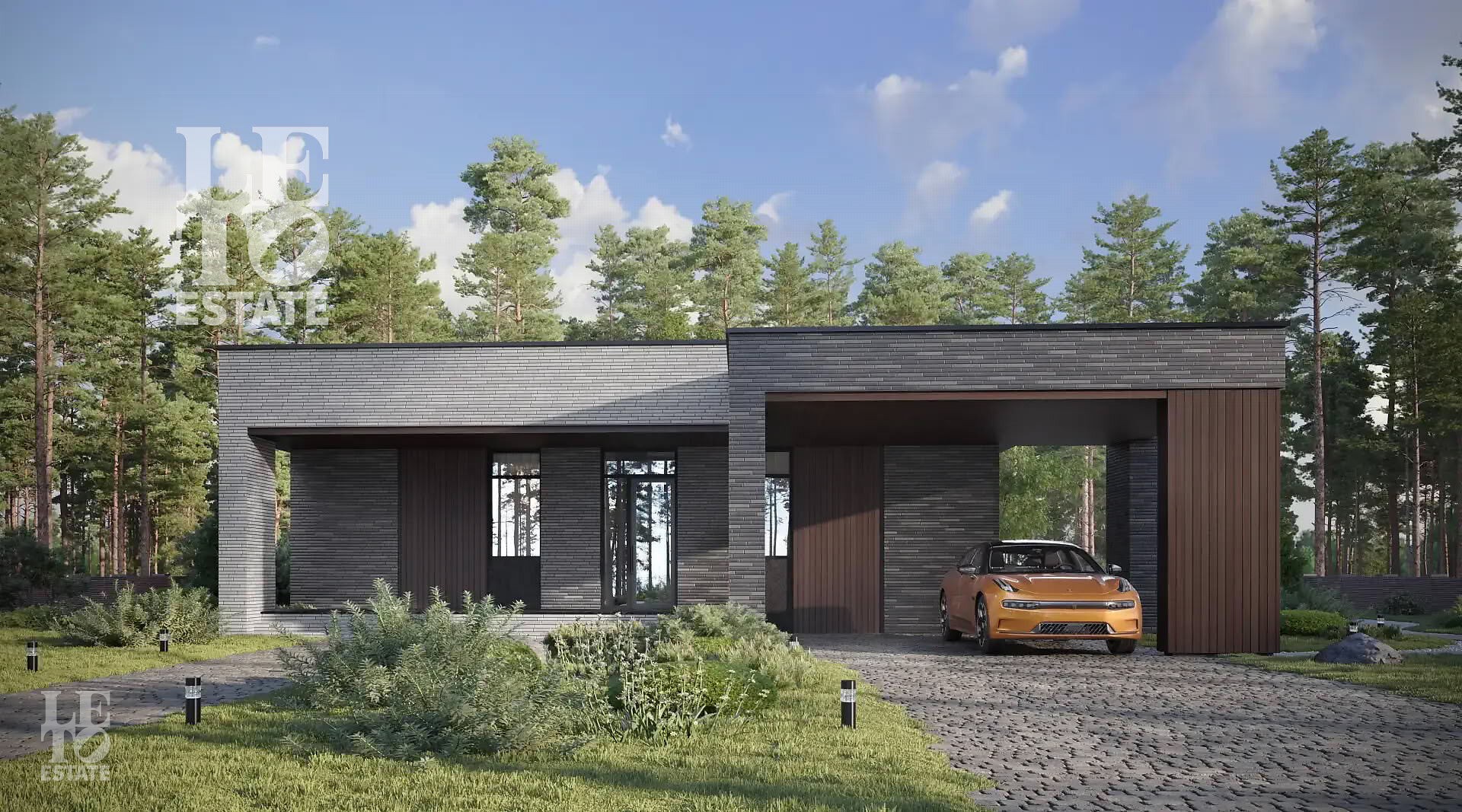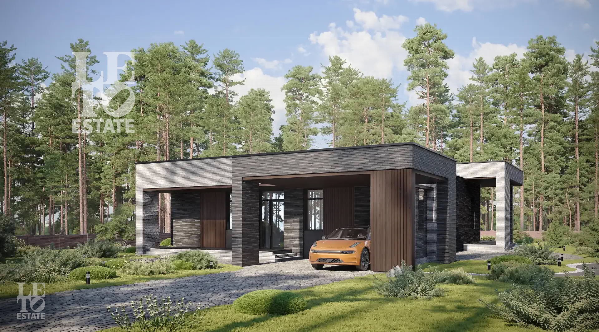 Одноэтажный дом в стиле хай-тек от 111 до 198 м² на участке от 8 до 50 соток в коттеджном поселке Зиккурат.