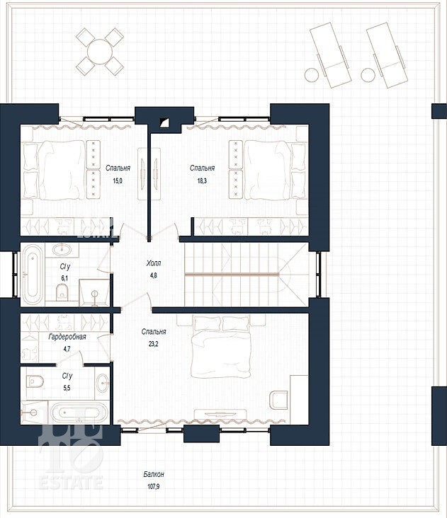 Резиденции в стиле Шале, Райт и Хай-Тек органично вписываются в окружающий ландшафт, а просторные террасы и панорамное остекление усиливают связь с естественной средой.