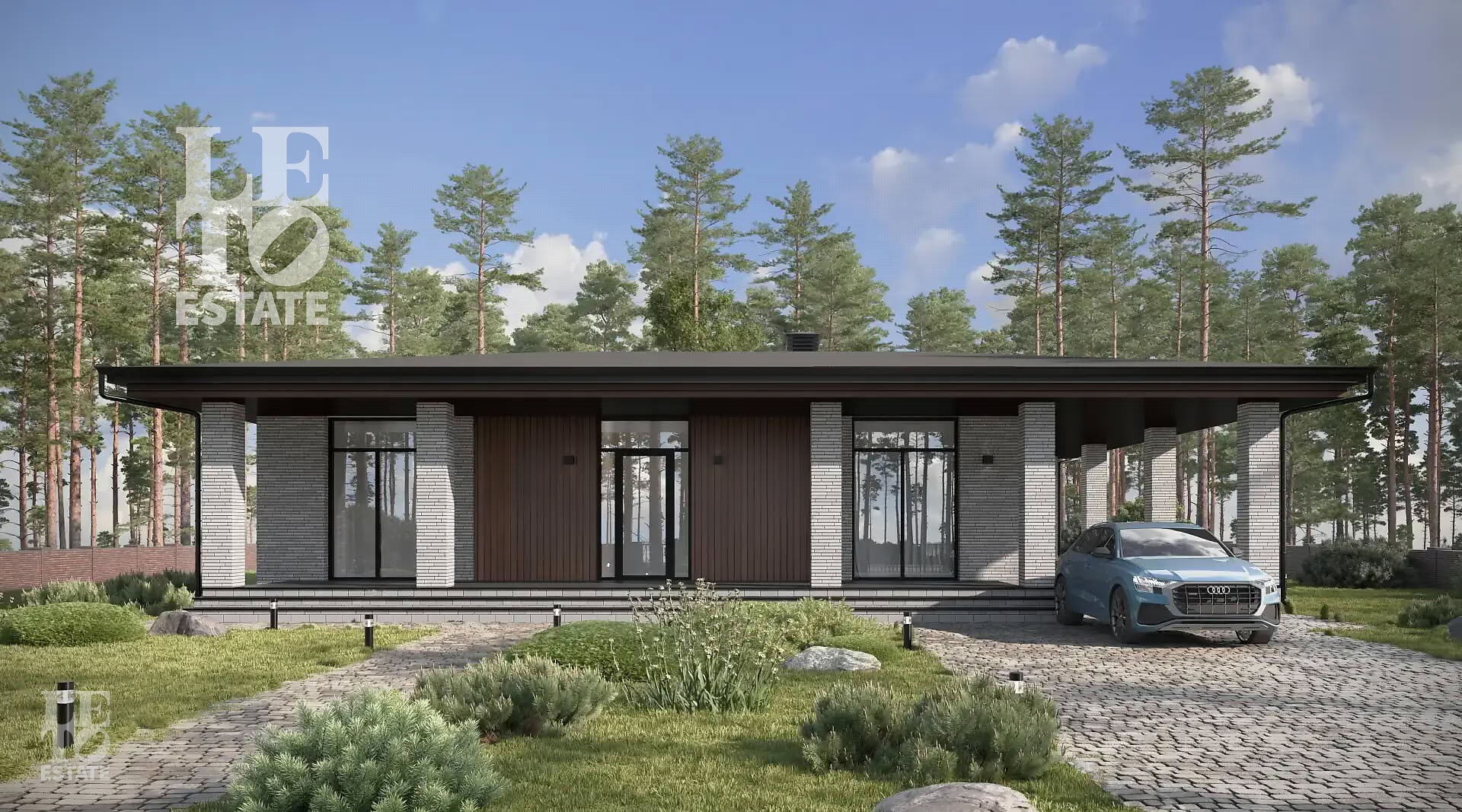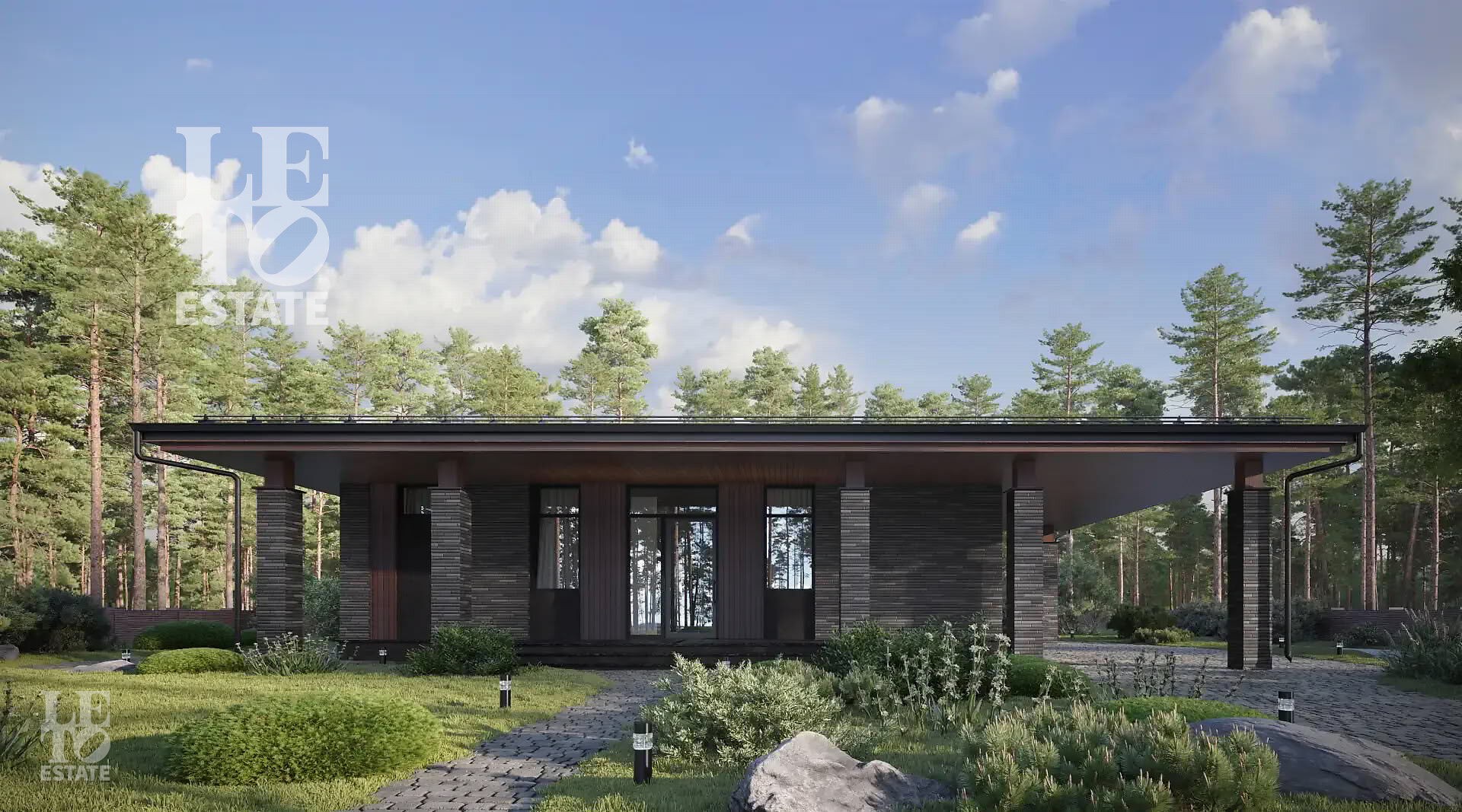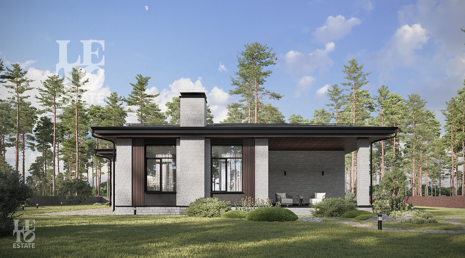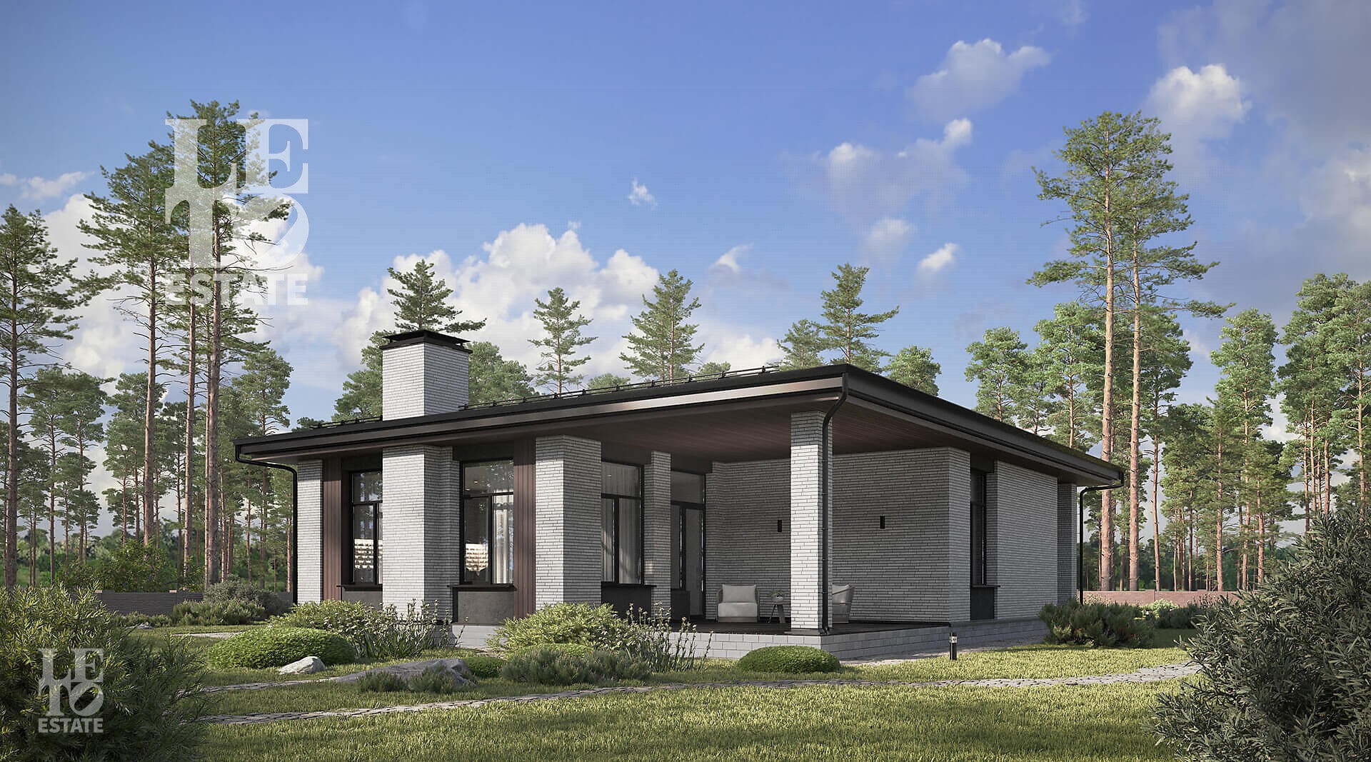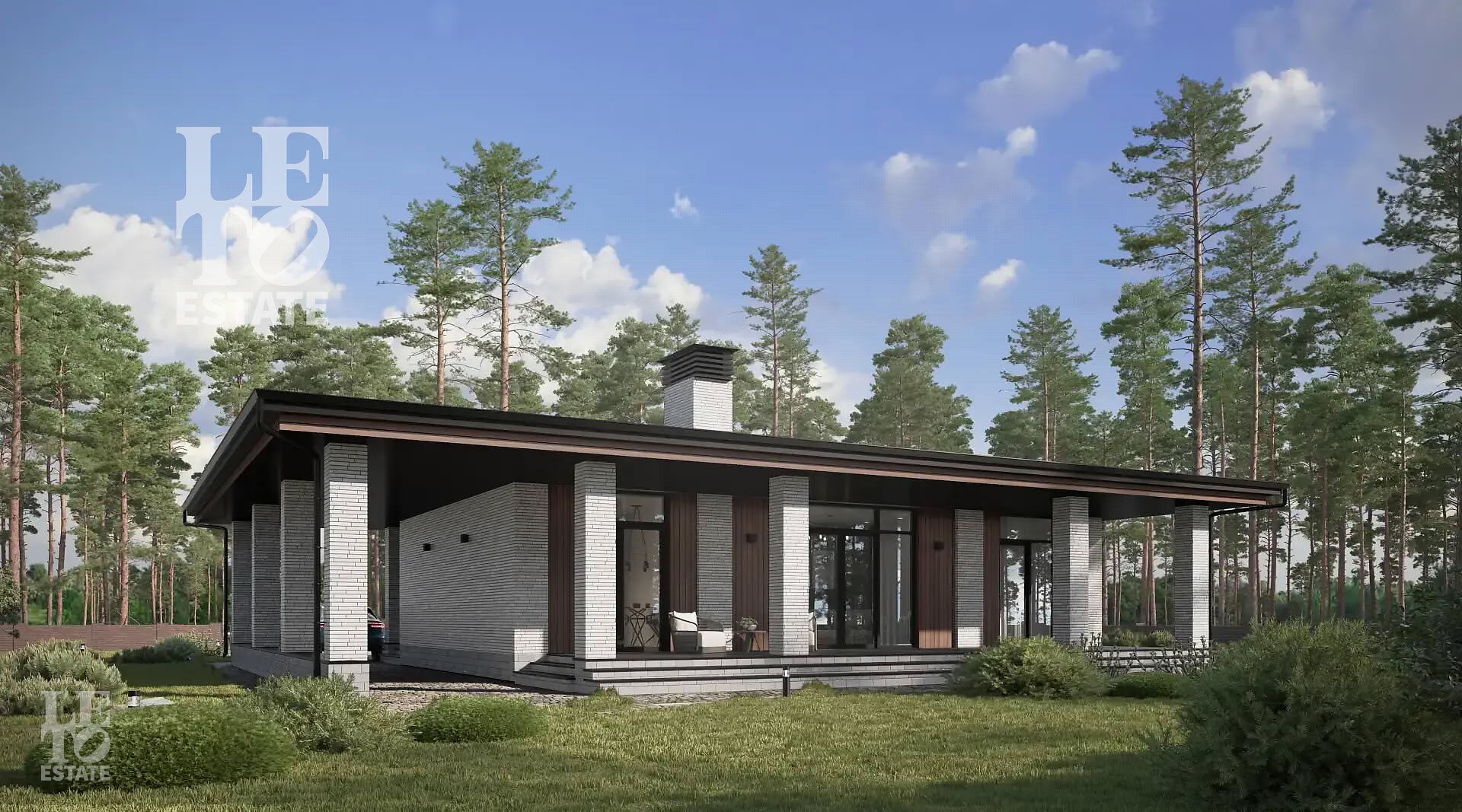 Одноэтажный дом в стиле райт от 105 до 198 м² на участке от 8 до 50 соток в коттеджном поселке Зиккурат.