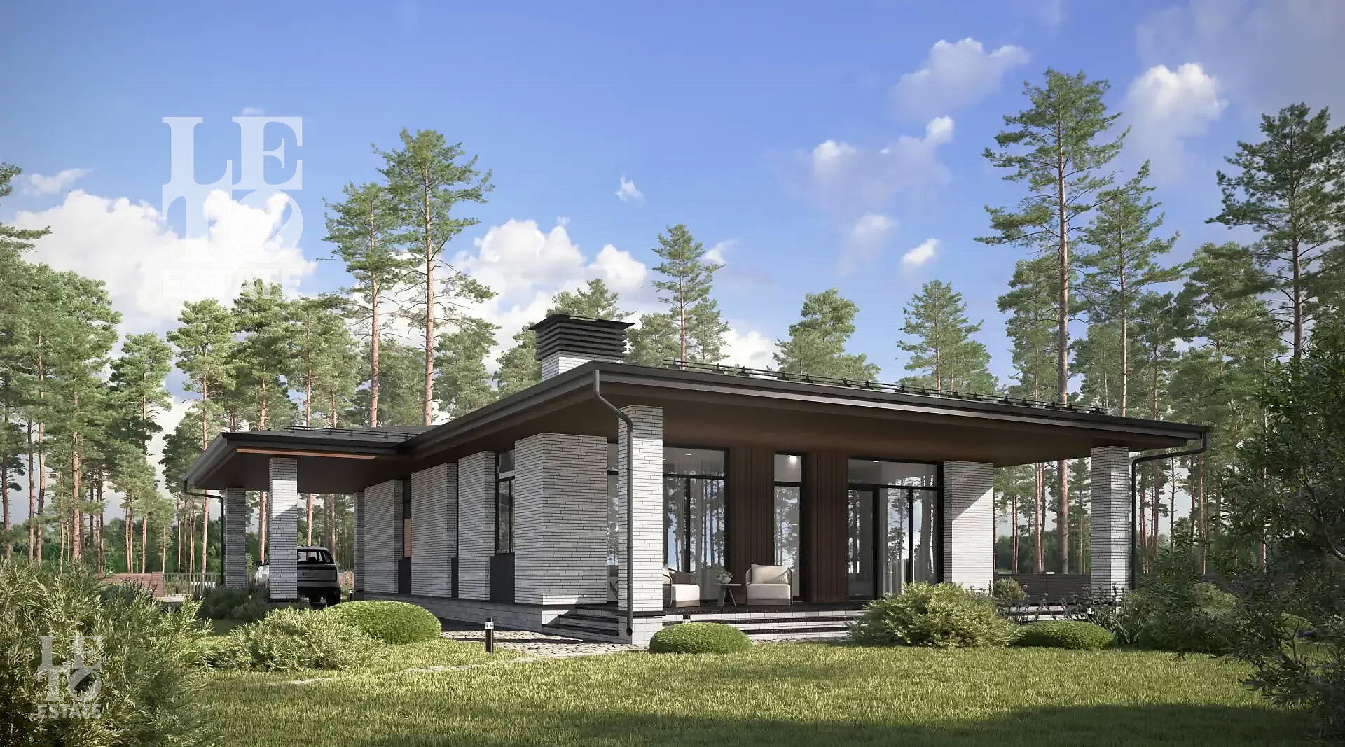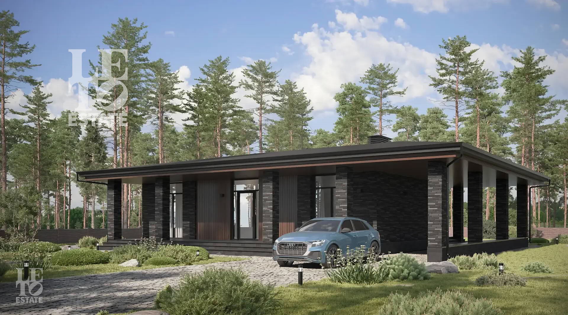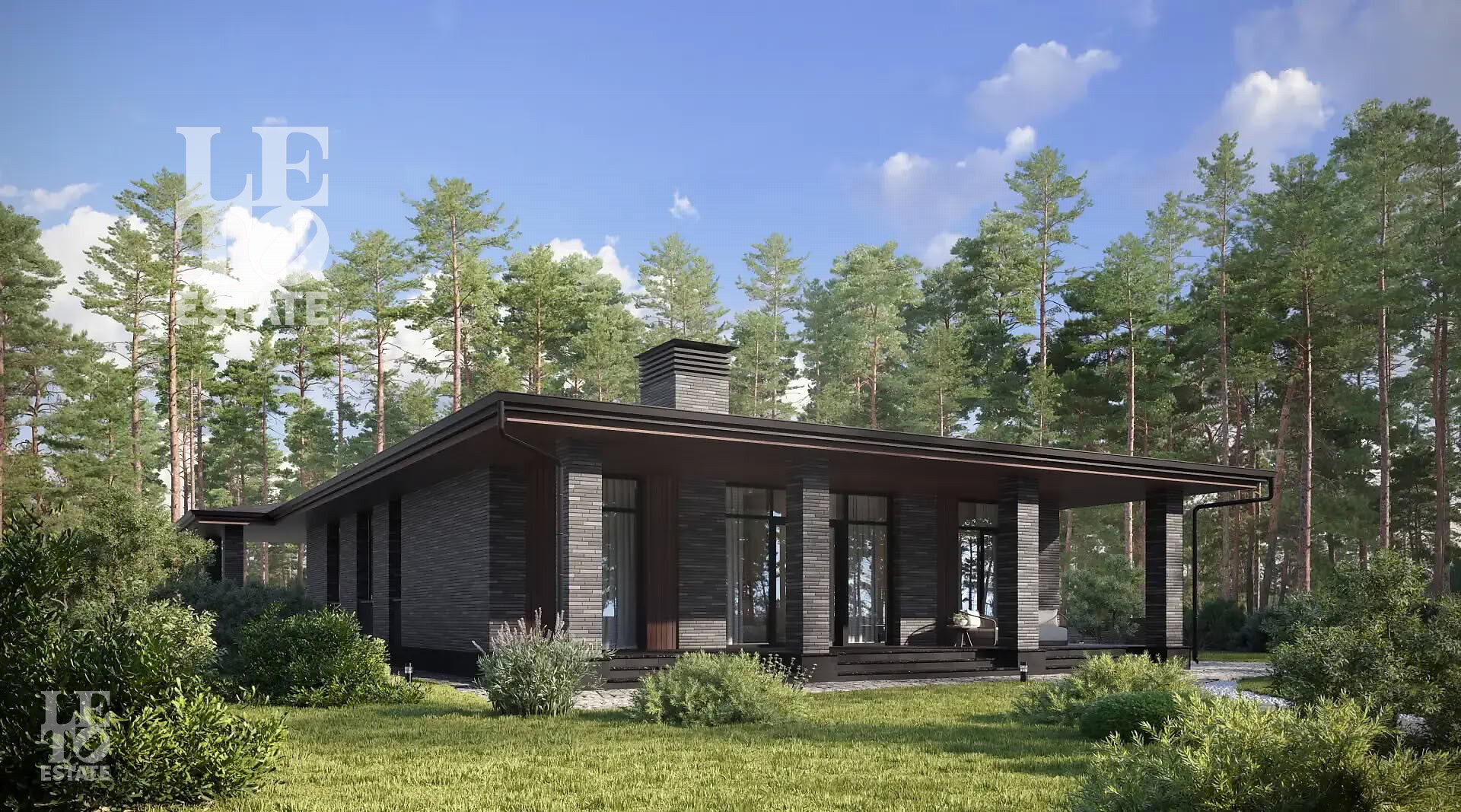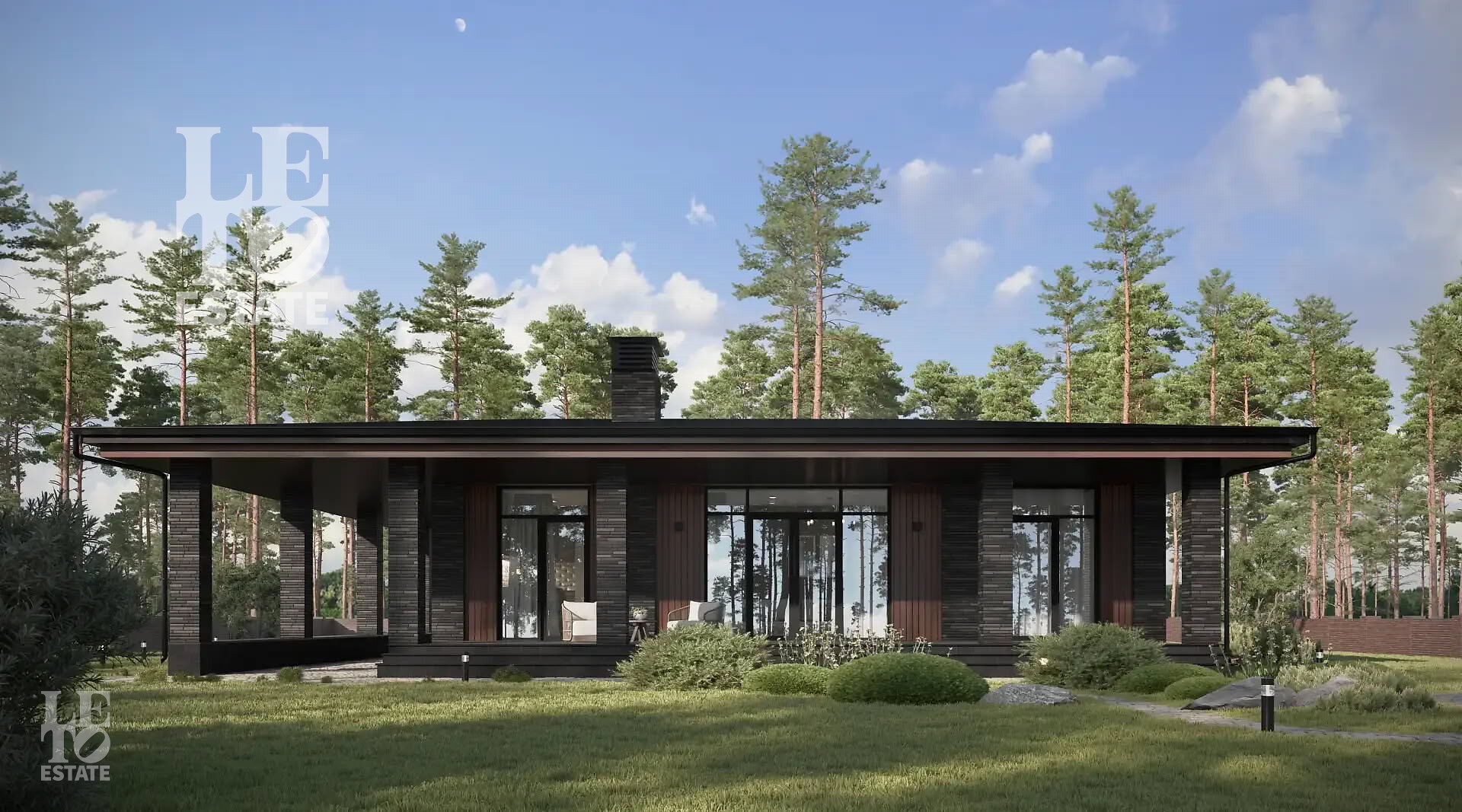 Одноэтажный дом в стиле райт от 105 до 198 м² на участке от 8 до 50 соток в коттеджном поселке Зиккурат.