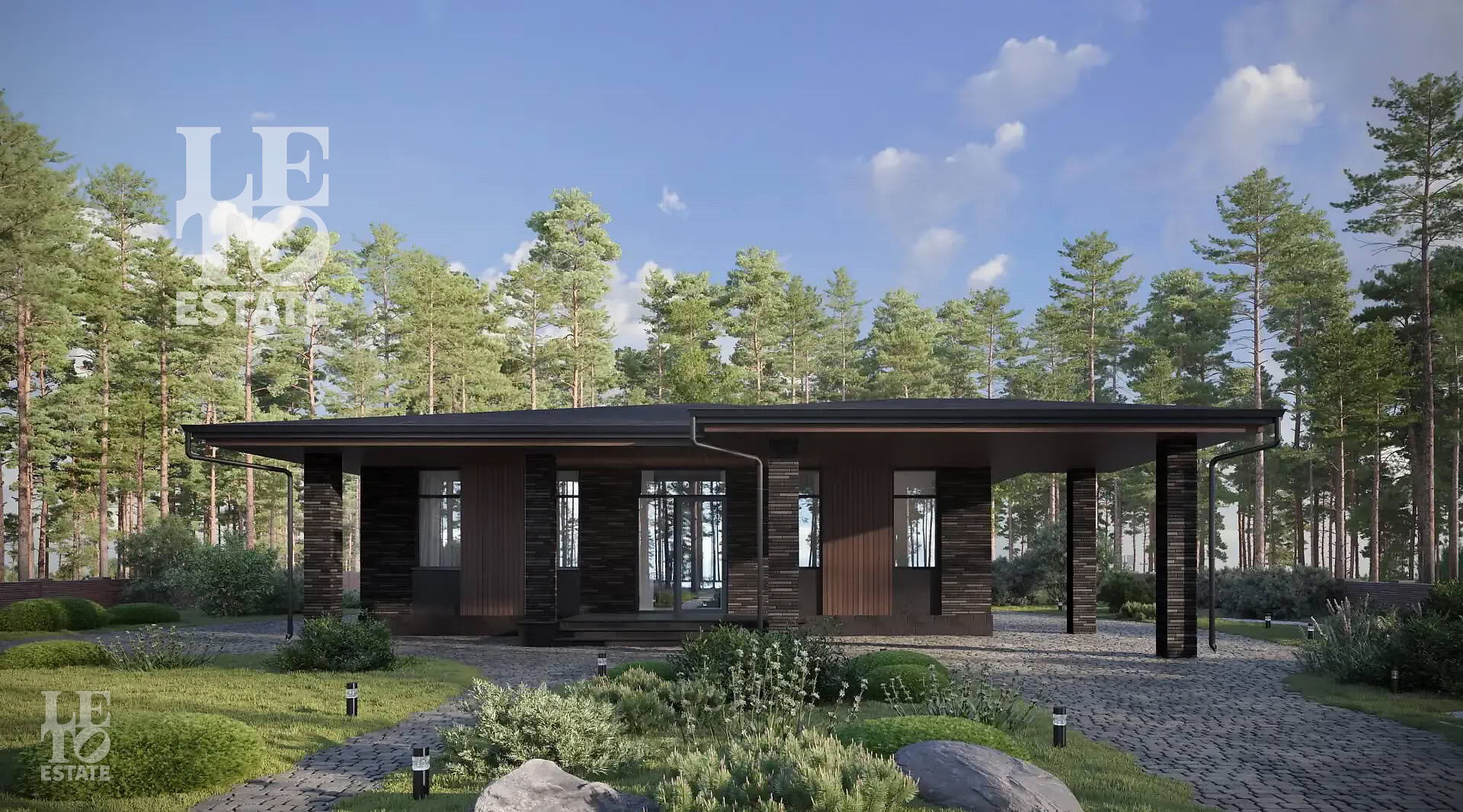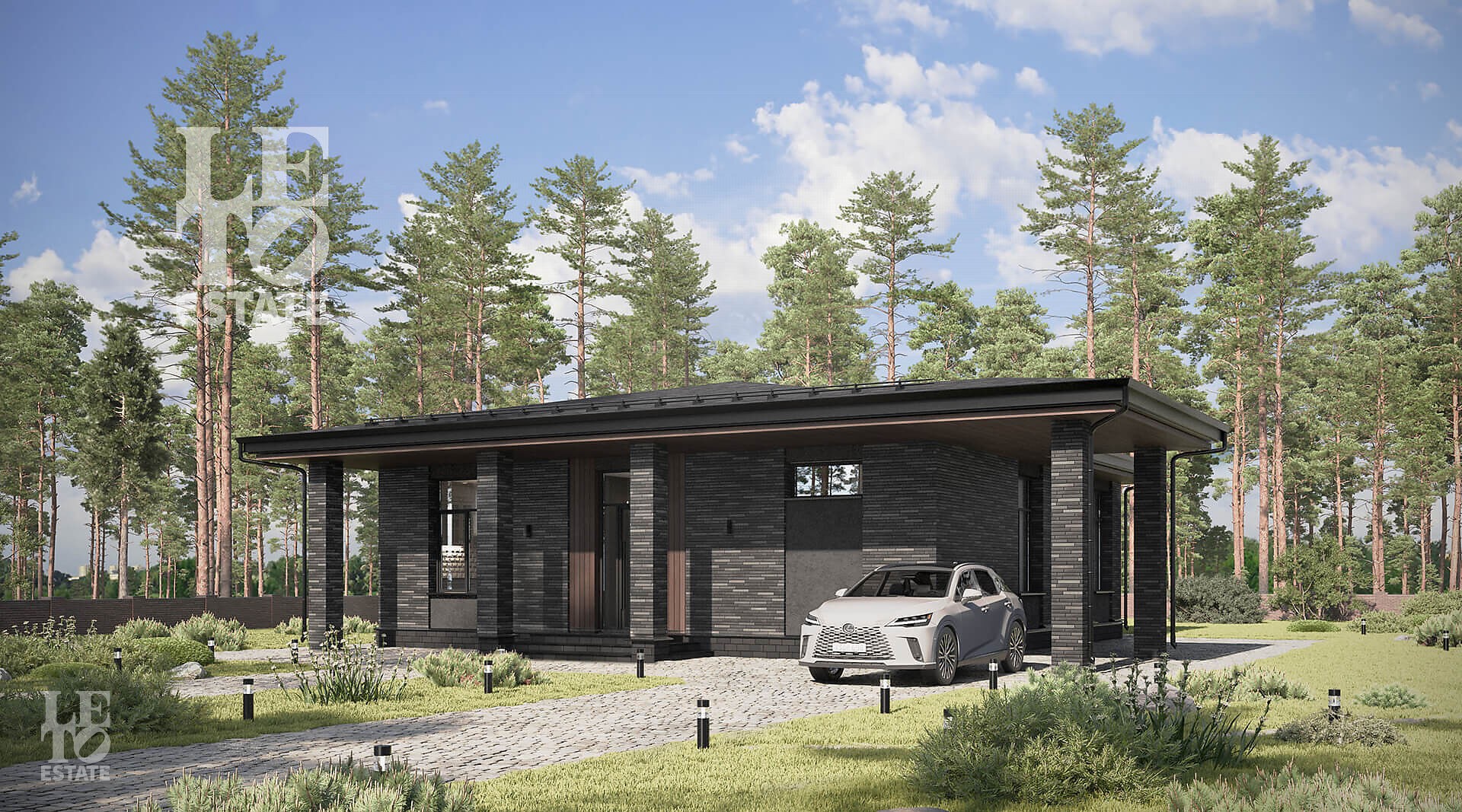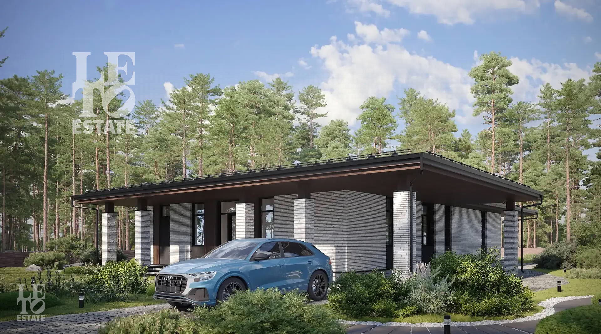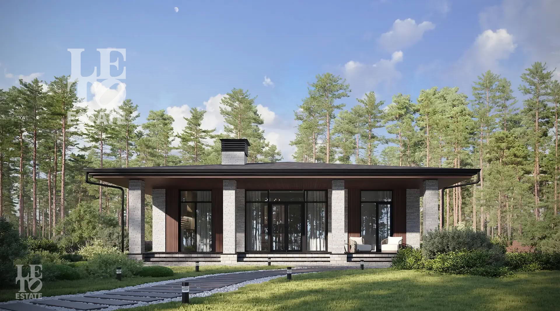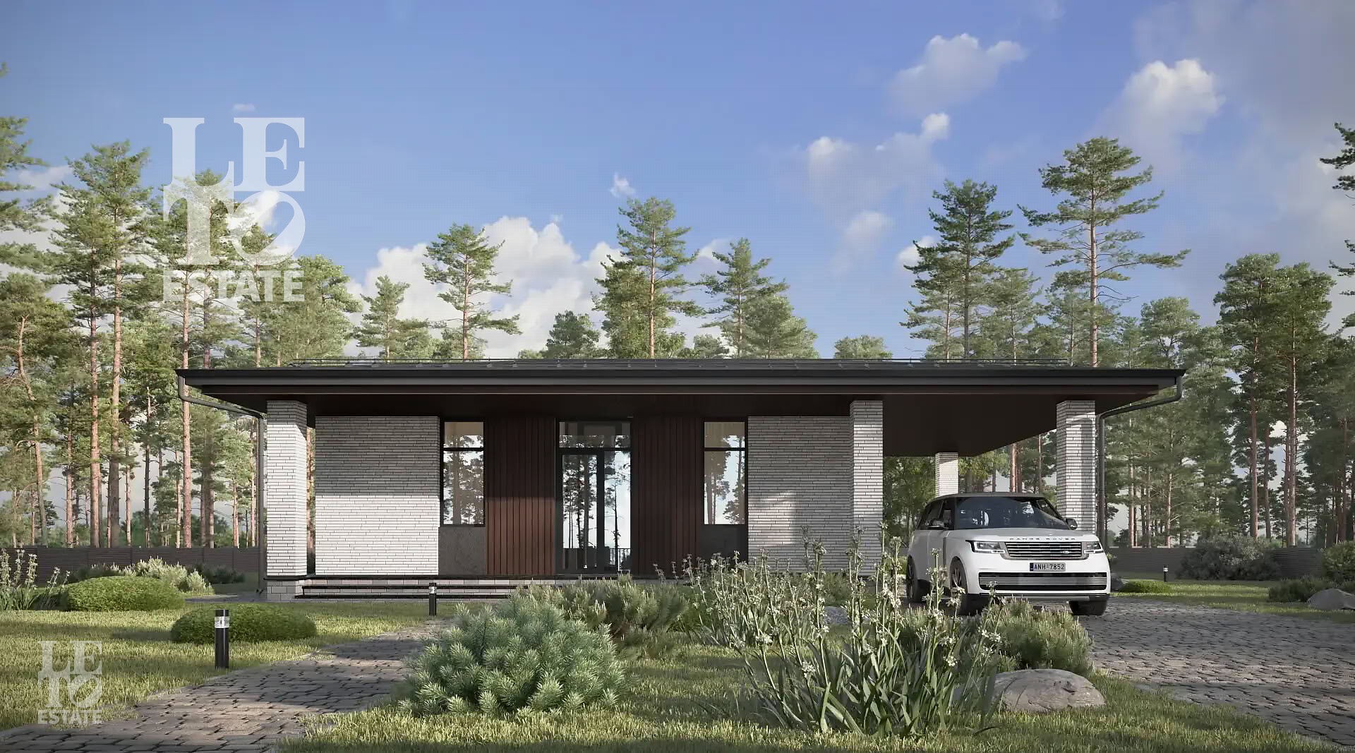 Одноэтажный дом в стиле райт от 105 до 198 м² на участке от 8 до 50 соток в коттеджном поселке Зиккурат.