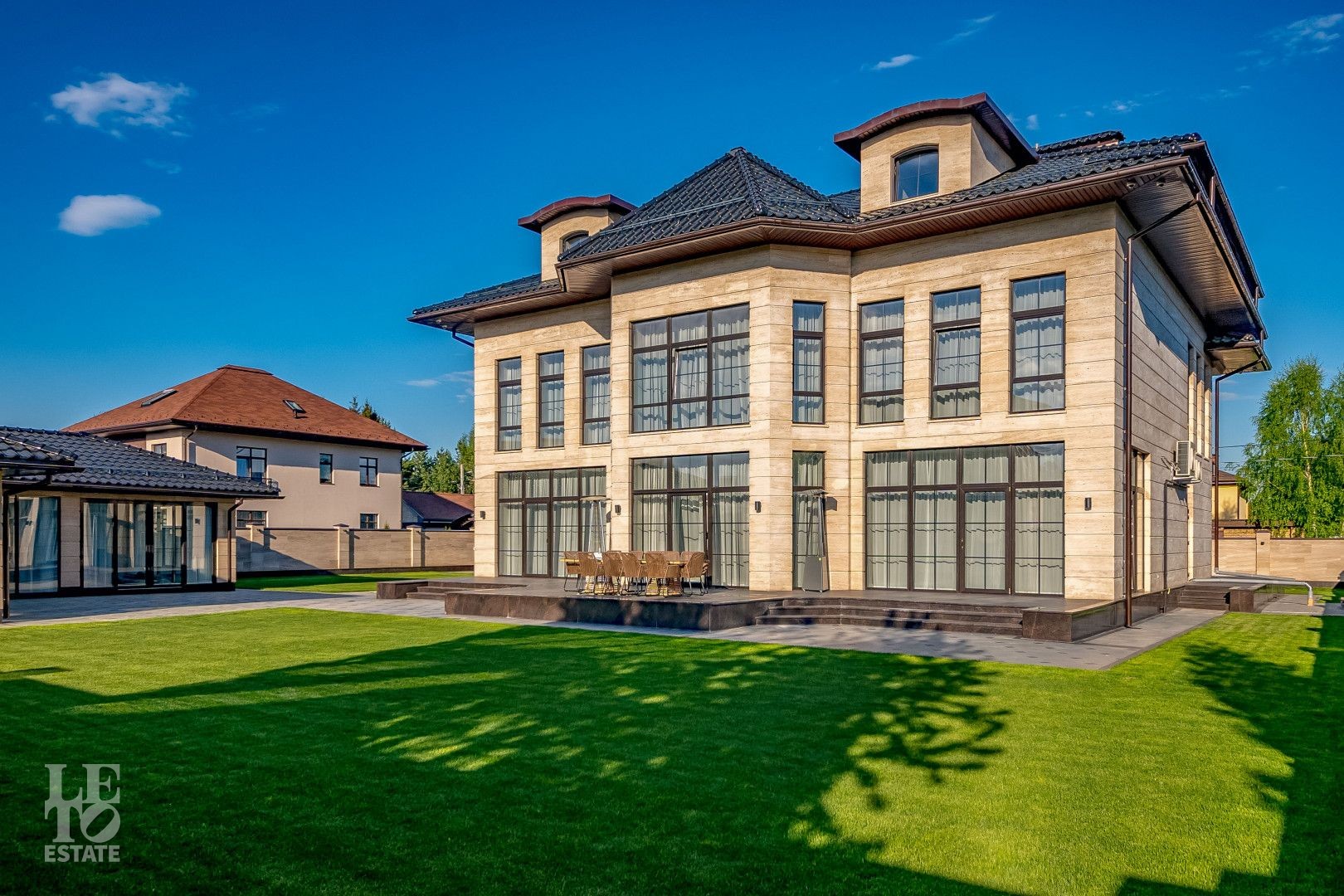 Вашему вниманию представлен коттедж в элитном поселке с развитой инфраструктурой "Знаменское поле". Стильный дом площадью 750 м2 с отделкой "под ключ", оборудованный дизайнерской мебелью премиум класса, эксклюзивно сантехникой и современной бытовой техникой. Дом расположен в тихой части поселка, что позволит Вам полностью насладиться загородной жизнью. Уникальный проект дома выполнен в стиле современной классики. Тщательно продуманы все детали для комфортного проживания. В строительстве и отделке использованы натуральные материалы: дом облицован травертином, мощения и террасы выполнены из натурального гранита, ковка сделана на заказ из полнотелой латуни, внутренняя отделка - мрамор.