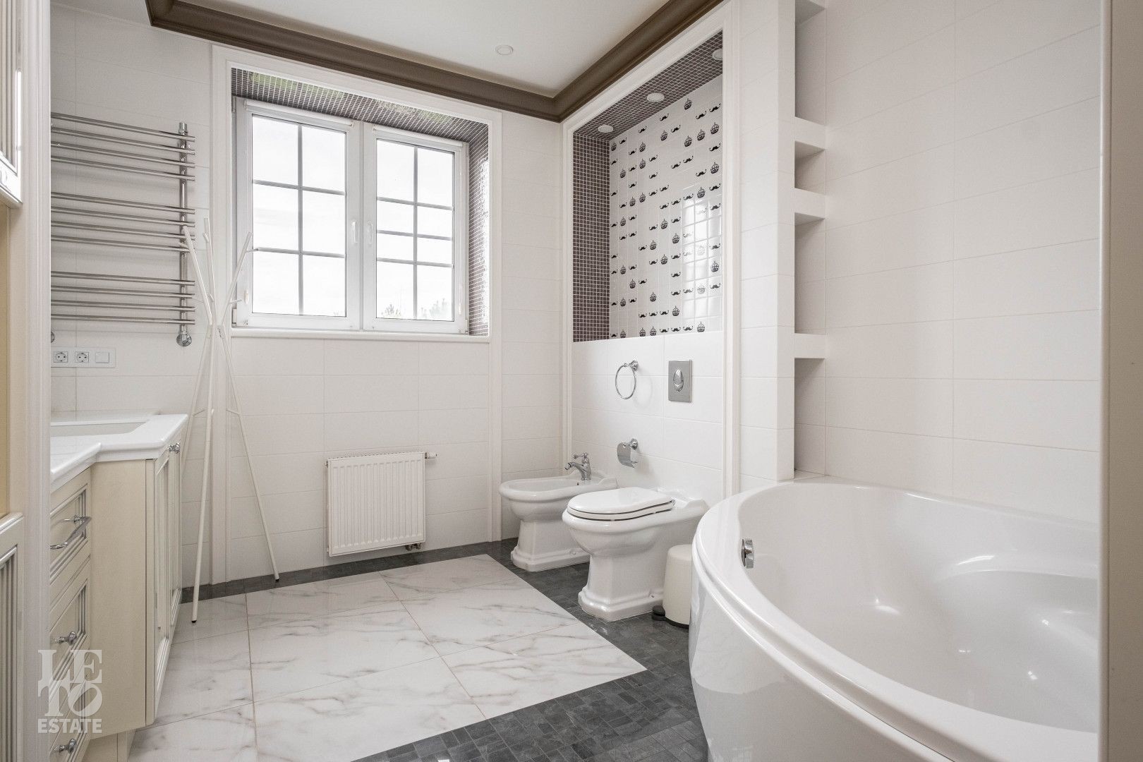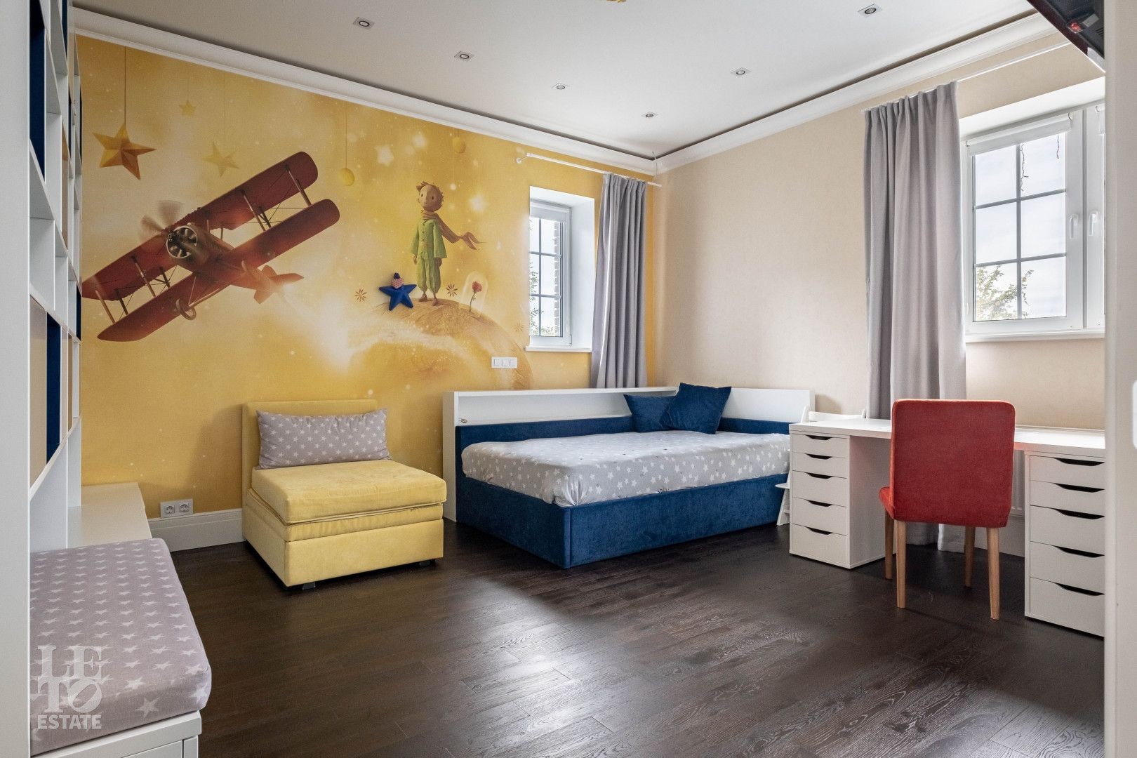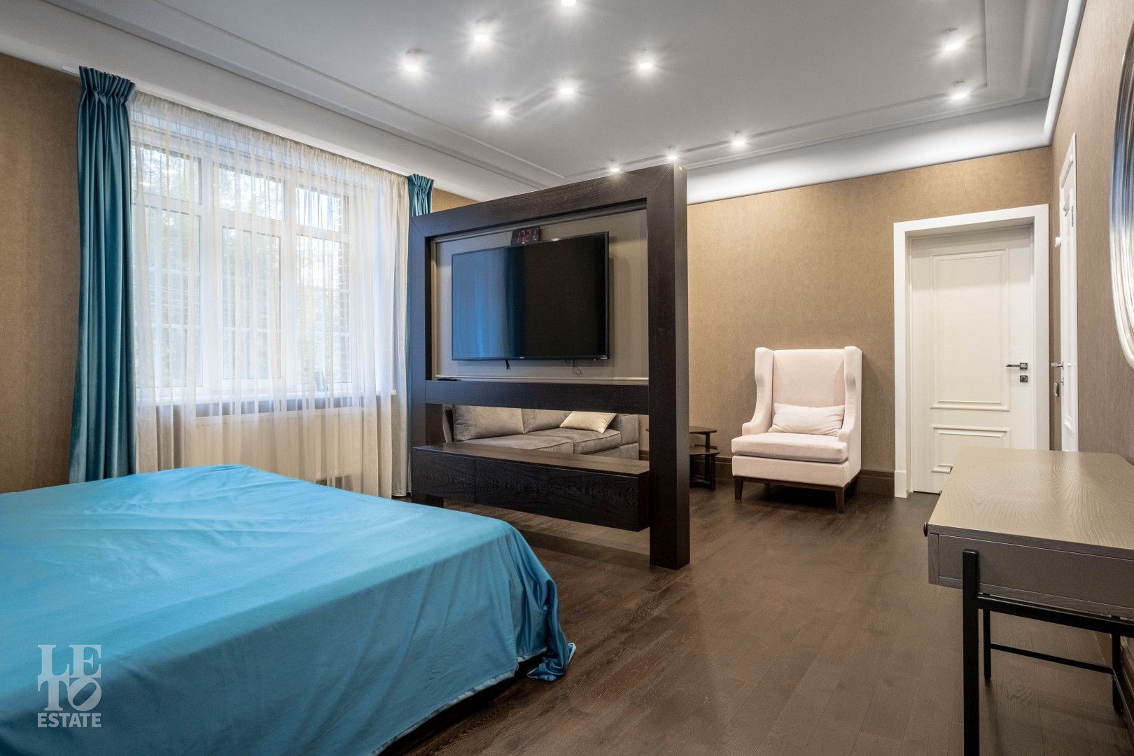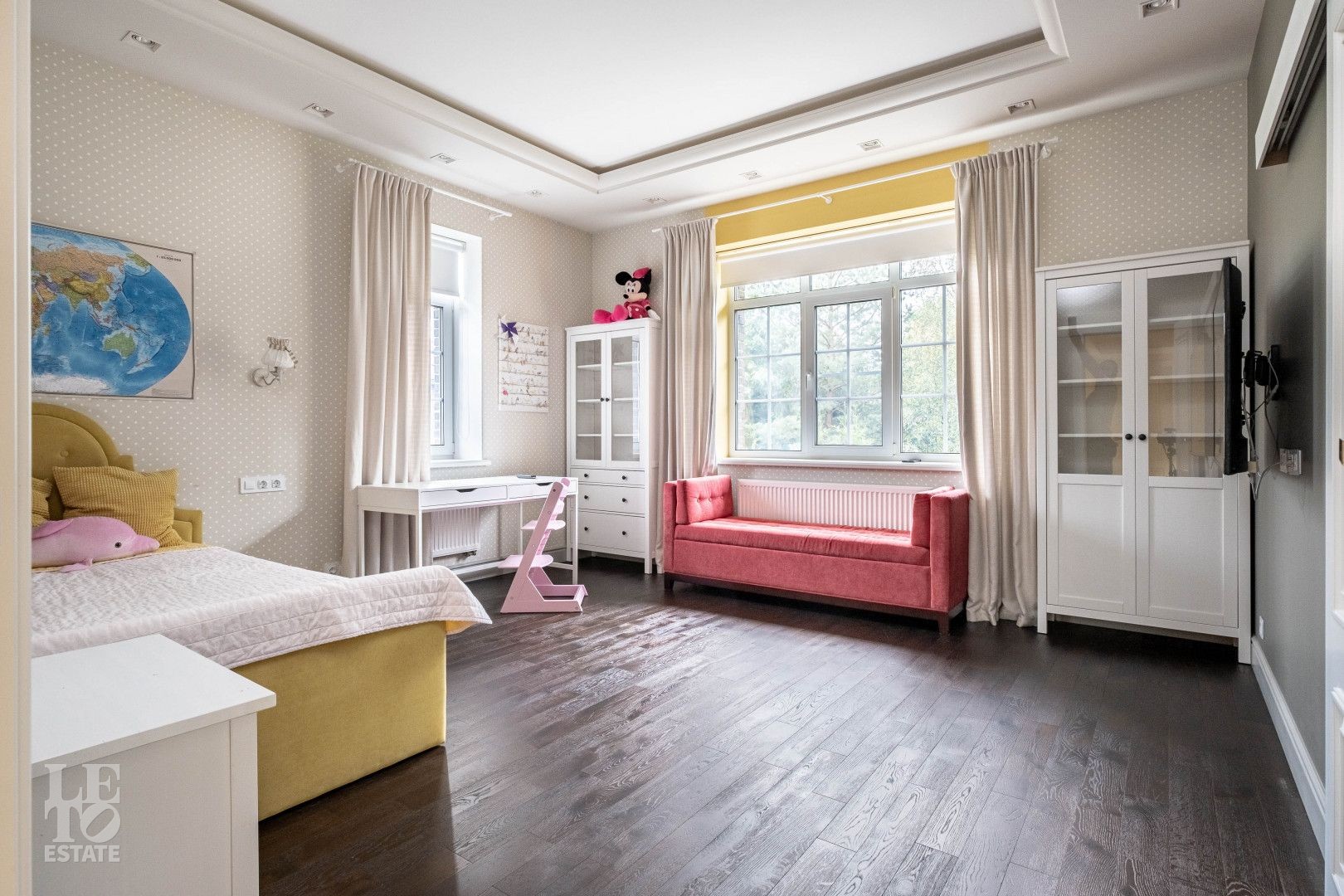 Второй этаж: мастер-спальня с гардеробной и санузлом, детский блок (две спальни с собственными гардеробными, санузел, кладовая), спальня с санунзлом, комната с санузлом и гардеробной;